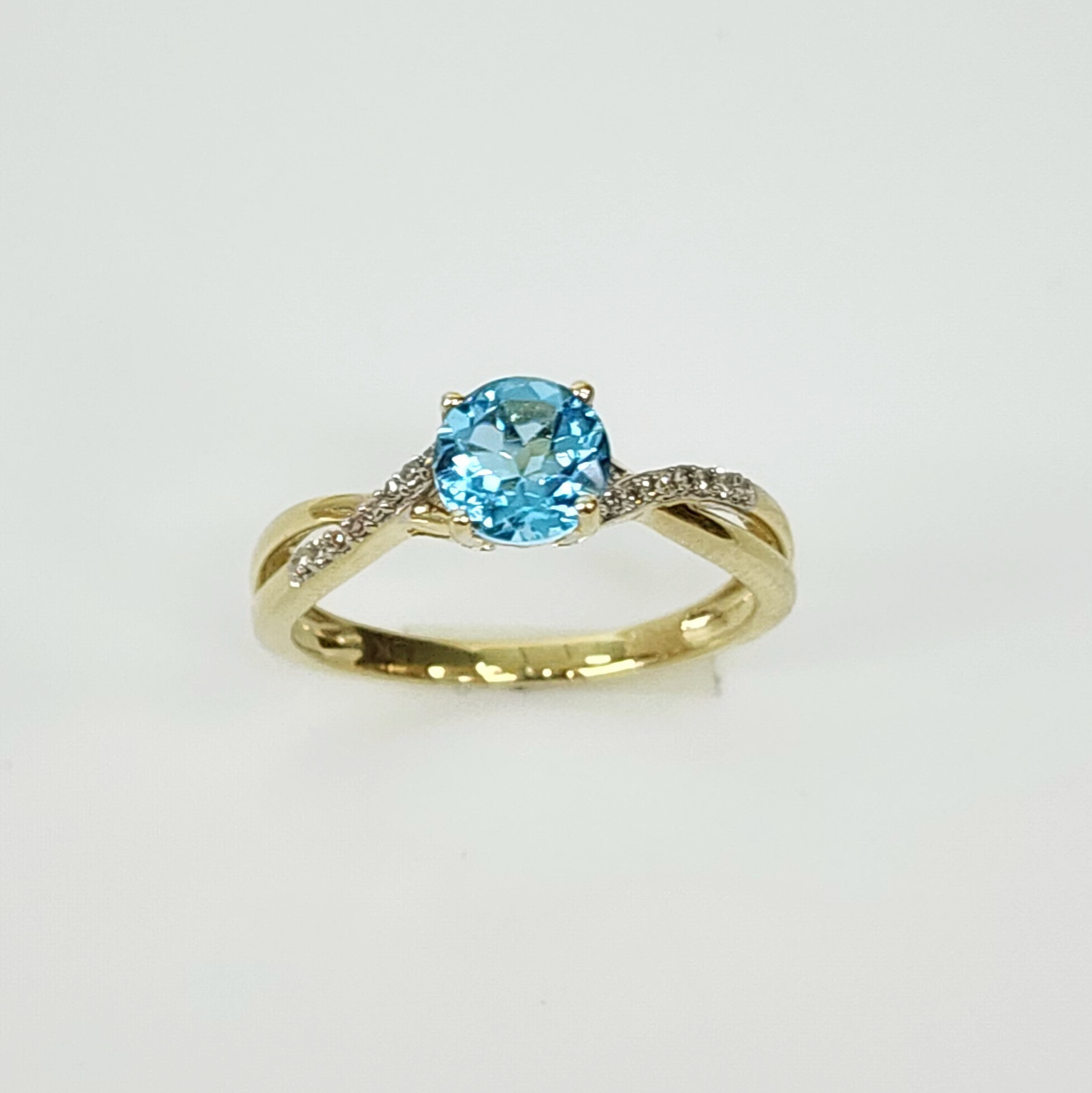 10ct Yellow Gold 0.05ct Diamond with 1.25ct Round Blue Topaz Crossover Ring – SKR17132BT