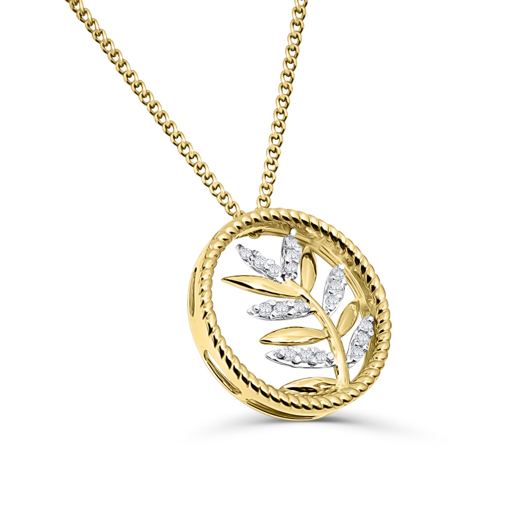10ct Yellow Gold Circle Pendant with Diamond Set Leaf Inside