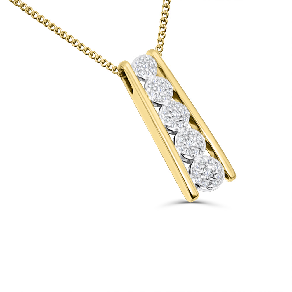 10ct Yellow Gold Vertical Diamond Cluster Pendant