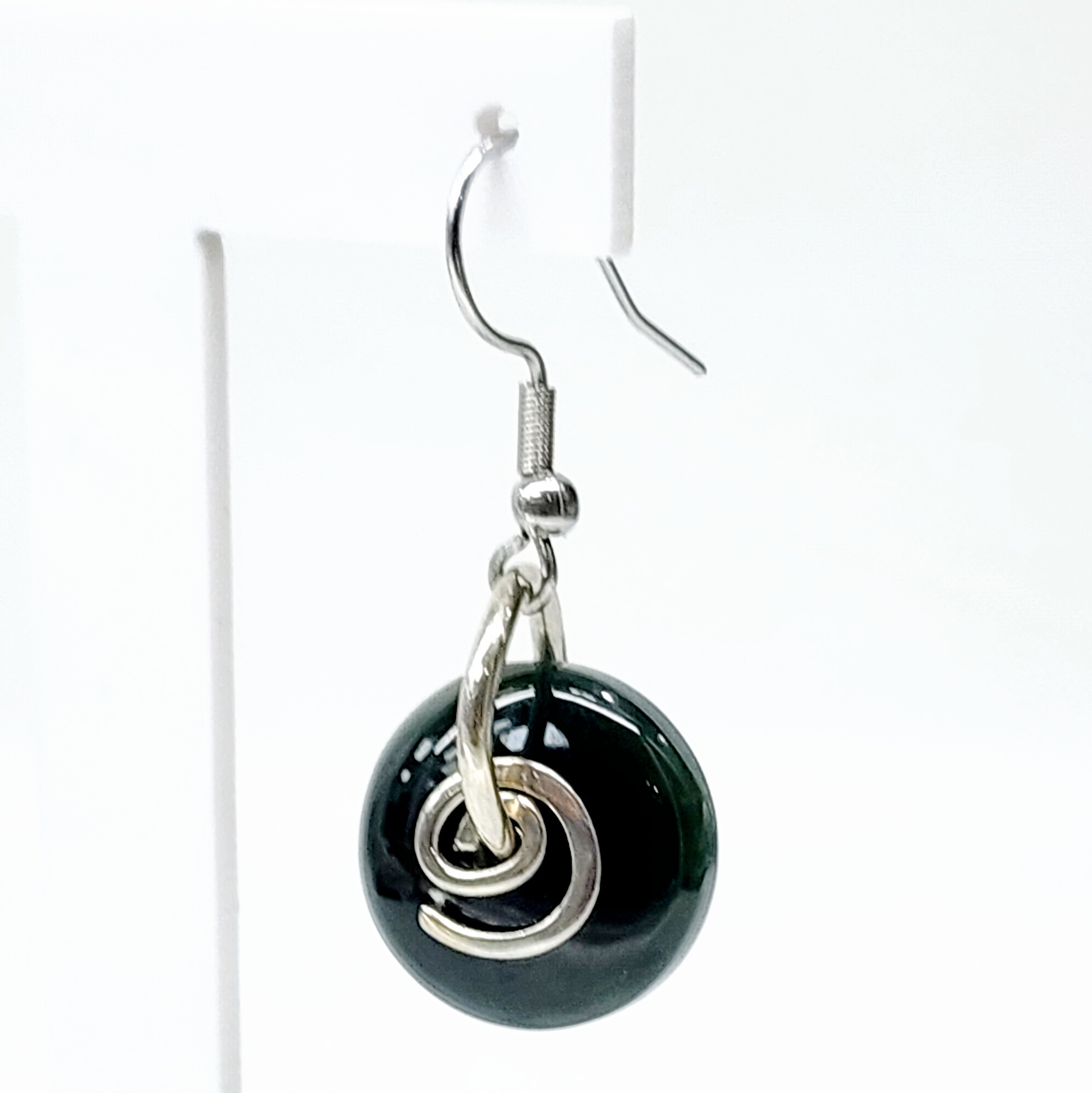 16mm Round NZ Greenstone Hook Earrings with Sterling Silver Koru