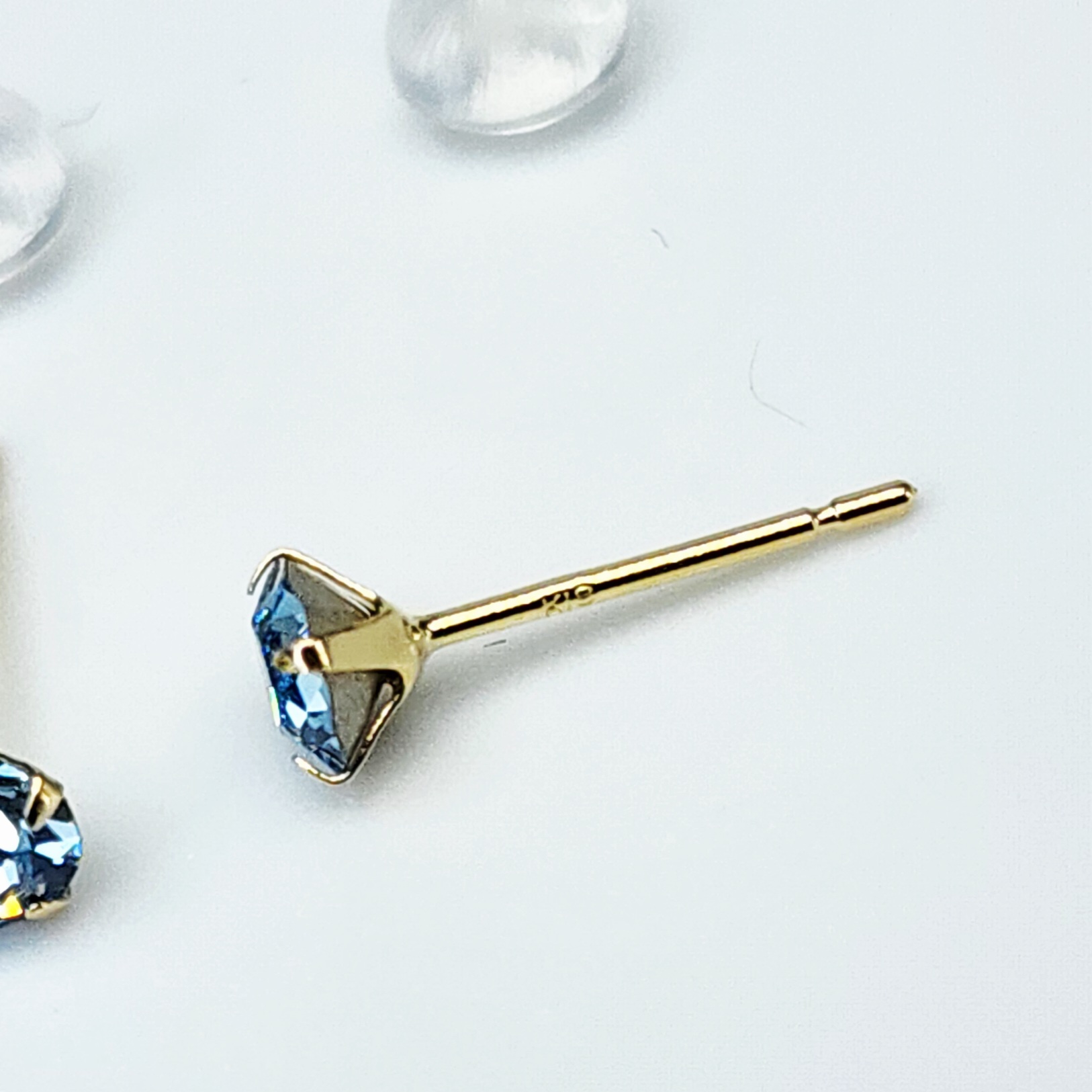 Crafted in luxurious 18ct yellow gold, these elegant stud earrings feature a 4mm round blue-topaz coloured cubic zirconia as the centrepiece. Each sparkling stone is securely held in a classic 4-claw setting, allowing maximum brilliance and light reflection. Designed with silicone backs for extra comfort and security, these earrings are perfect for everyday wear or special occasions.