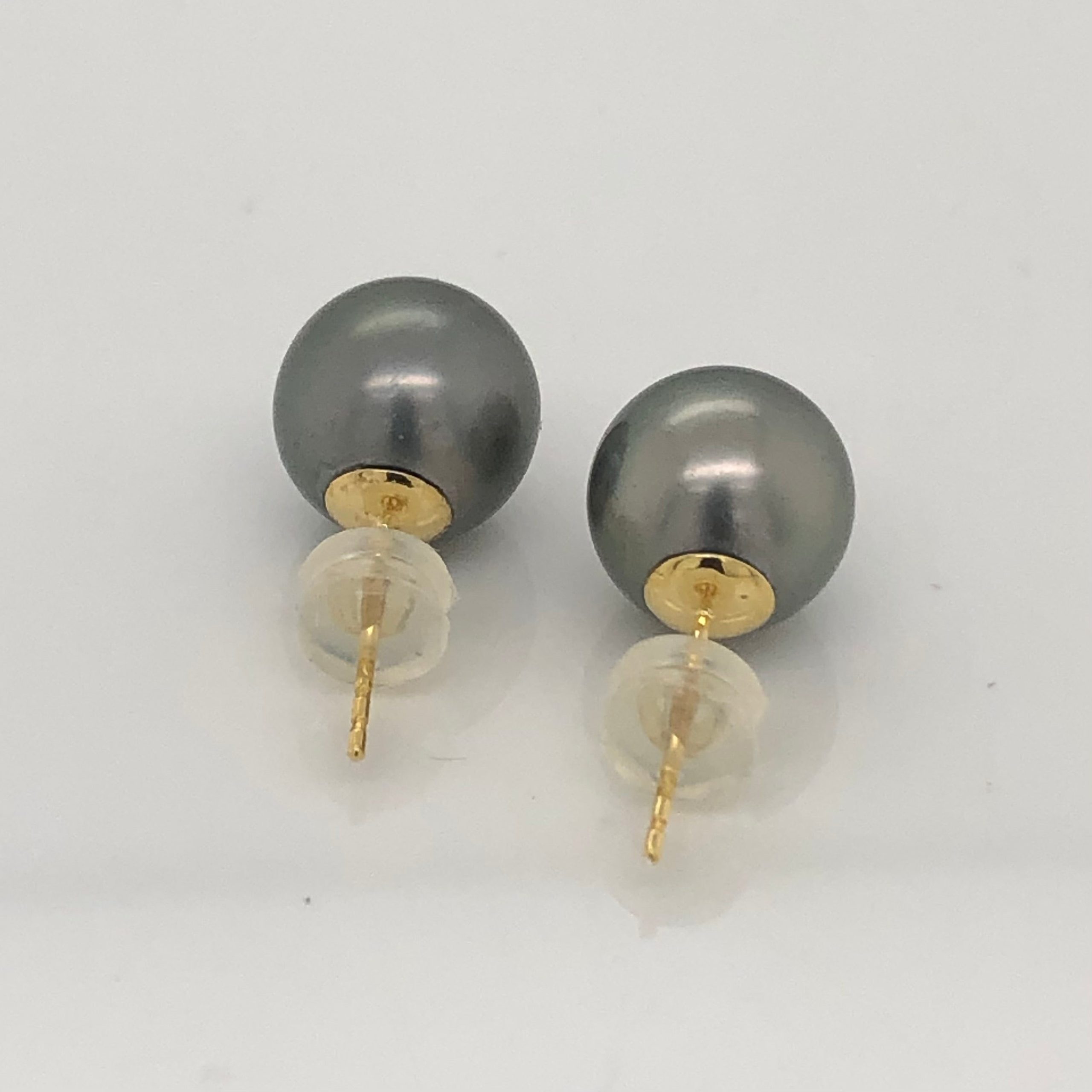 18ct Yellow Gold 9.0-10.0mm Tahitian Black Pearl Stud Earrings
