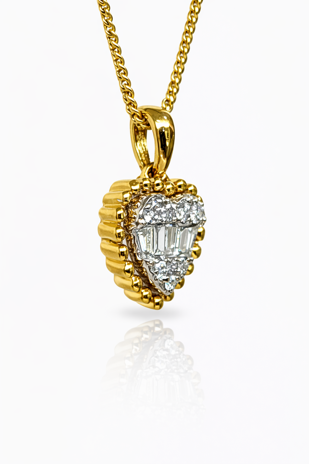 18ct Yellow Gold Heart Pendant with 0.11ct Natural Diamond (Round & Baguette) – 18KR45195PL