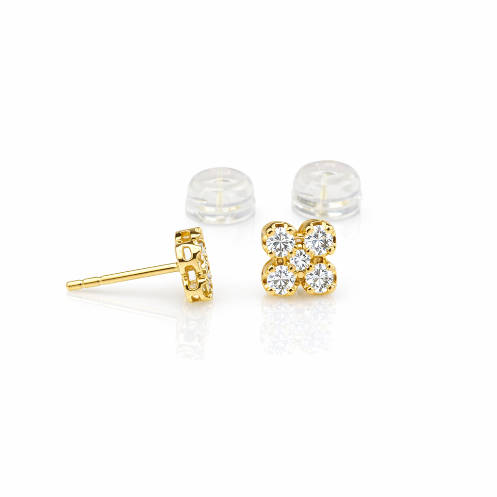 Add timeless sparkle to your everyday look with these beautiful 18ct yellow gold diamond clover stud earrings. Designed in a classic four-petal (clover) style, each stud is set with natural diamonds that catch the light from every angle, giving a bright, elegant shimmer without being over the top.