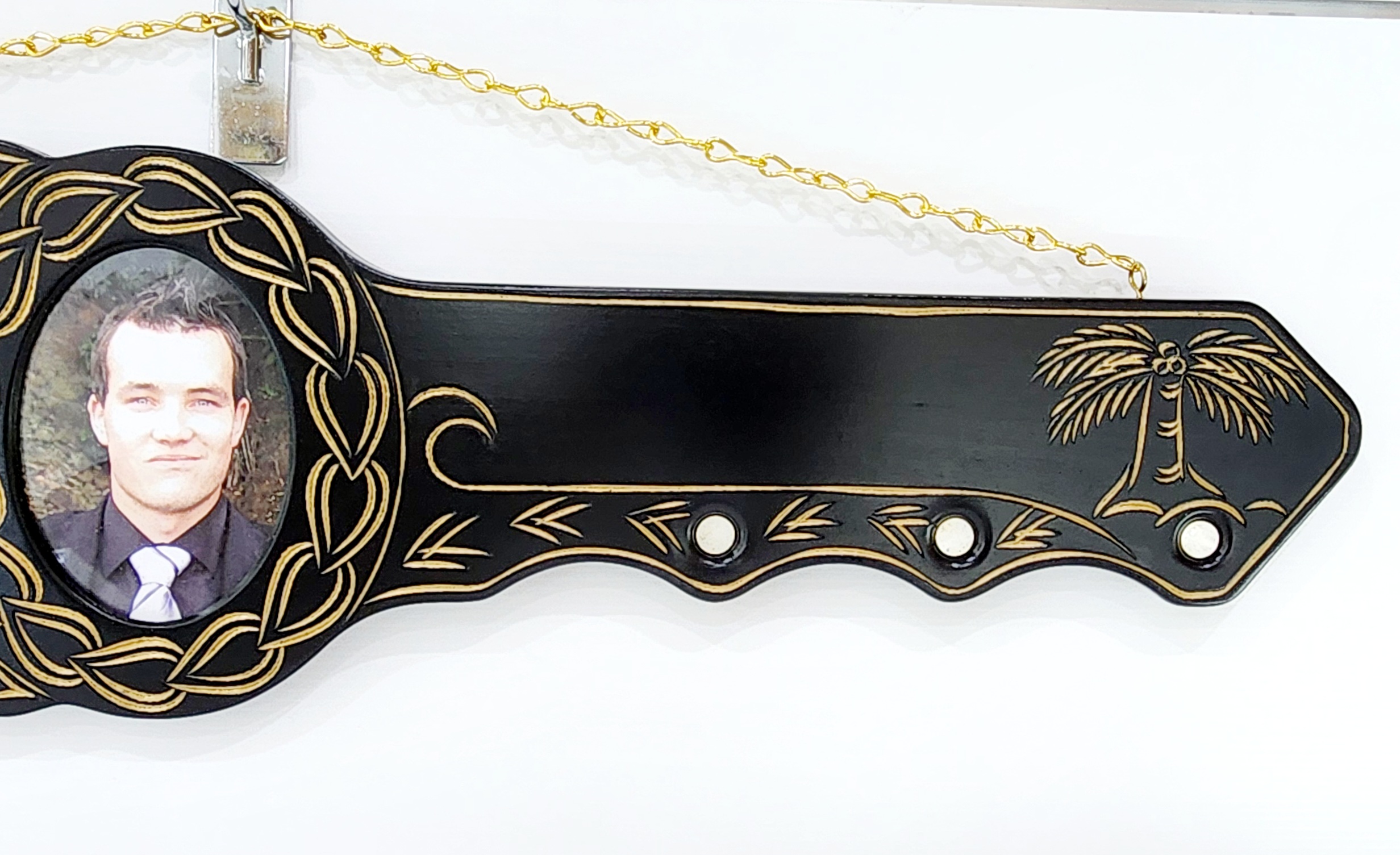 This stunning beaitiful 21st key is made out of solid Tulip Hard Wood with hand carved island patterns around the whole key.