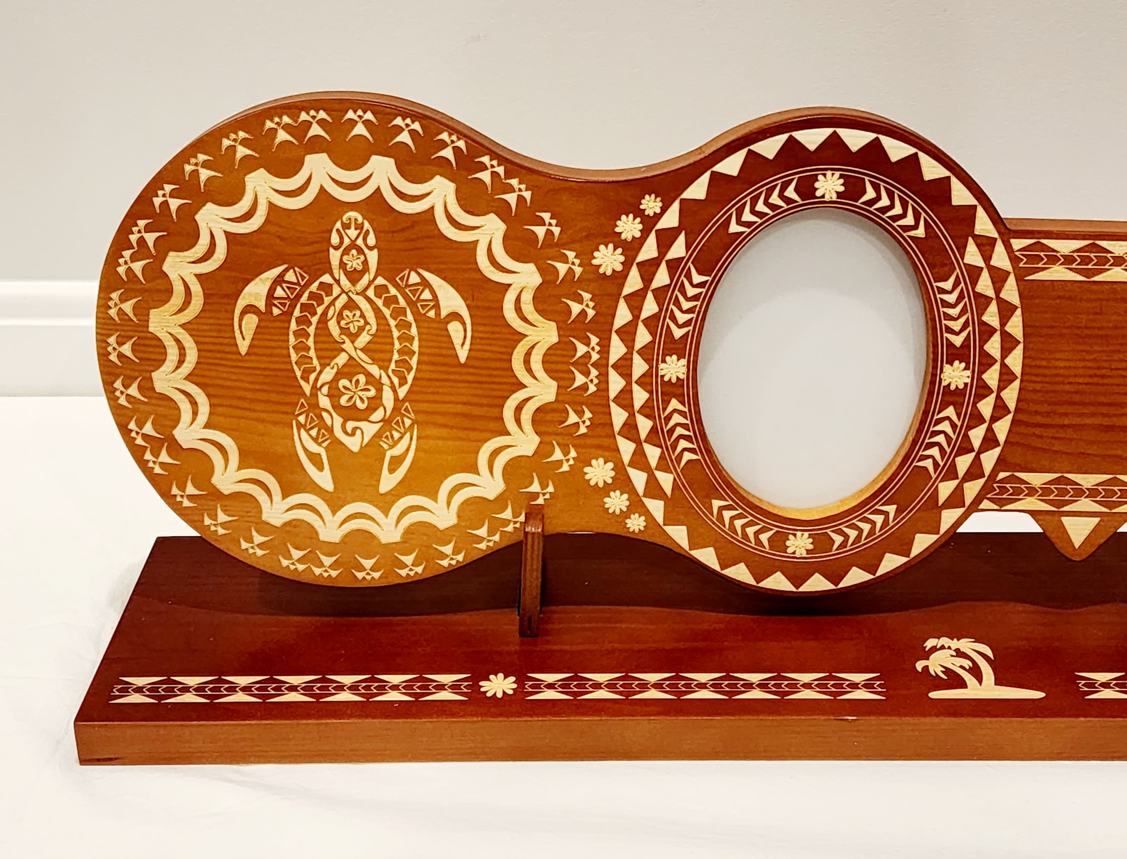 The 21st key is made out of solid timber with fully laser Engraved island patterns around the whole key.