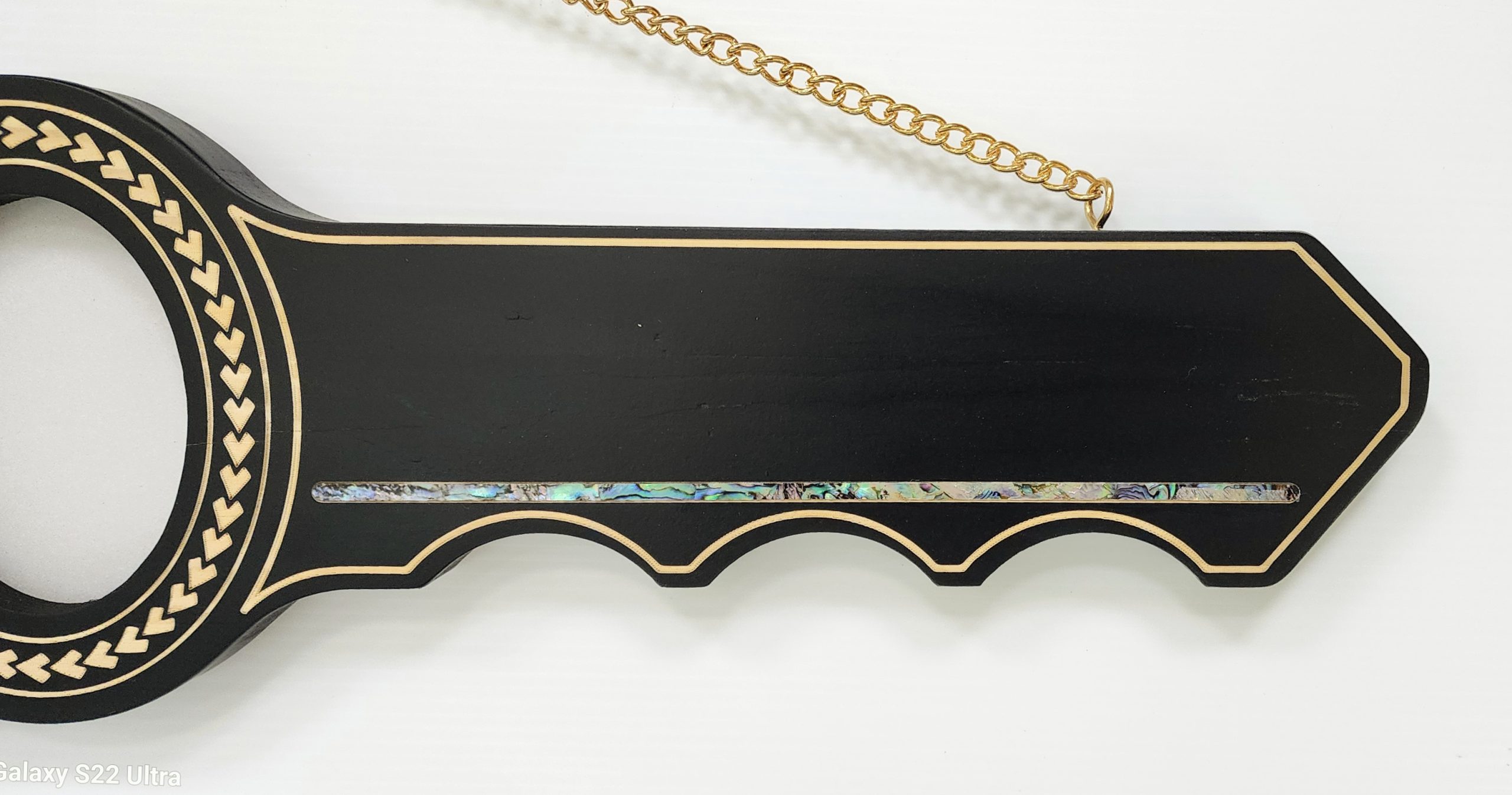 The key measures 50cm in length, 14cm in width, and 2cm in thickness, offering a solid and striking presence. It includes an oval-shaped photo space measuring 65mm x 90mm, perfect for adding a personal touch with a cherished picture. Additionally, the key is equipped with a gold-finish chain for easy wall hanging, making it a standout decorative piece.