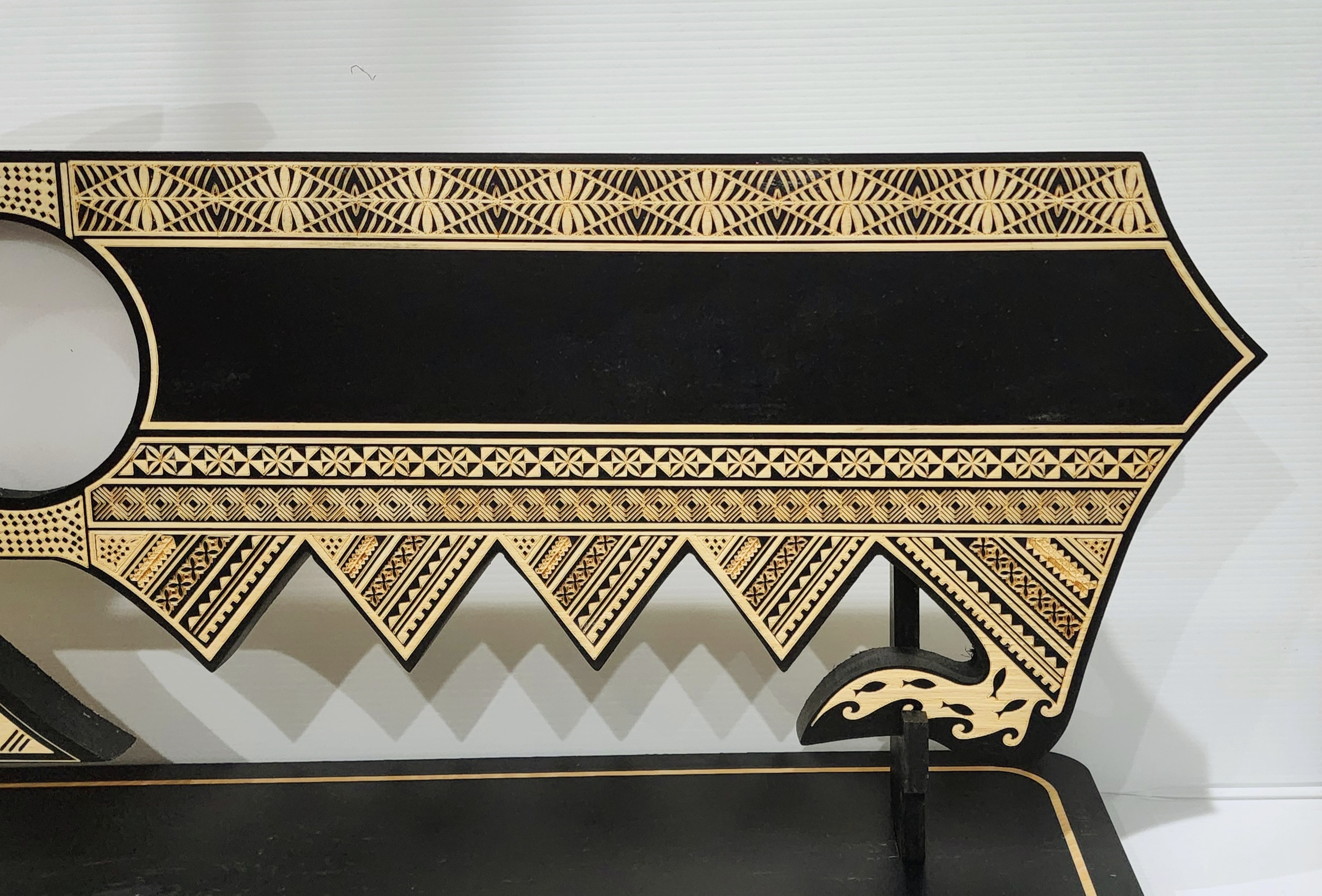 21st Wooden Key Black Shade Island Design On Stand With Polynesian Tattoo Design Hui Turtle Triple Twist