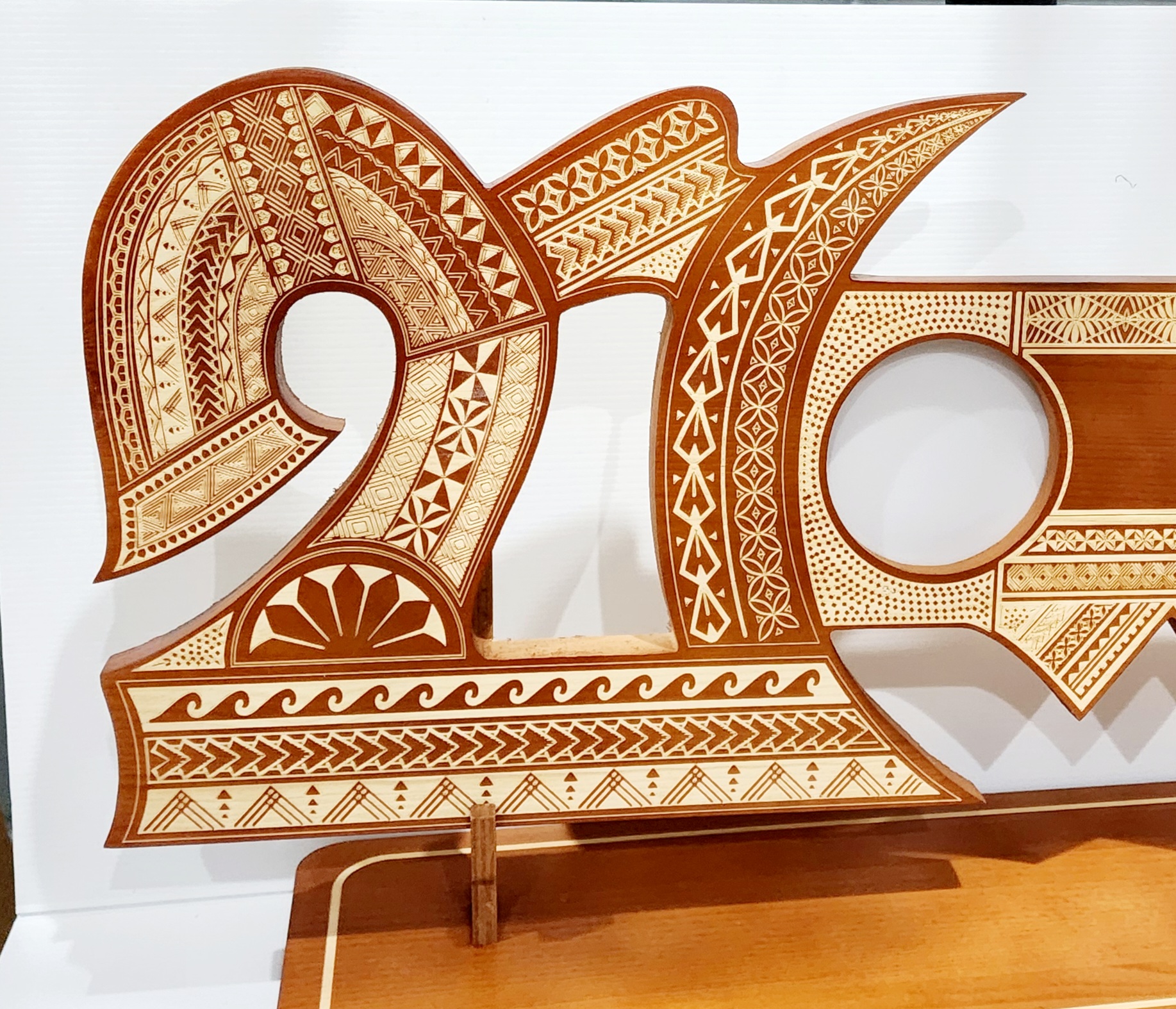 21st Wooden Key Brown Shade Island Design On Stand With Samoan Sila