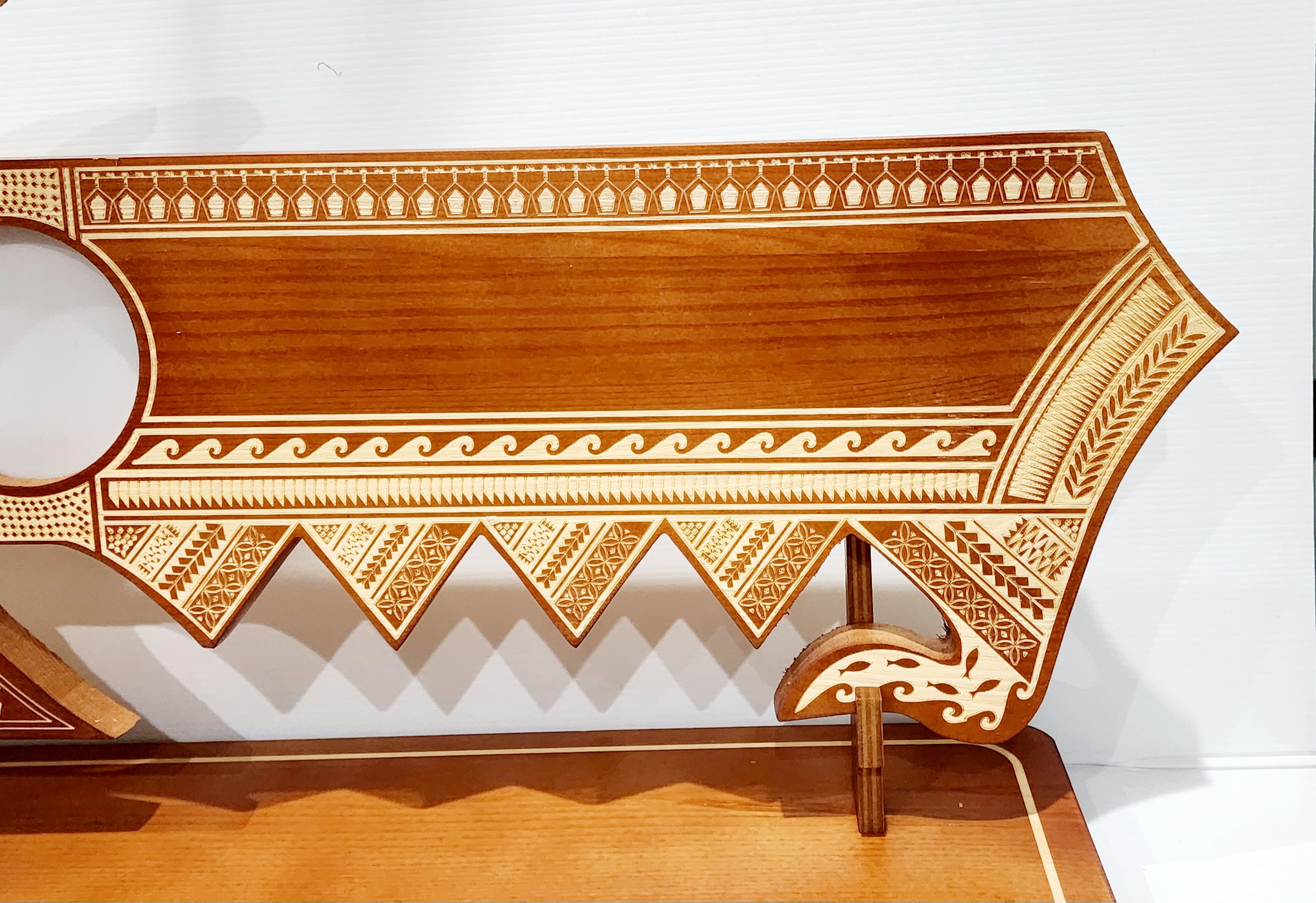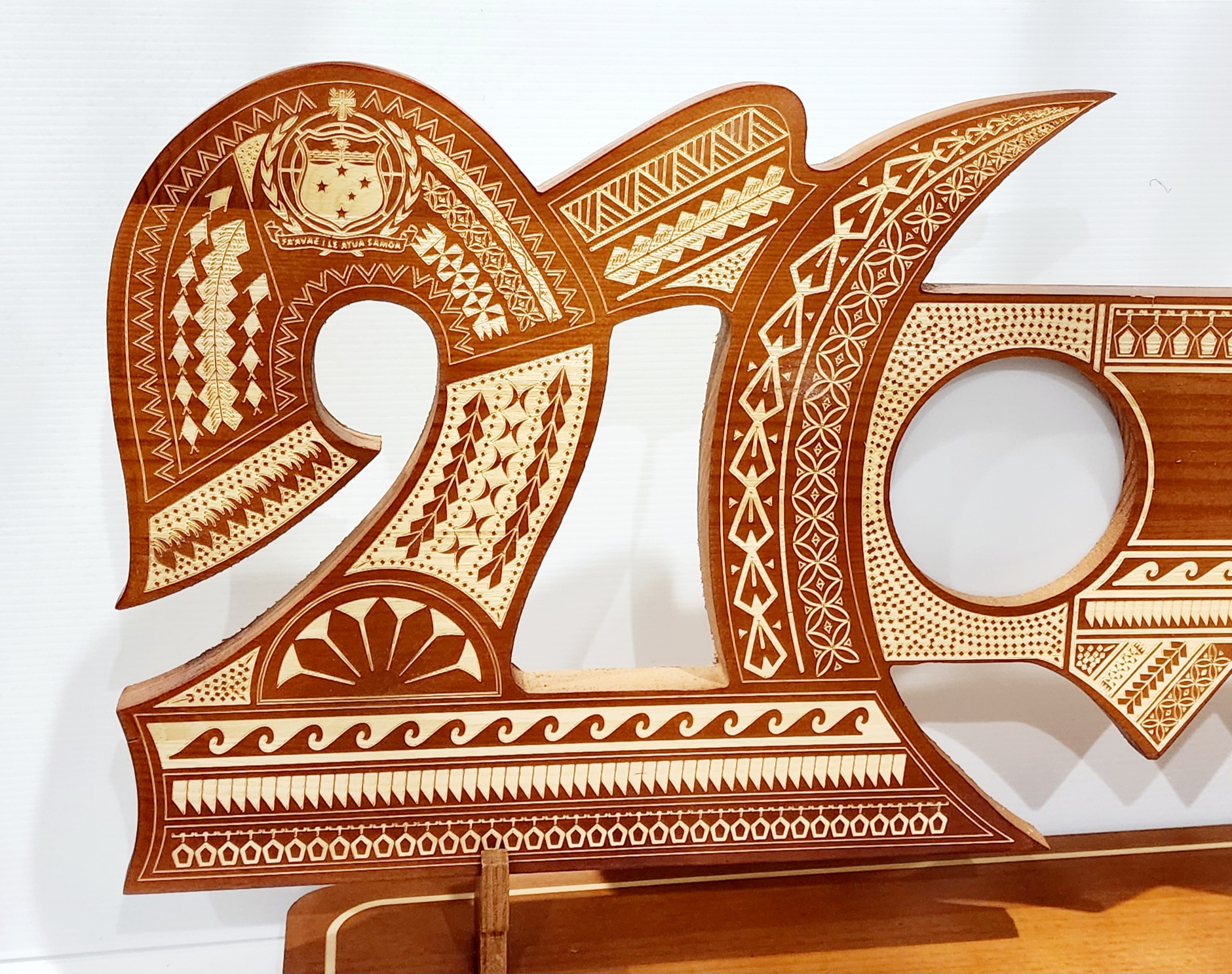 21st Wooden Key Brown Shade Island Design On Stand With Samoan Sila