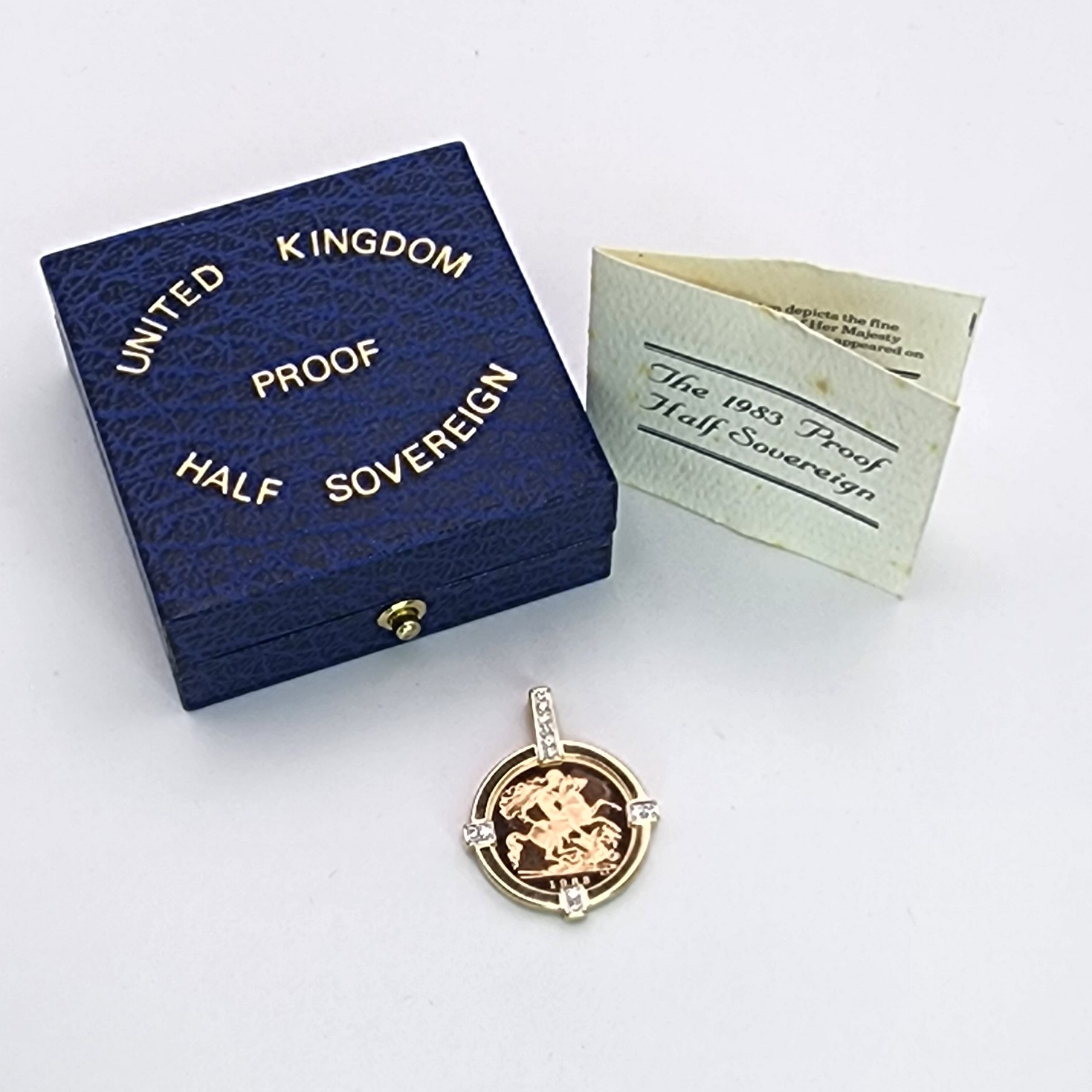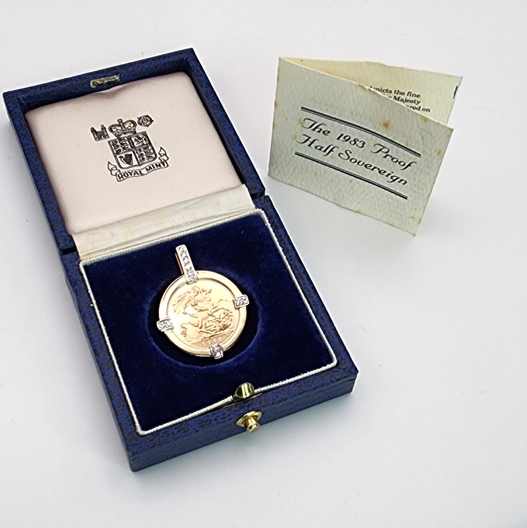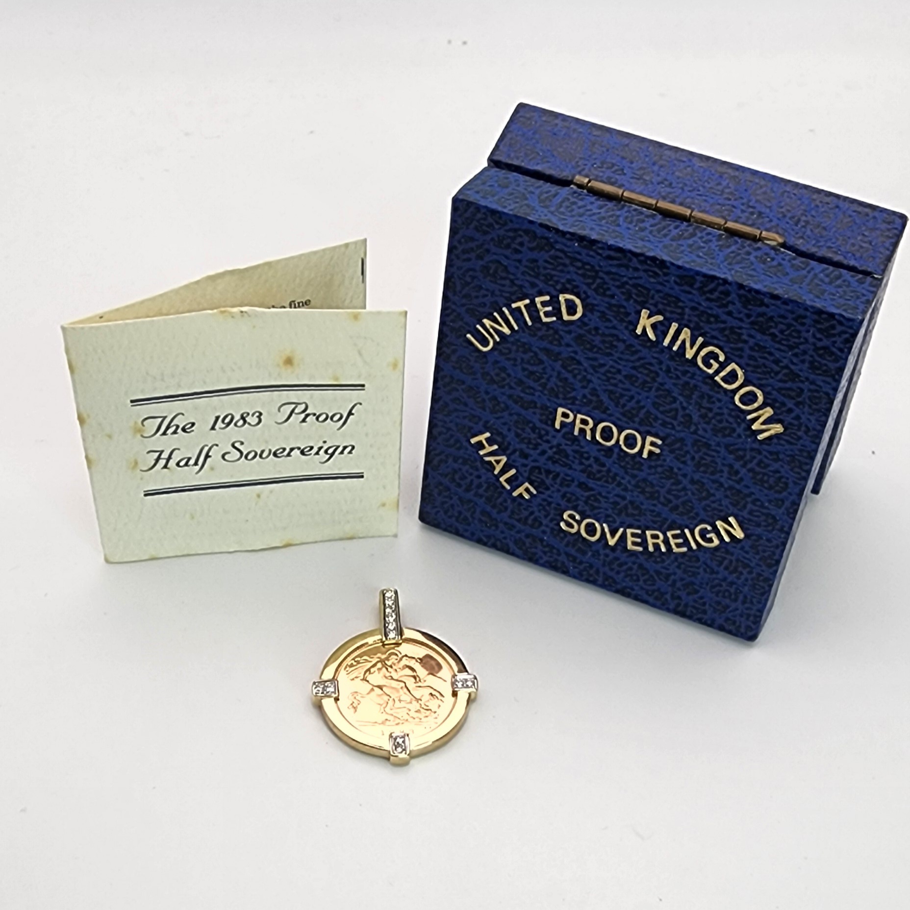 22ct Gold 1983 Elizabeth II Half Sovereign Coin Set in 0.17ct Diamond 9ct Gold Mount
