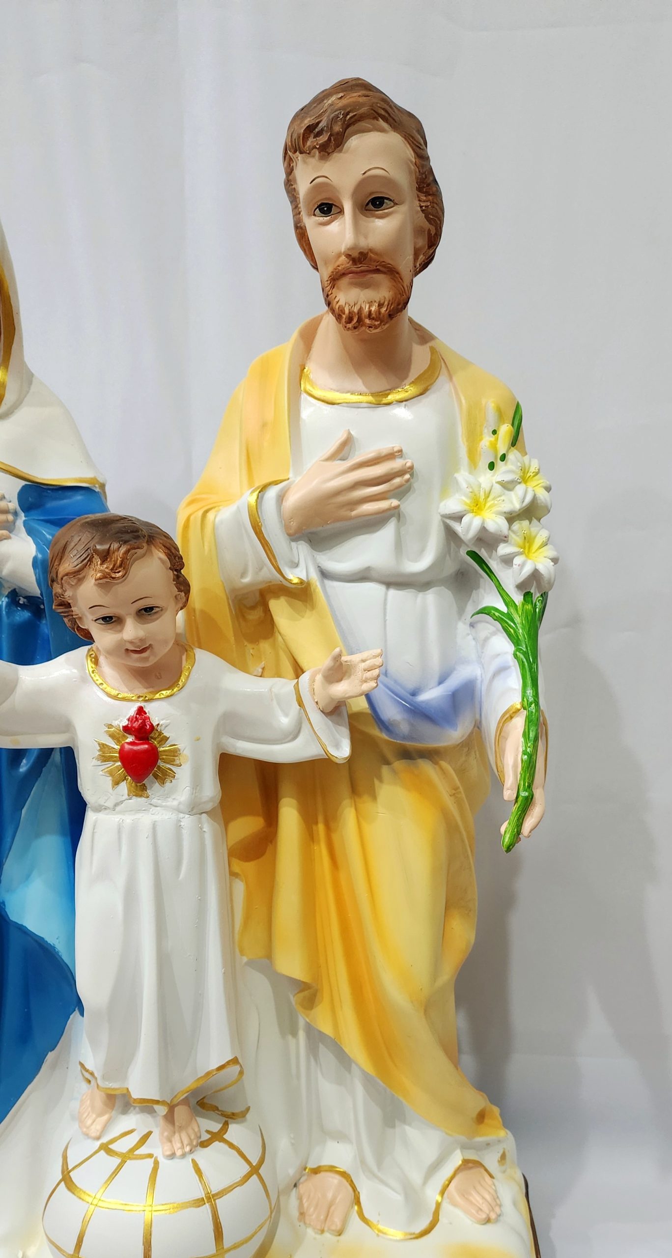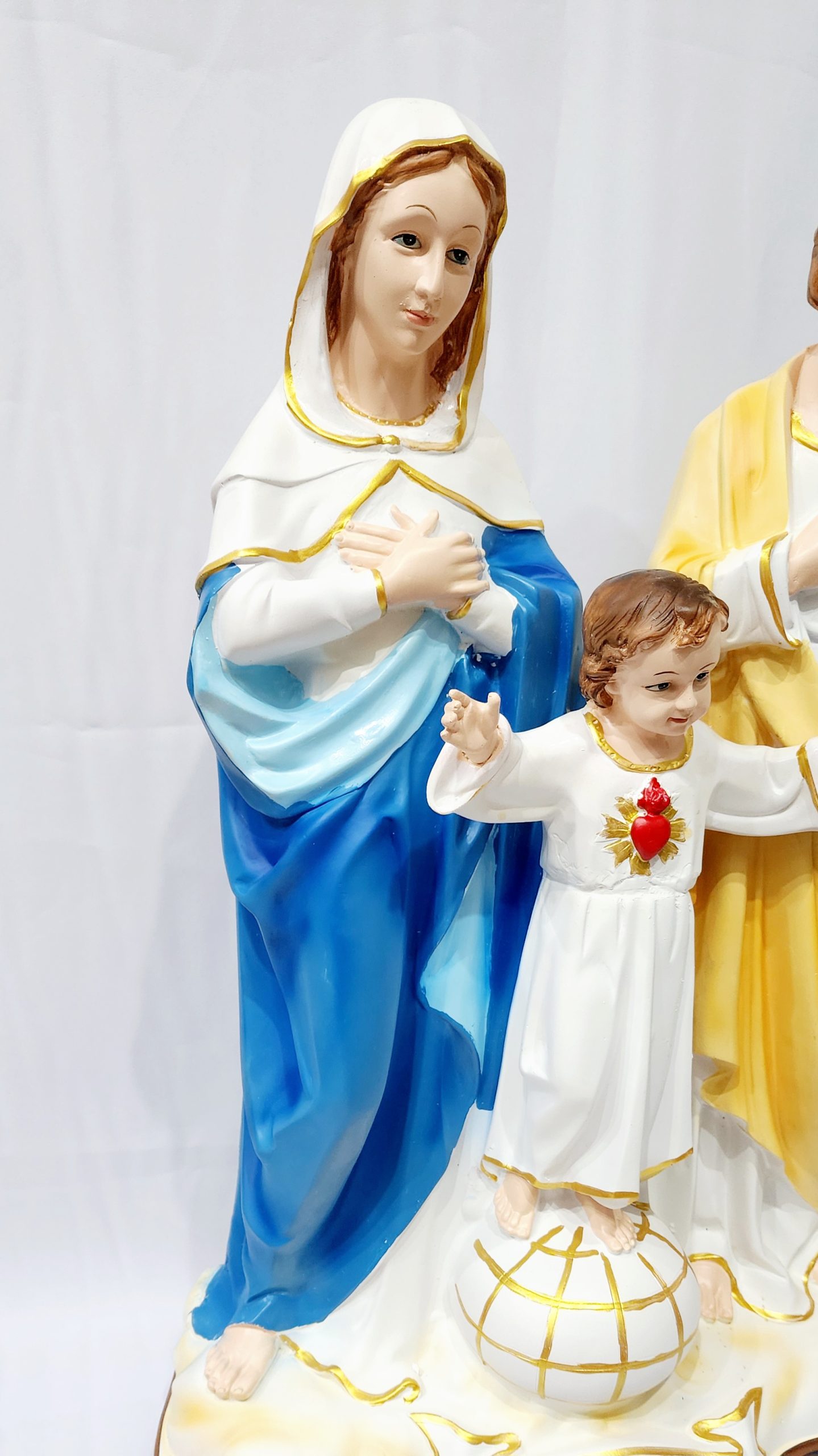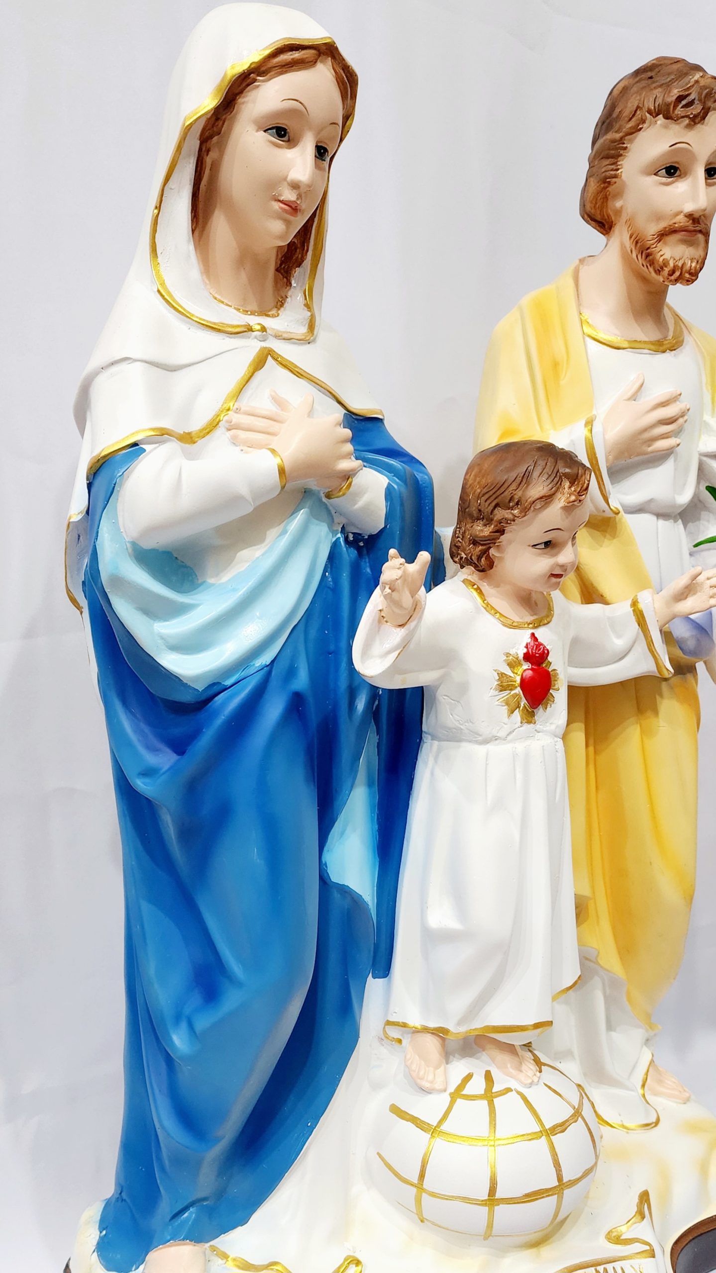 This Holy Family Statue stands at 67 cm tall and features a beautiful and intricate design. Crafted with precision, this statue is a perfect addition to any home or worship space. Show your devotion with this stunning depiction of the Holy Family, making it a meaningful and spiritual centerpiece.
