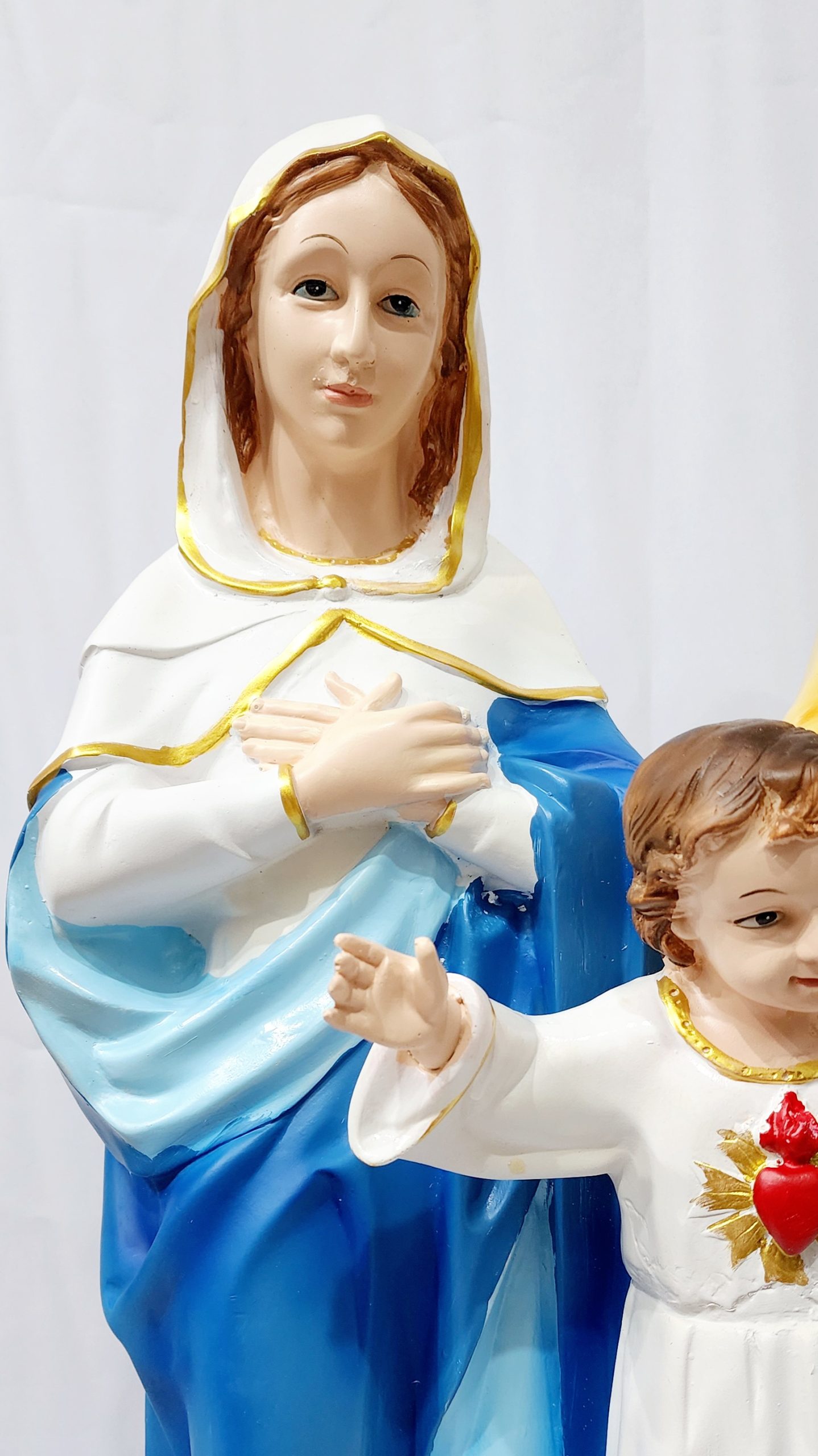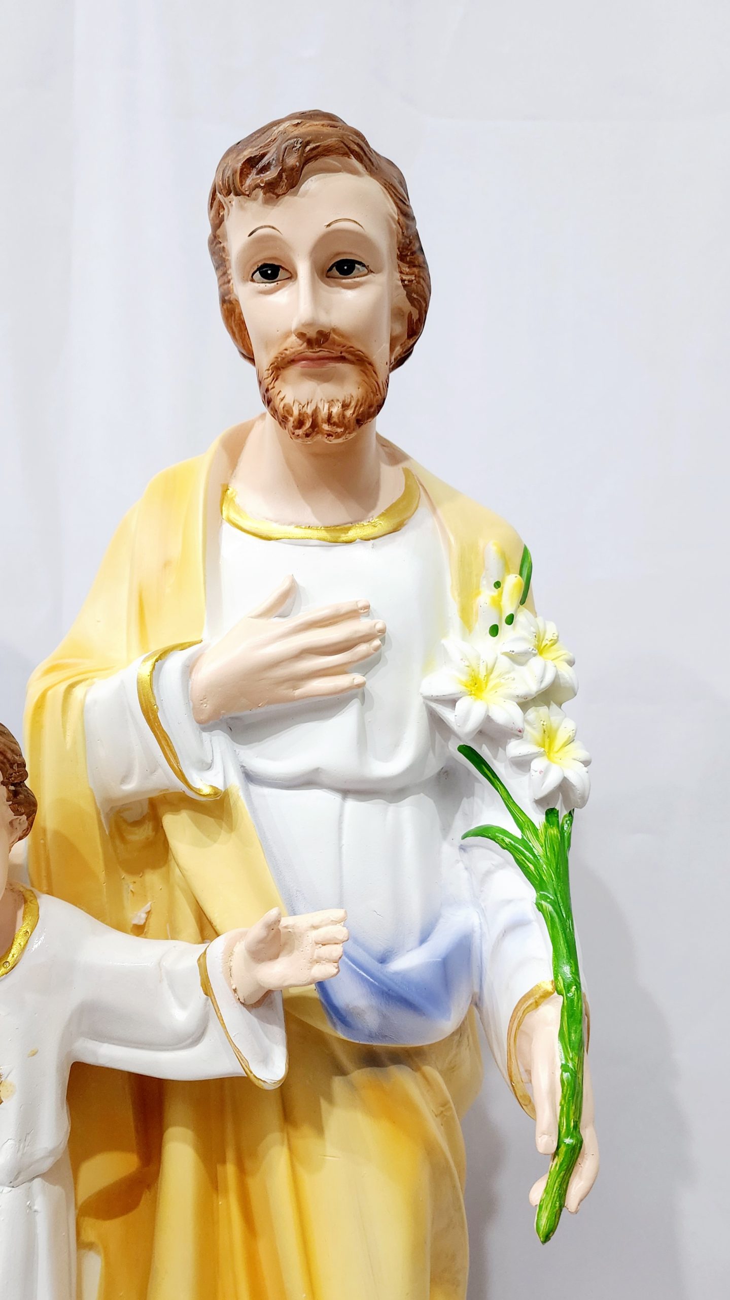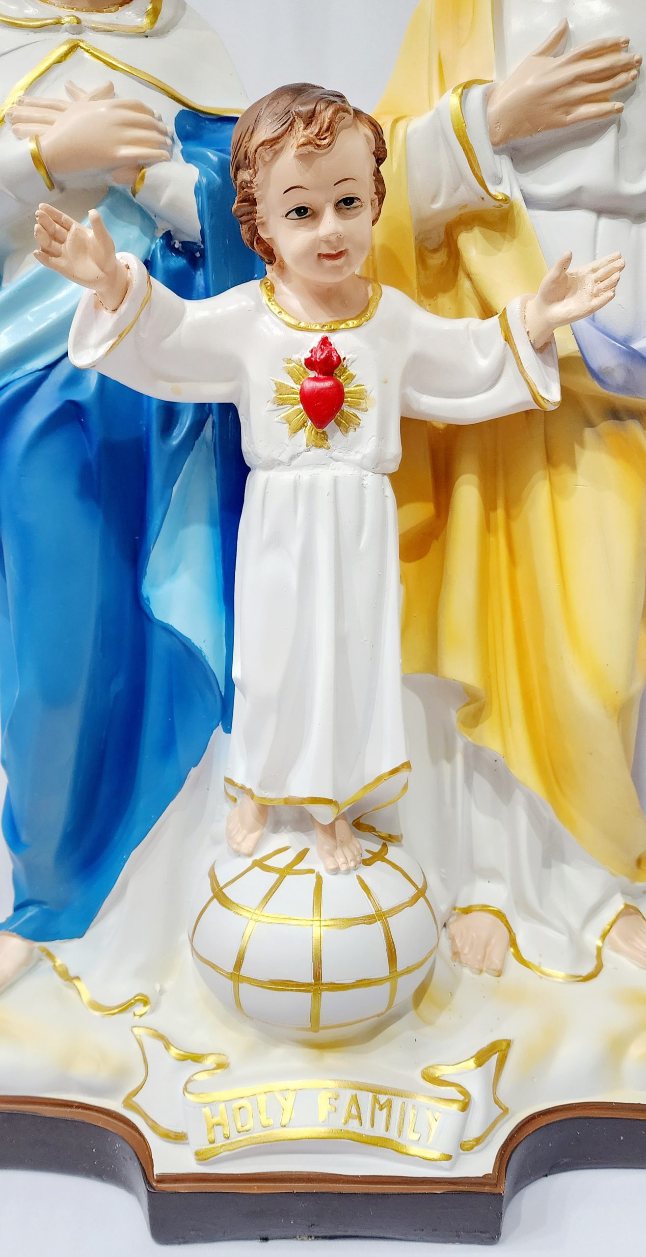 This Holy Family Statue stands at 67 cm tall and features a beautiful and intricate design. Crafted with precision, this statue is a perfect addition to any home or worship space. Show your devotion with this stunning depiction of the Holy Family, making it a meaningful and spiritual centerpiece.