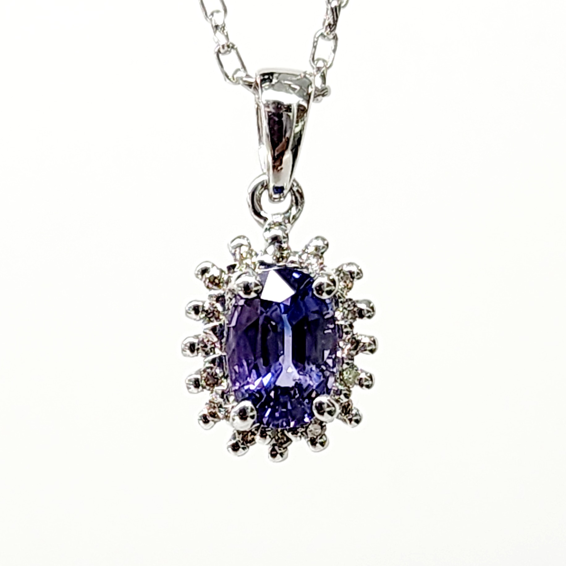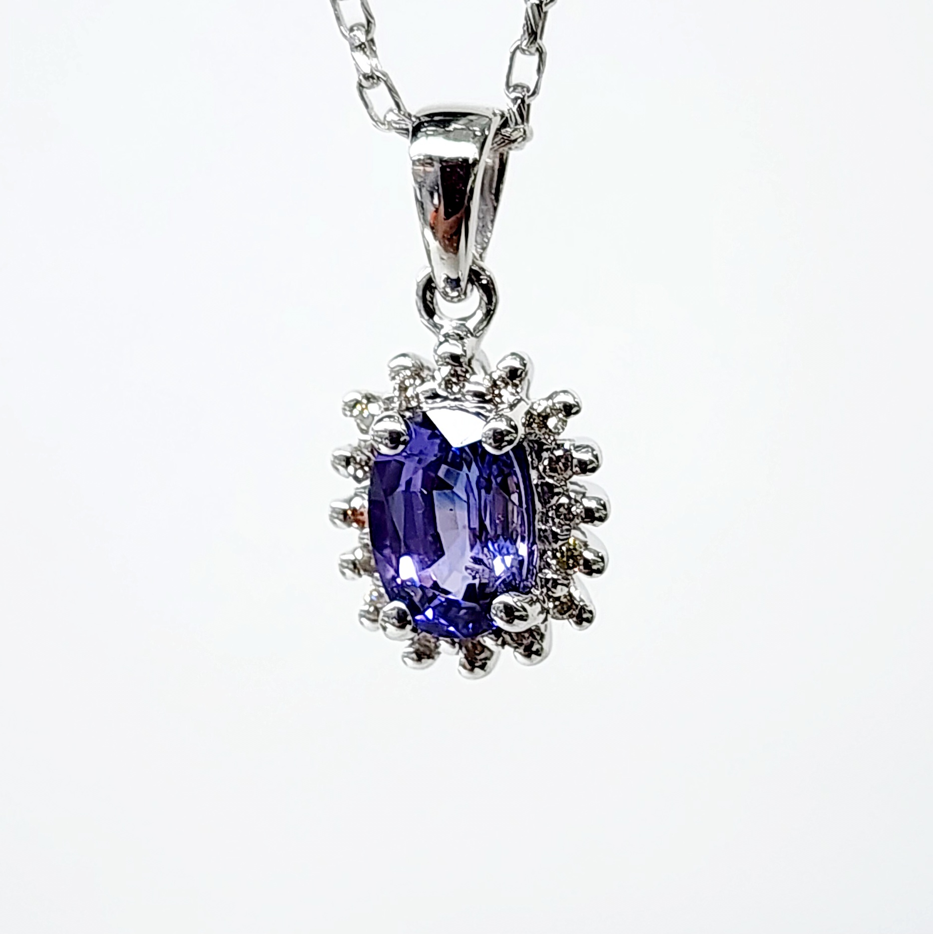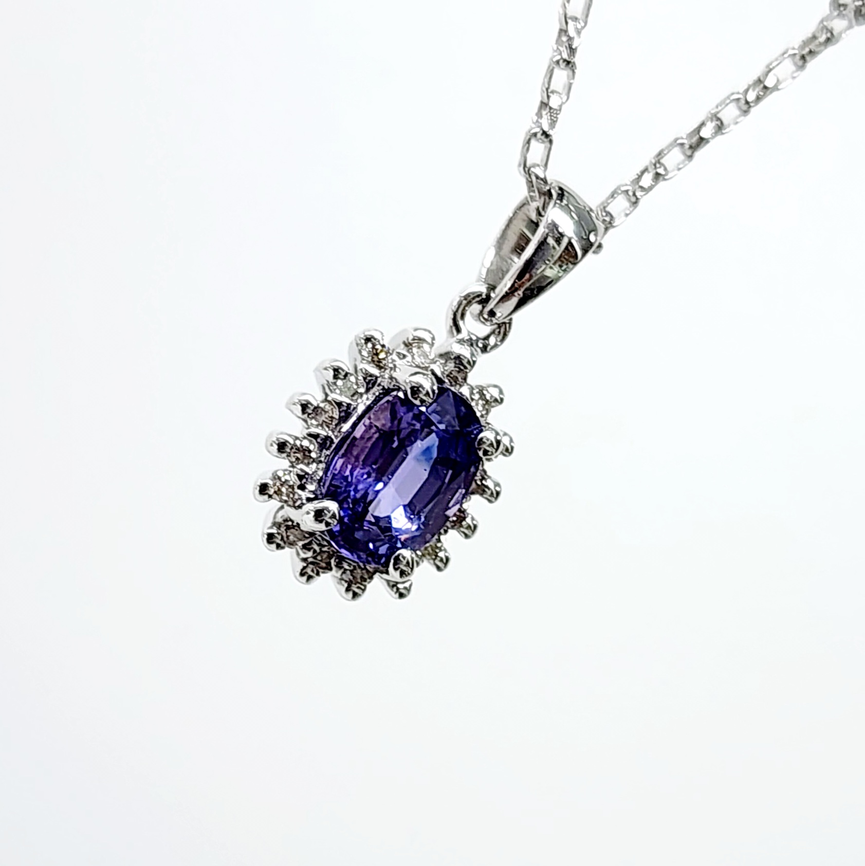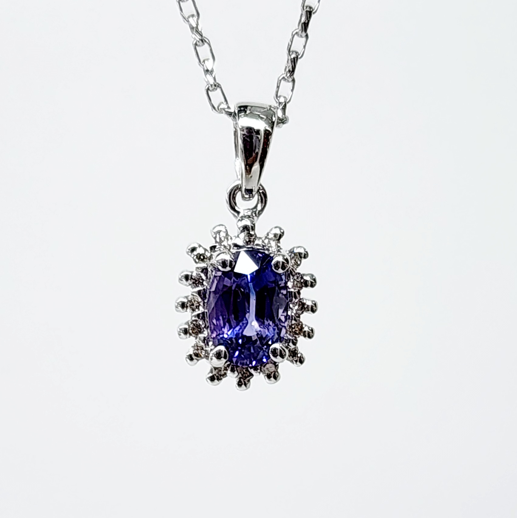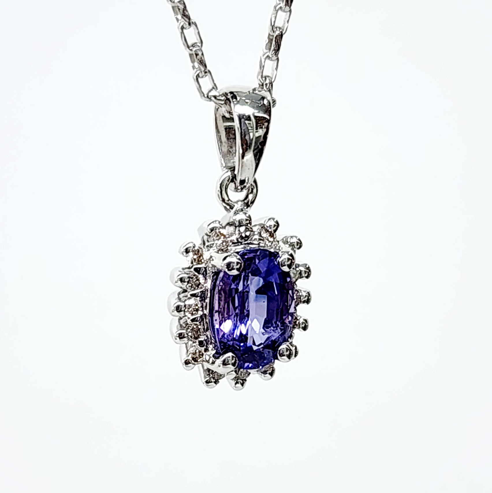 9ct White Gold 1.06ct Ceylon Sapphire with 0.10ct Diamond Halo Pendant