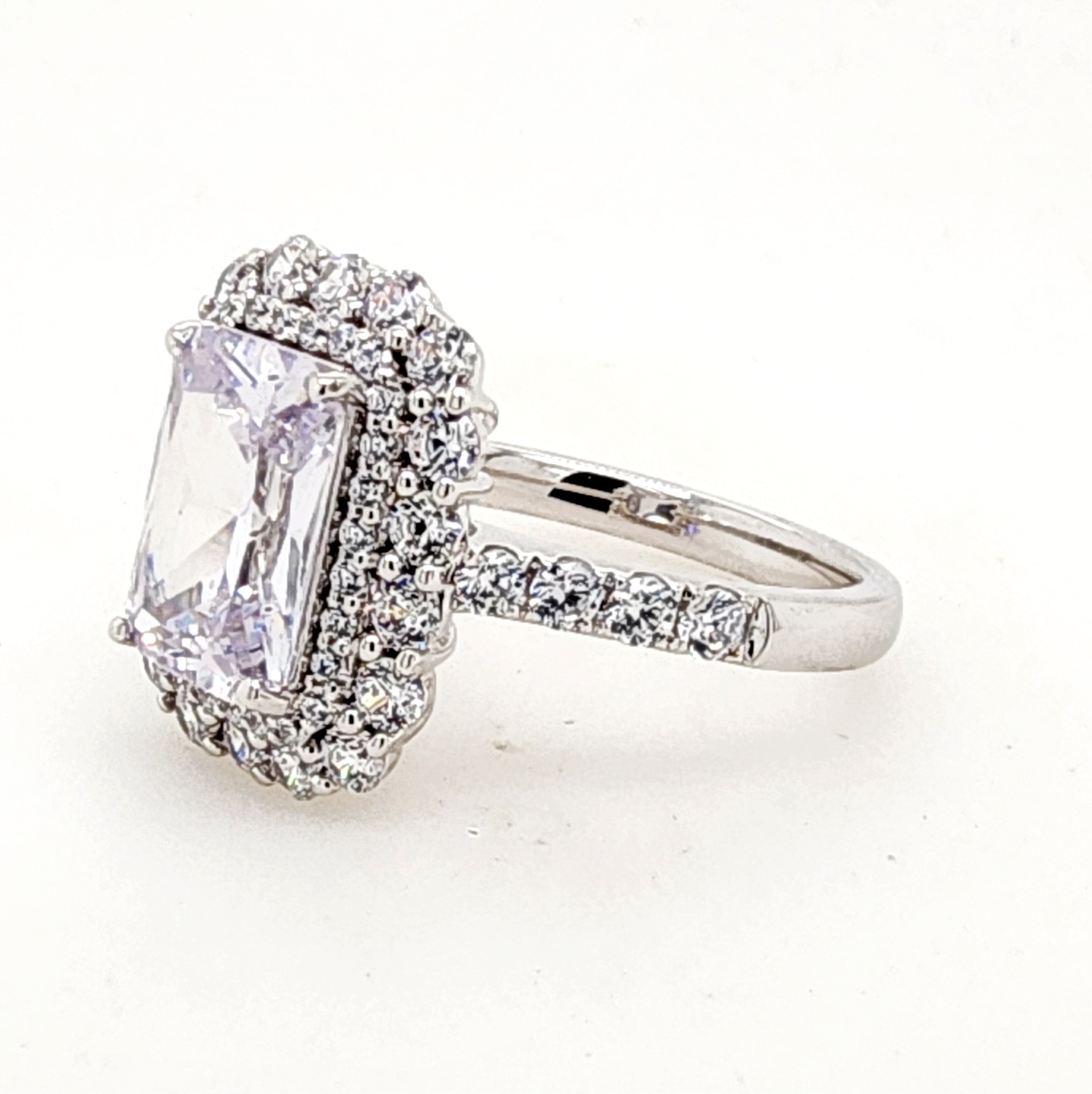 9ct White Gold Emerald / Radiant Halo Cocktail Ring For Her with Cubic Zirconia Setting