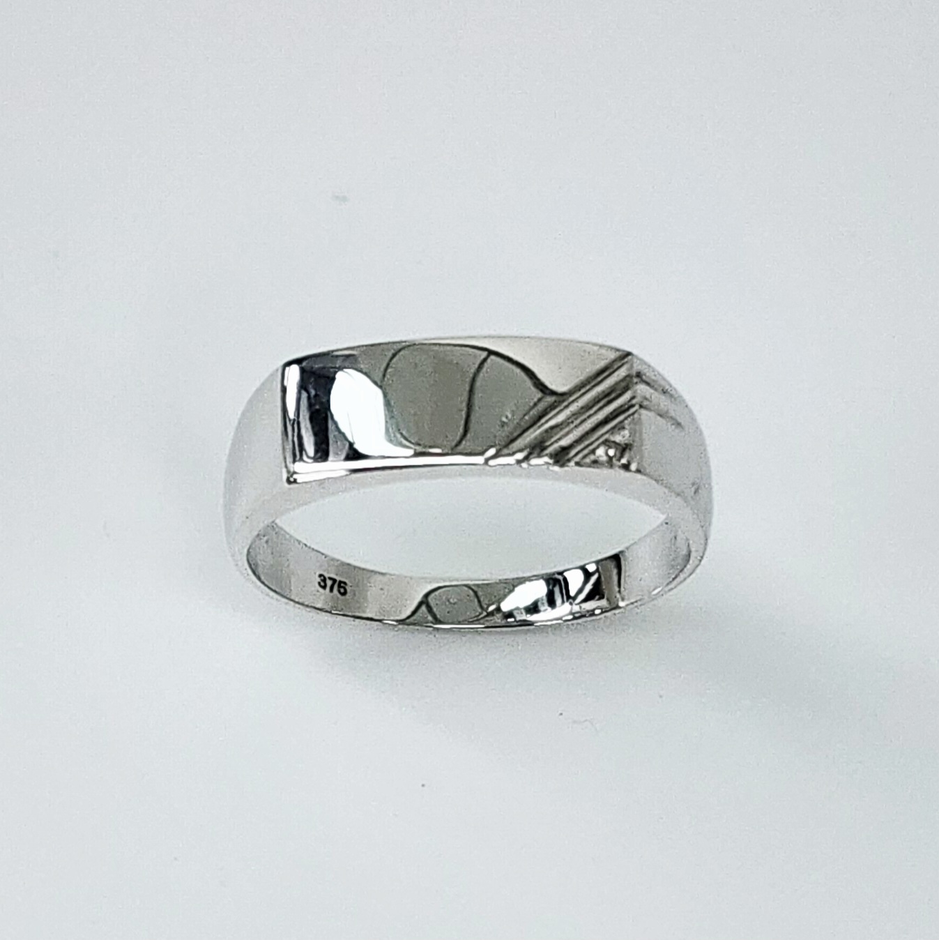 9ct White Gold Gents Striped Diamond Set Signet Ring – D6598/9W