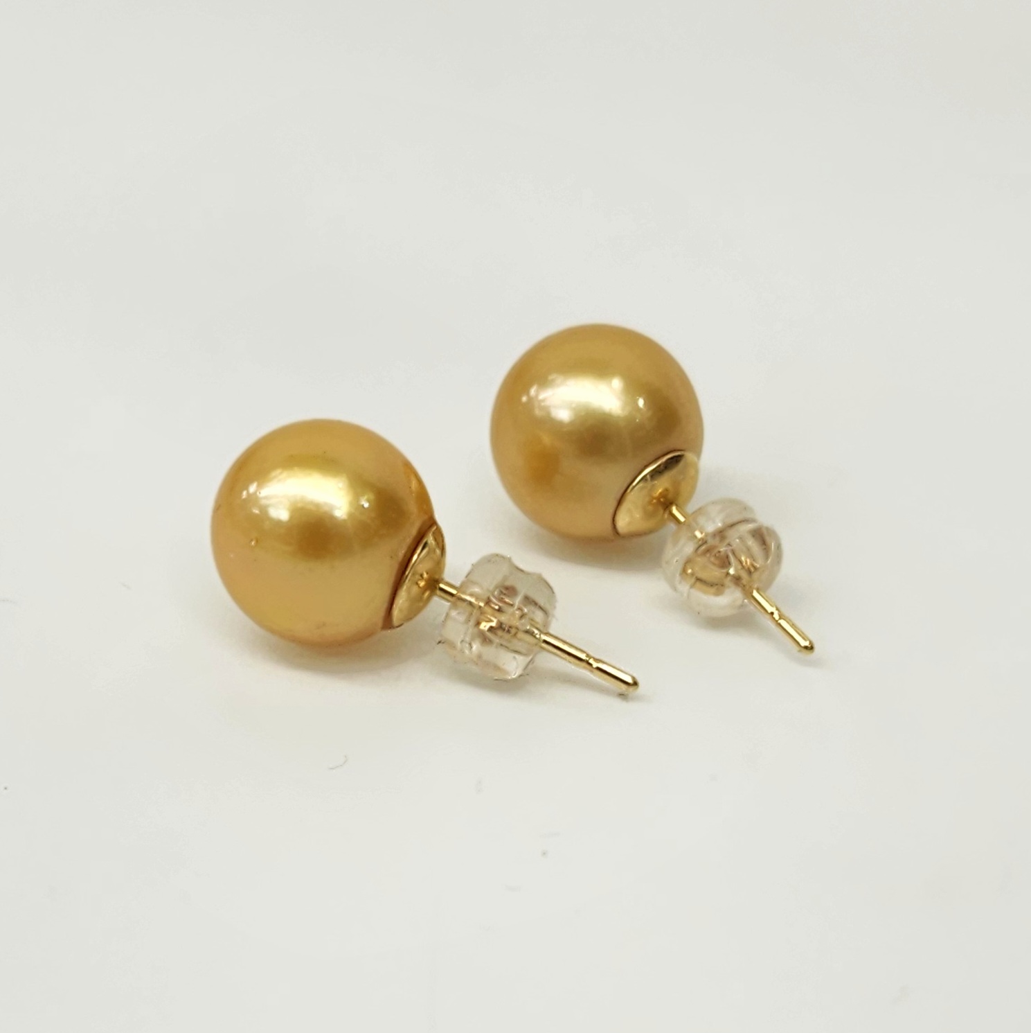 9ct Yellow Gold 11mm Southsea Golden Pearl Stud Earrings