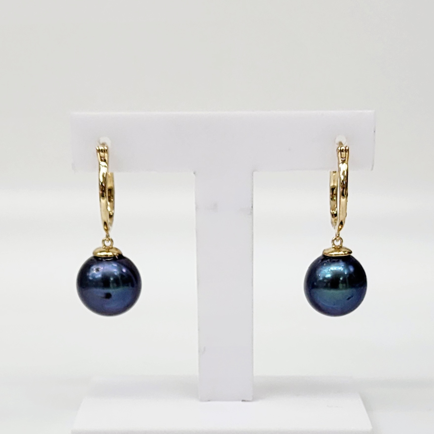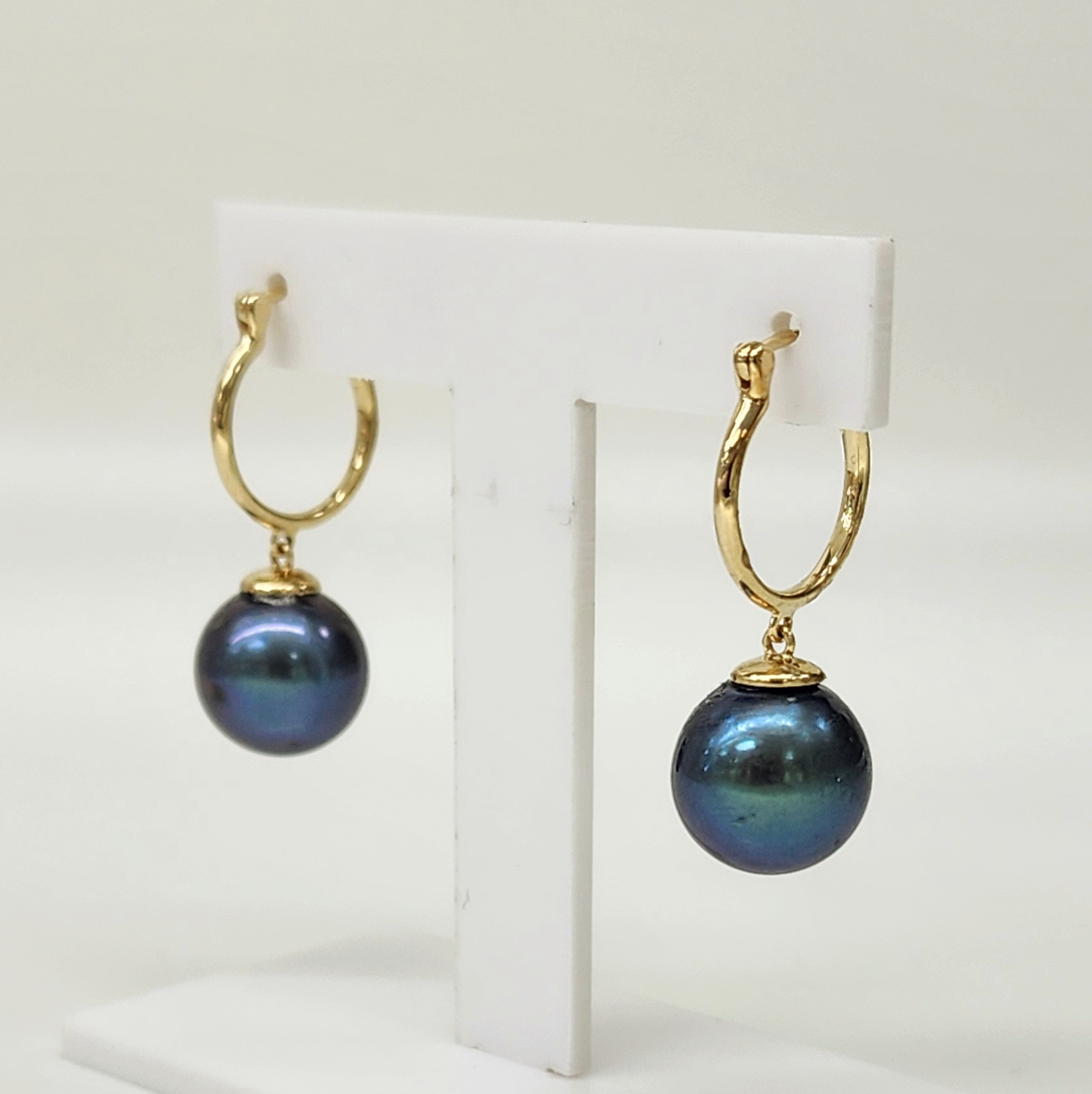 9ct Yellow Gold 11-11.5mm Round Tahitian Peacock Colour Black Pearl Hoop Earring
