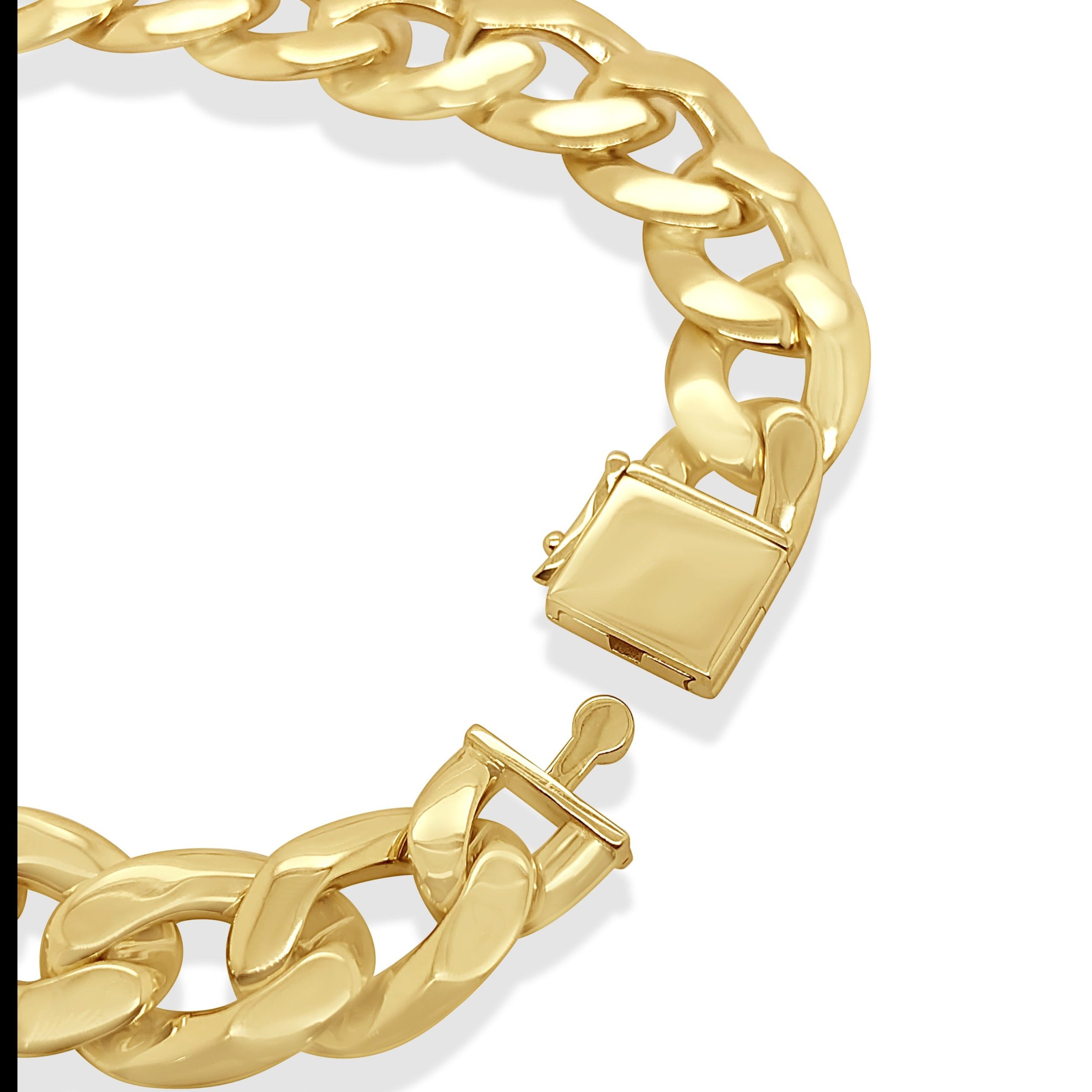 9ct Yellow Gold 12.5mm Wide Curb Link Bracelet 22cm Long