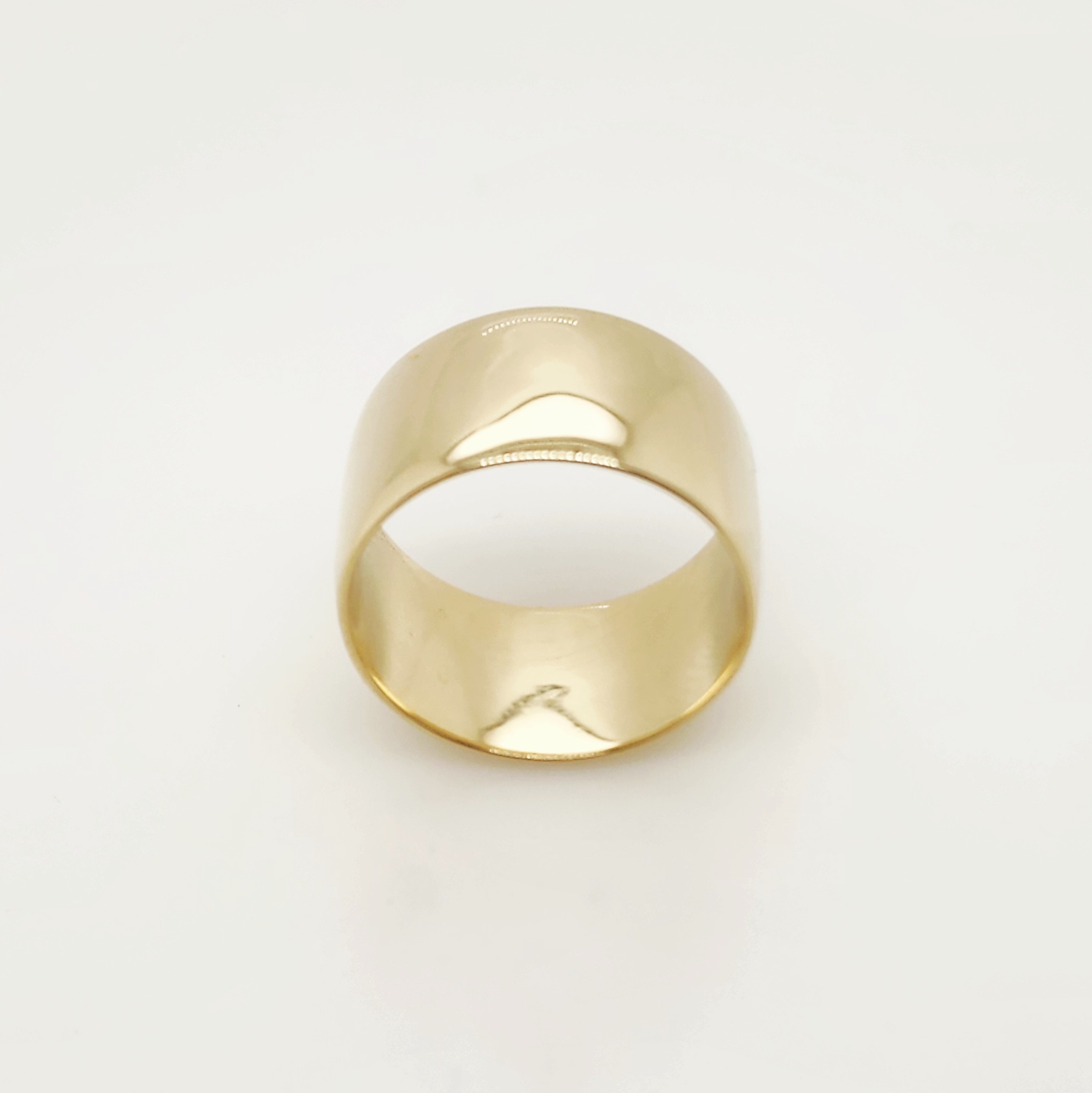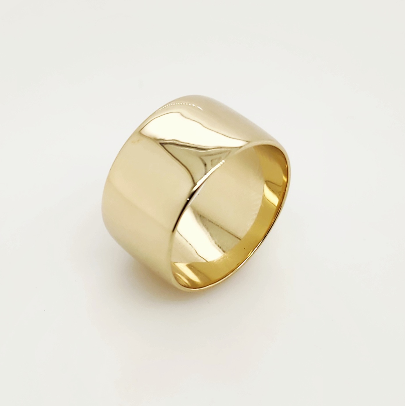 Make a bold statement with this extra-wide wedding band, expertly crafted in solid 9ct yellow gold. Measuring an impressive 12mm in width, this ring is designed for those who prefer a substantial, standout look on the hand.