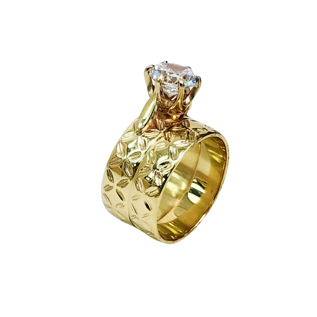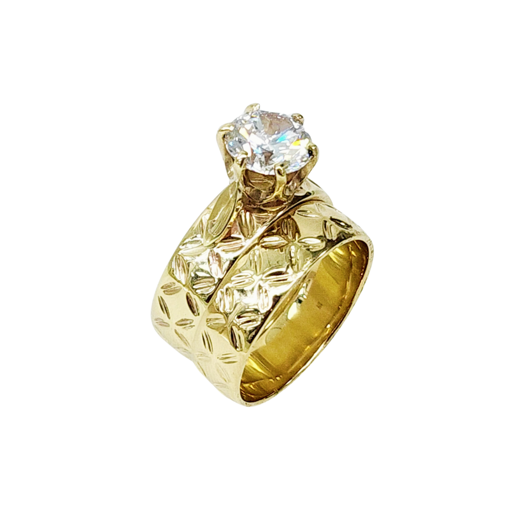 9ct Yellow Gold 2 Piece Wedding Set with Polynesian Design and Cubic Zirconia Setting