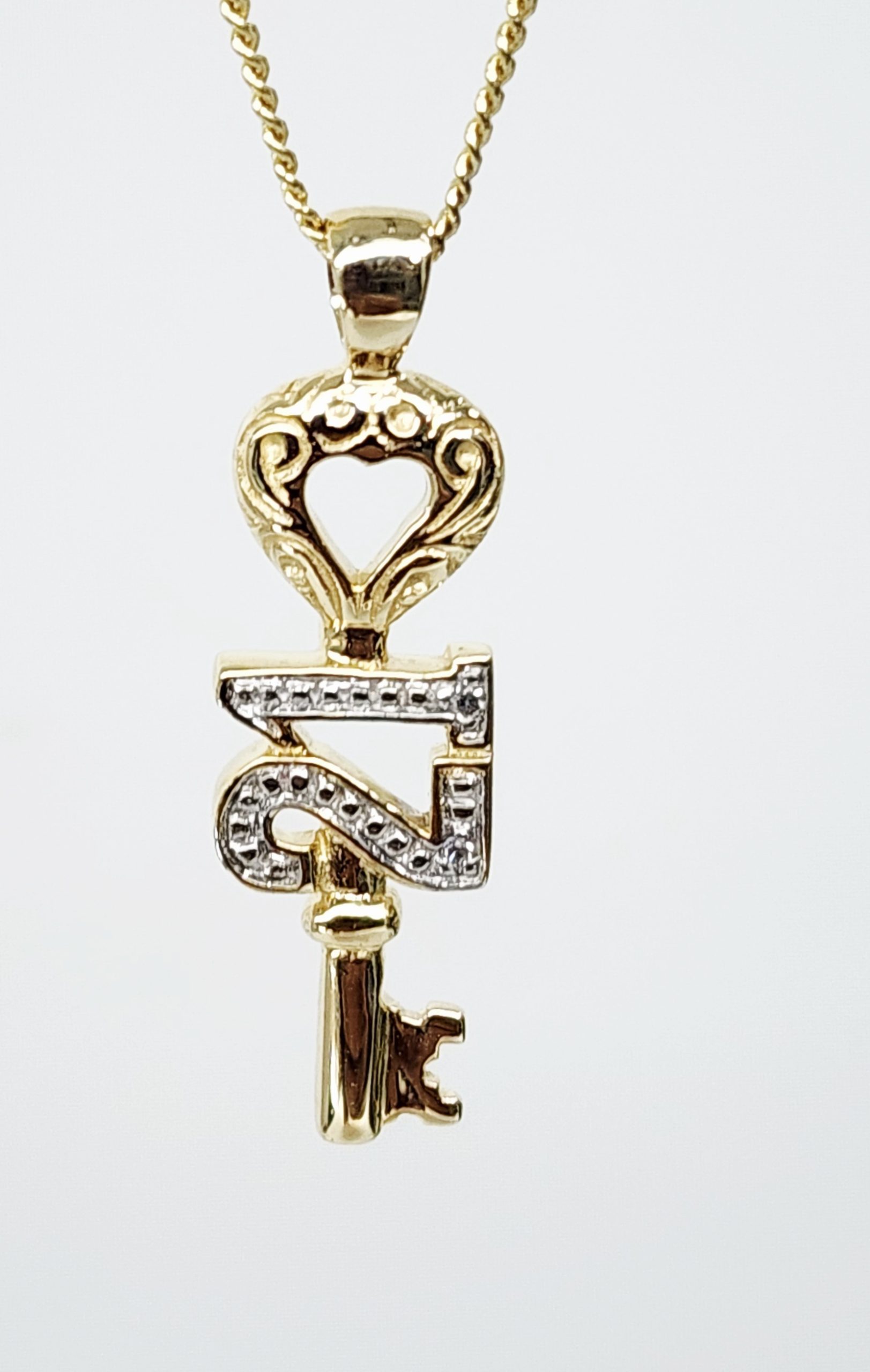 9ct Yellow Gold 21st Diamond Birthday Key Pendant – D4489