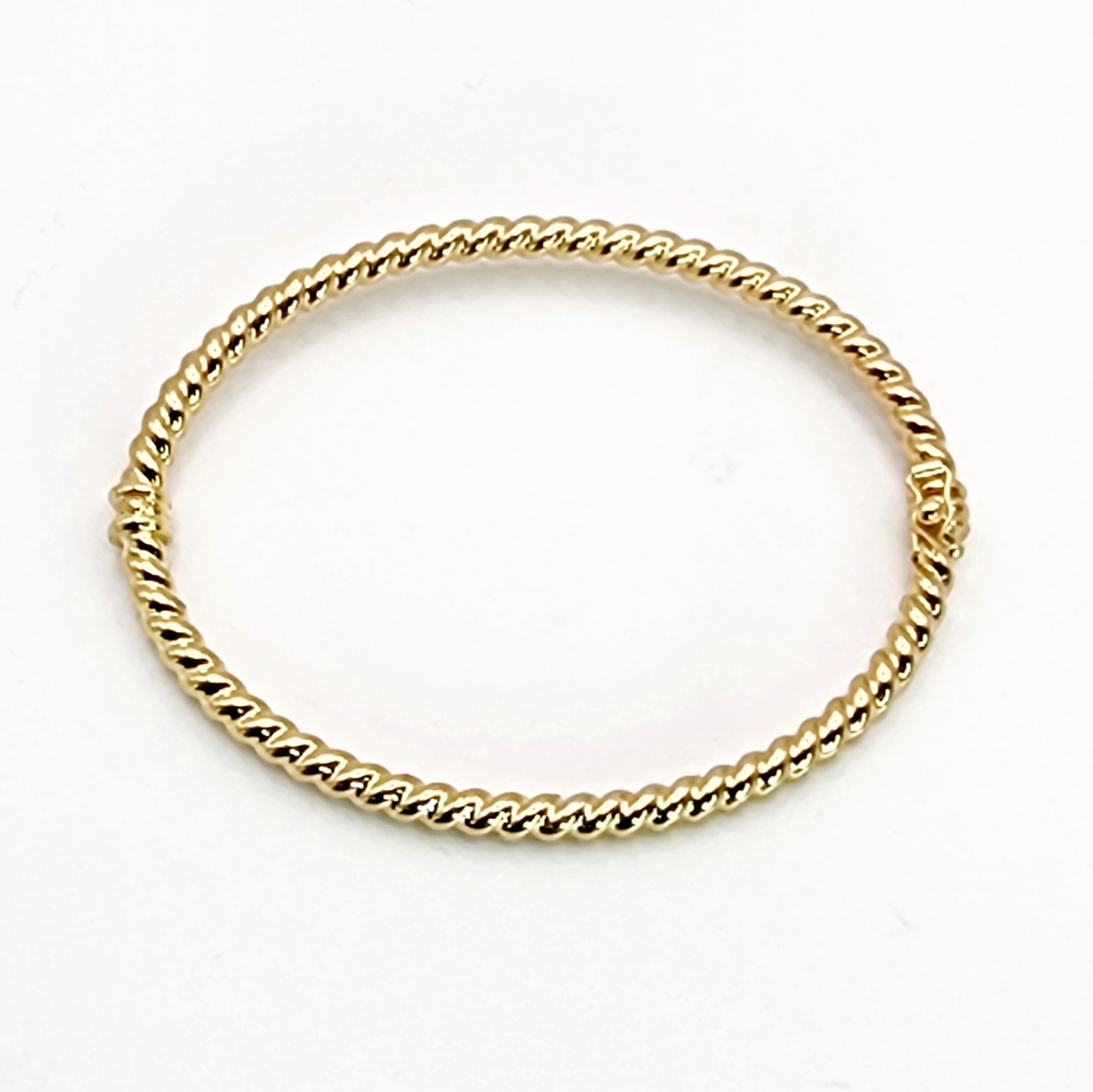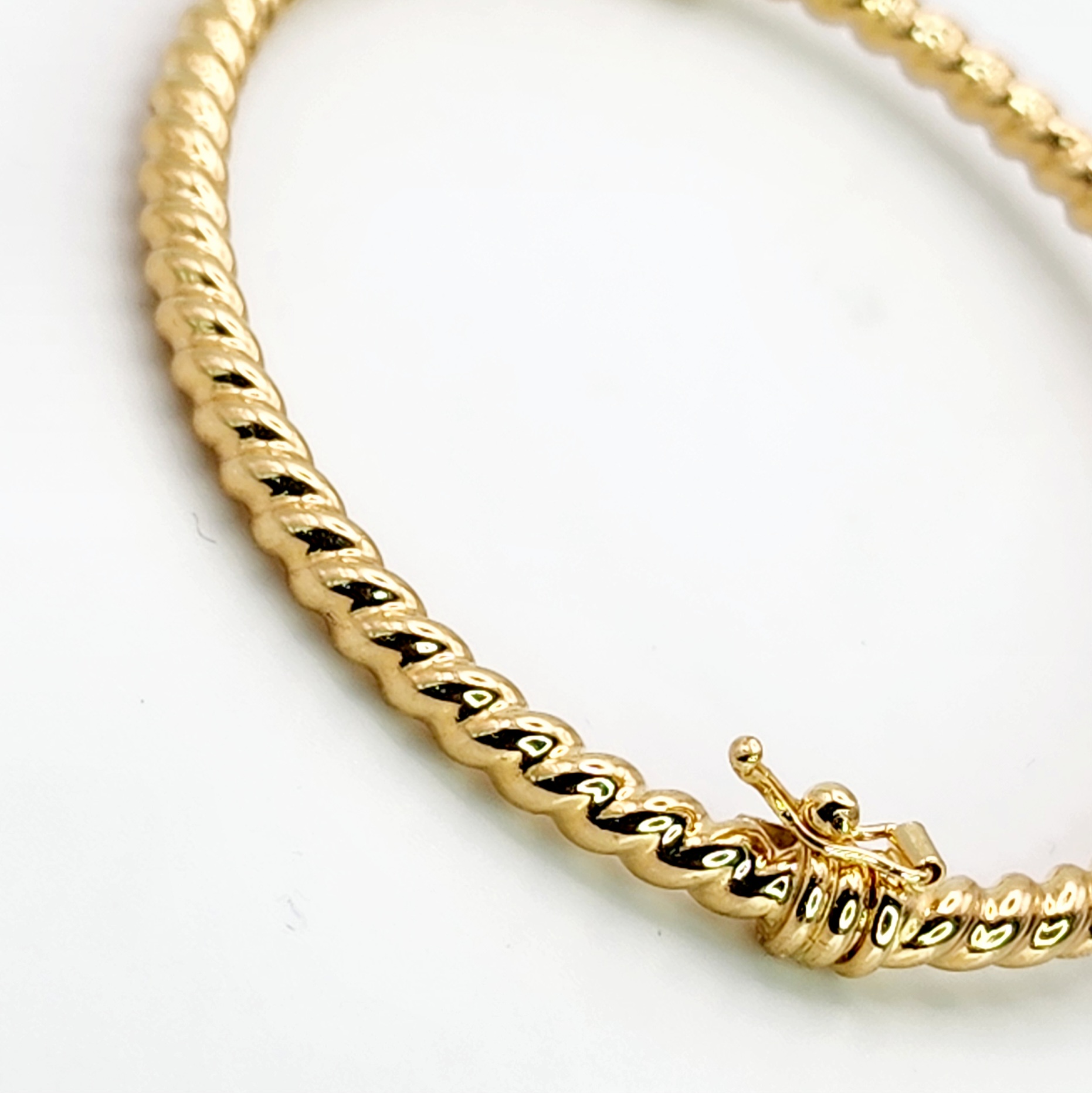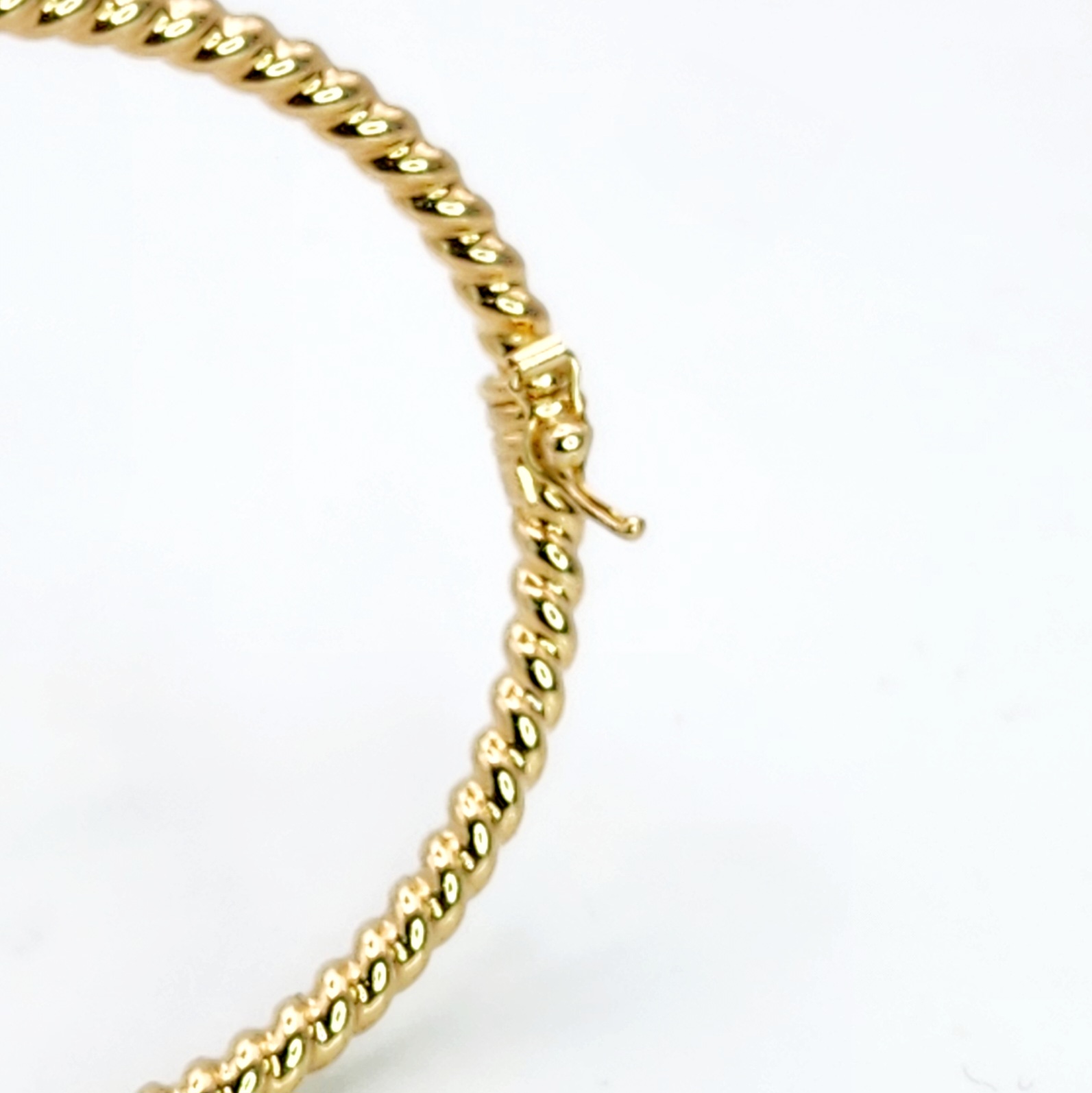 9ct Yellow Gold 4mm Fancy Twist Round Tube Hinged Bangle