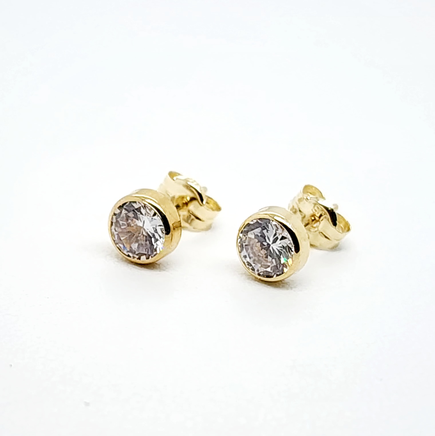 9ct Yellow Gold 5mm Round Bezel Set Cubic Zirconia Stud Earrings