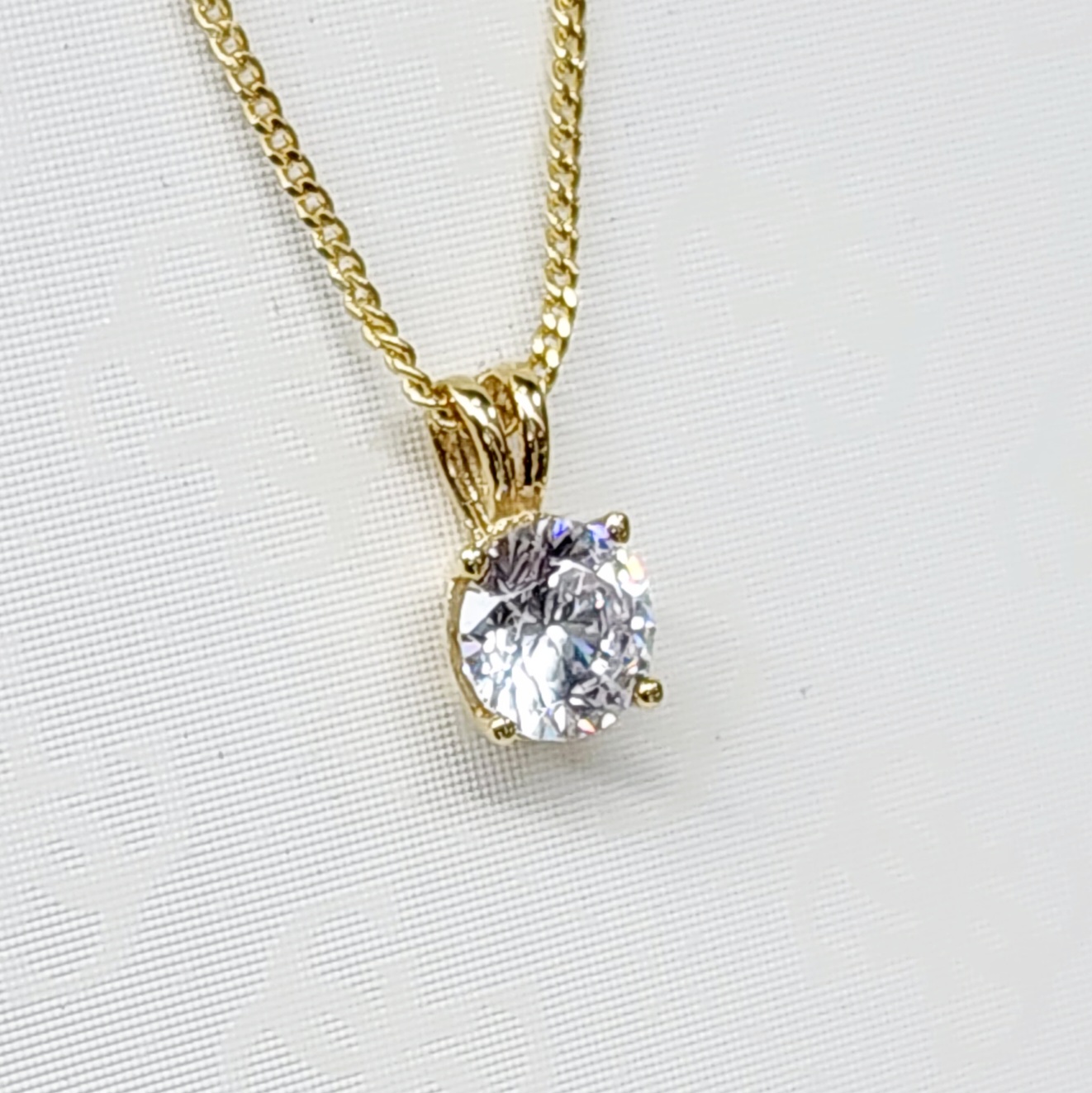 A georgeously cut 6.2mm cubic zirconia is set within four 9ct yellow gold claws. This pendant awes with its classical simplicity and understated glamour.