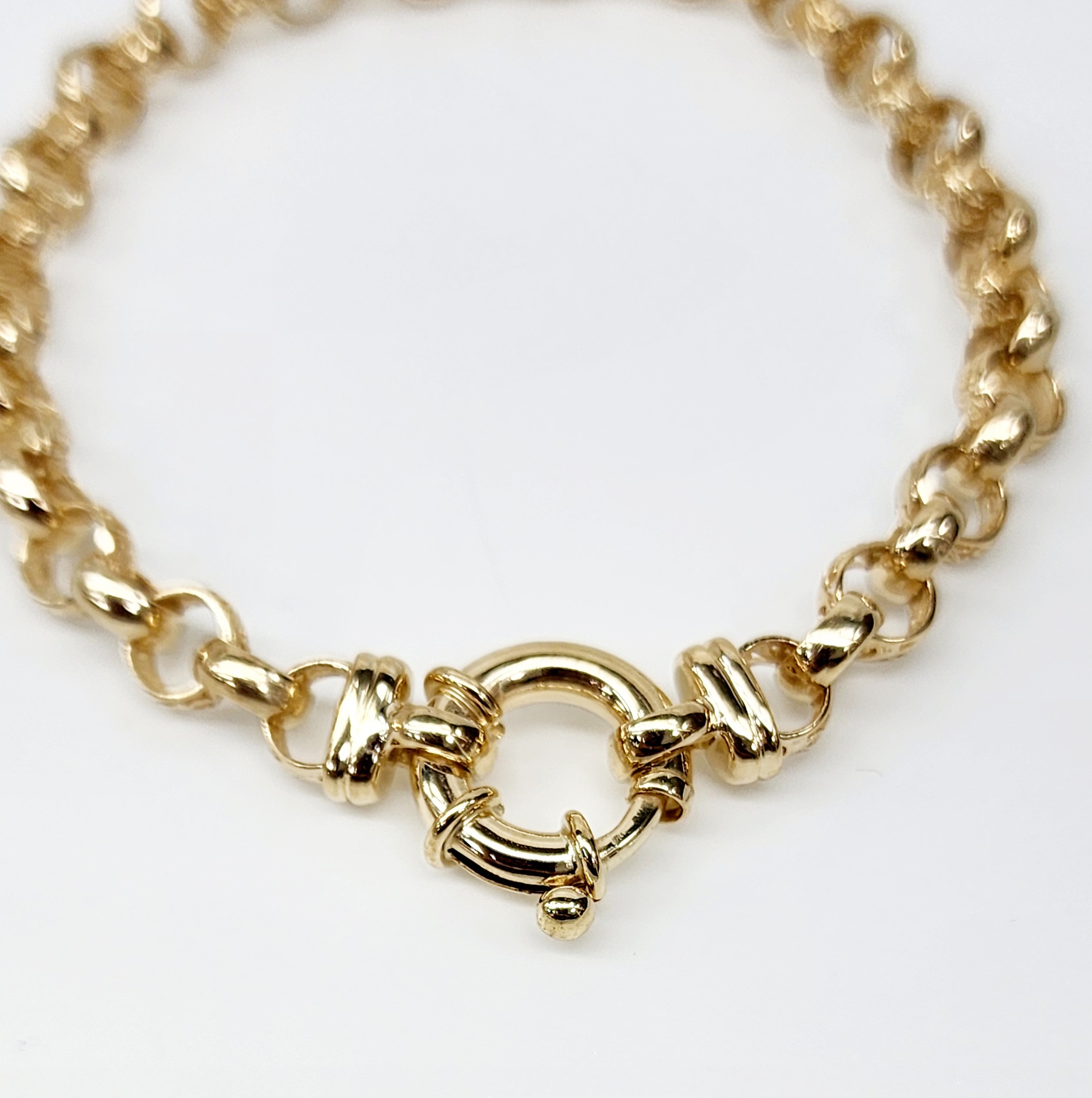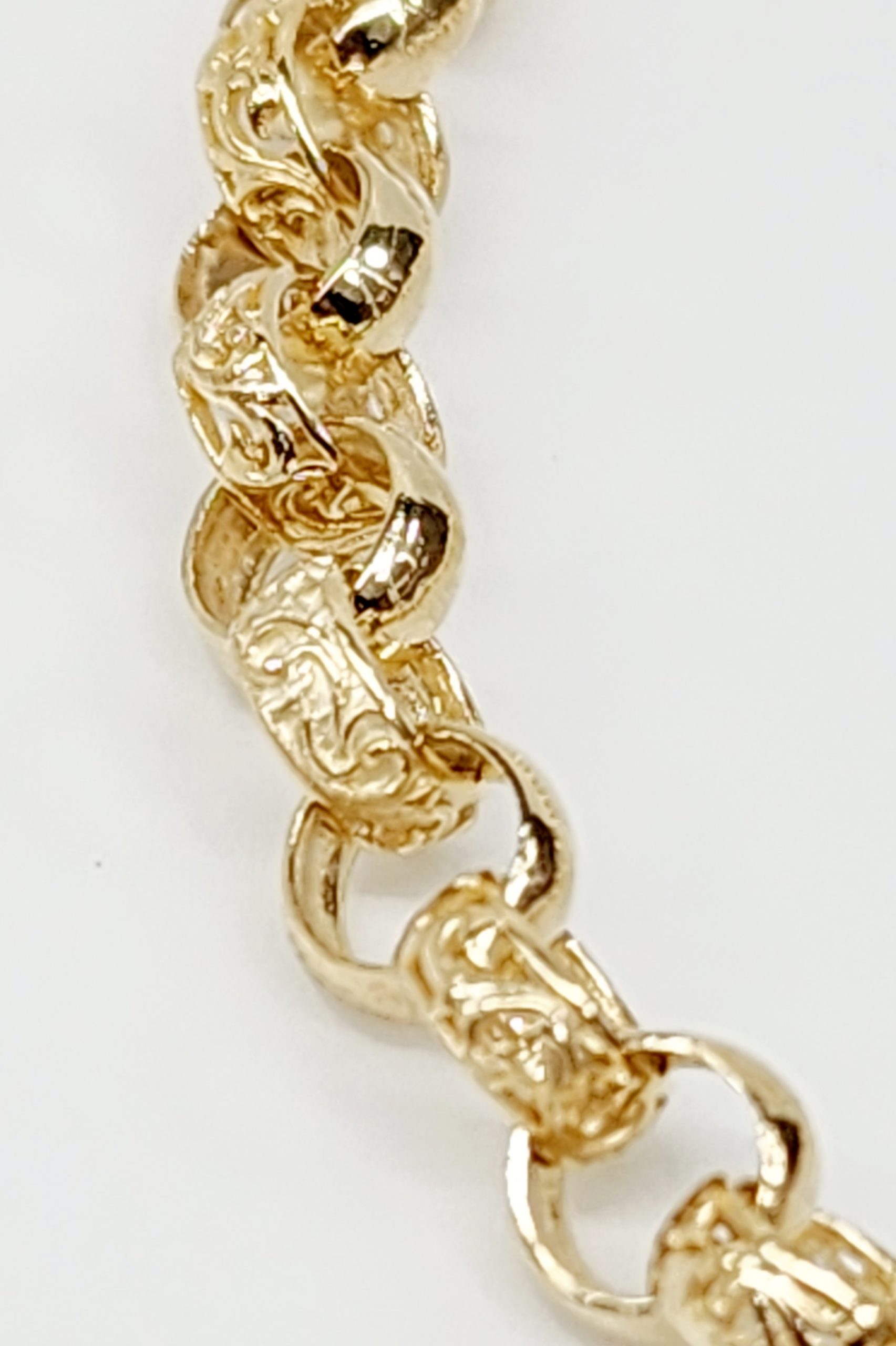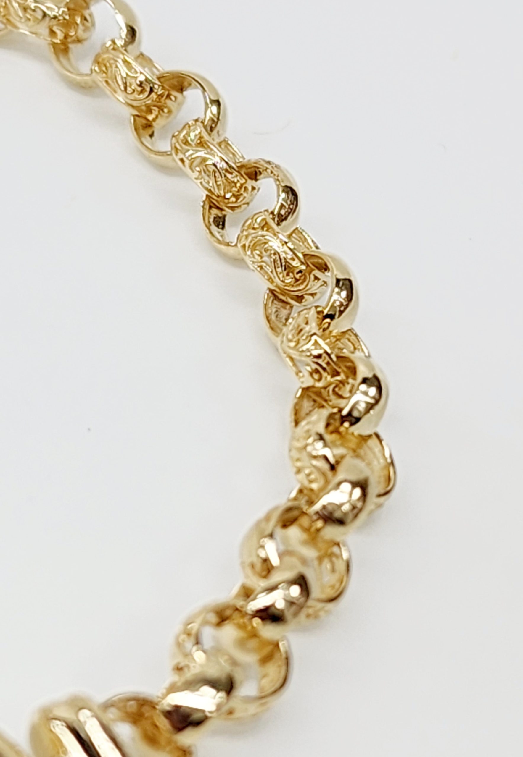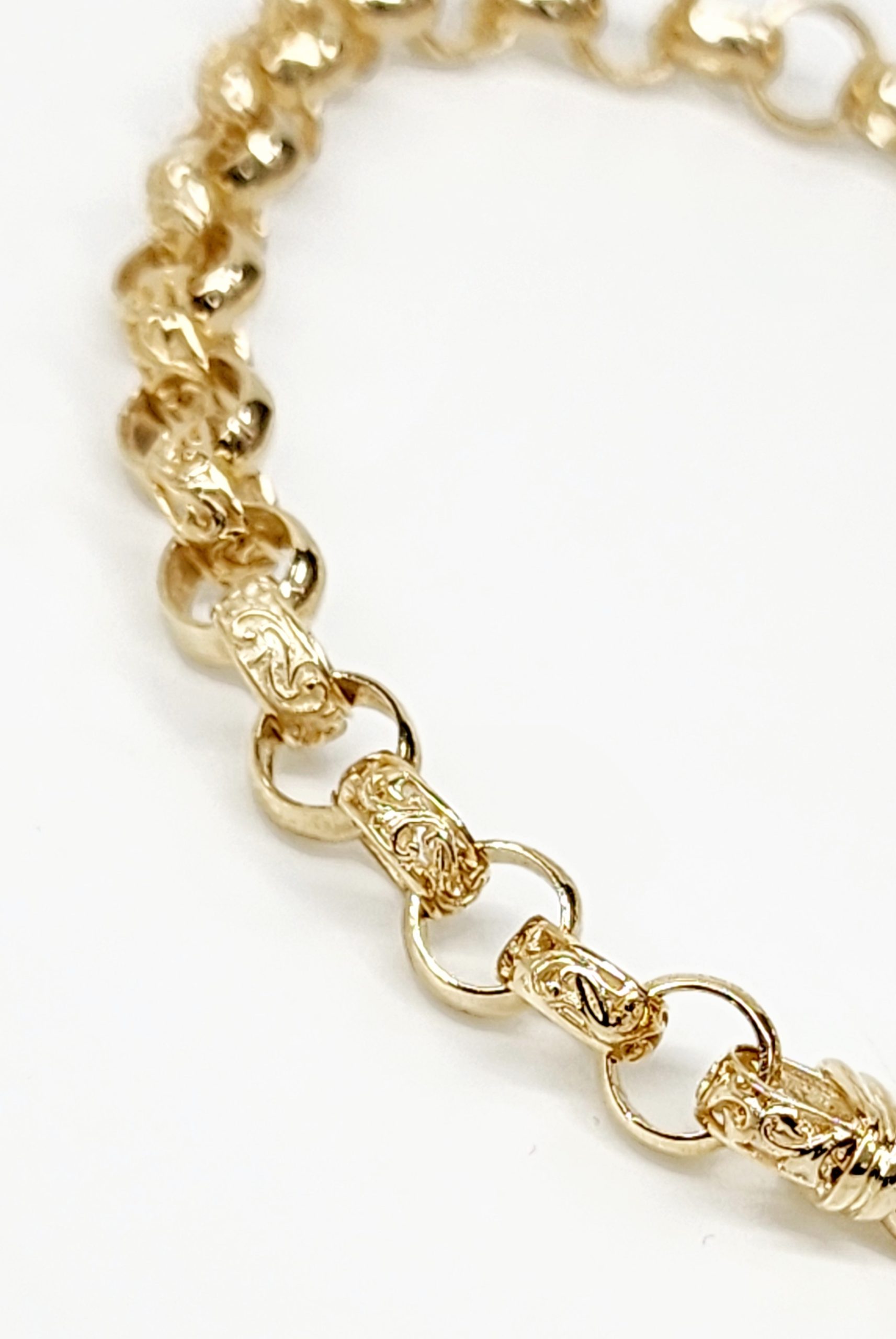 This exquisite bracelet is crafted in 9ct yellow gold, featuring a solid round filigree belcher design that exudes timeless elegance. Measuring 20cm in length, each link is meticulously crafted with dimensions of 6.2mm x 2.8mm, ensuring a sturdy yet refined aesthetic. The solid links are joined seamlessly to create a durable and stylish piece, secured with a reliable bolt ring catch for added peace of mind. Perfect for both everyday wear and special occasions, this bracelet combines classic design with superior craftsmanship, making it a versatile addition to any jewellery collection.