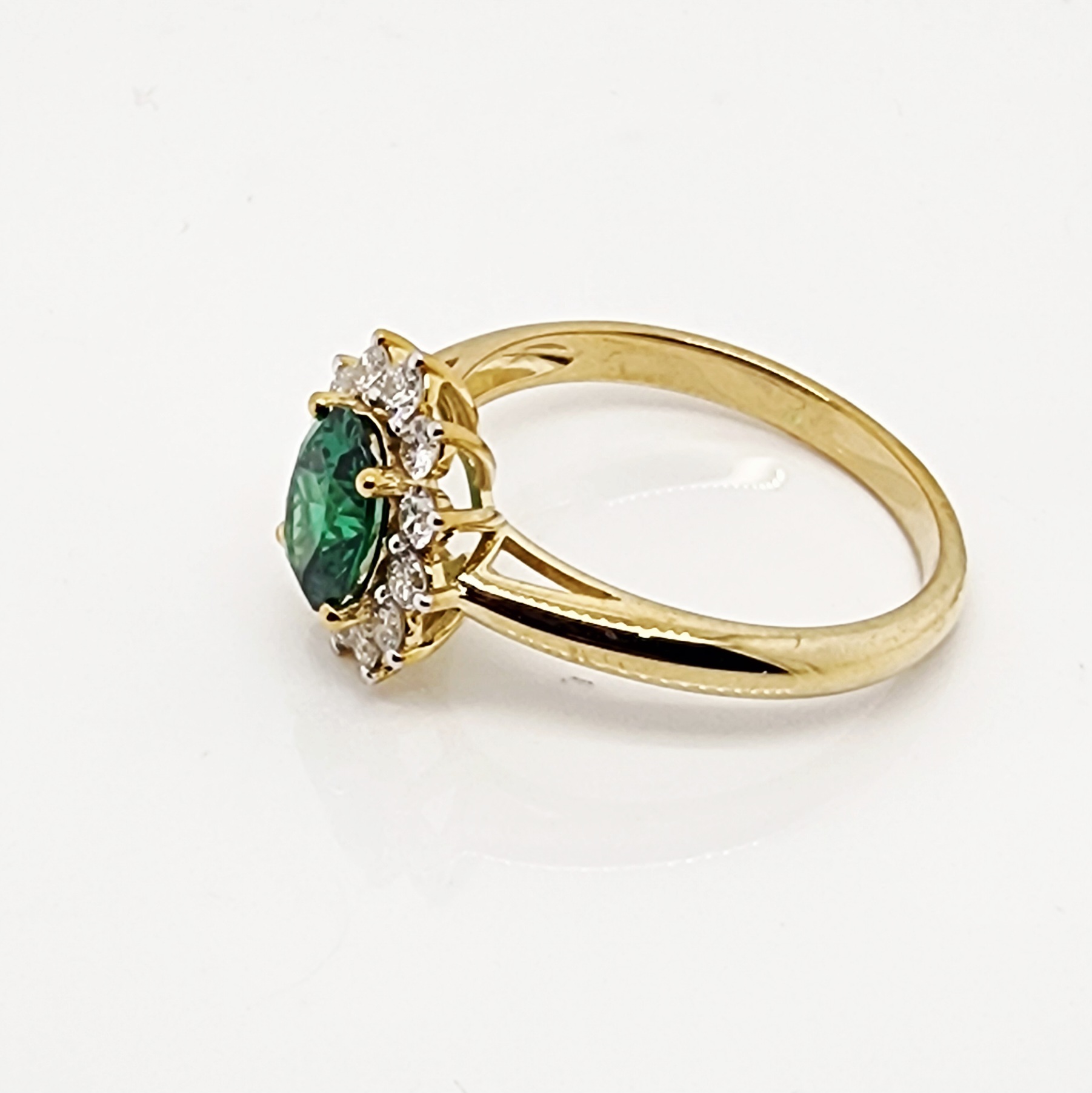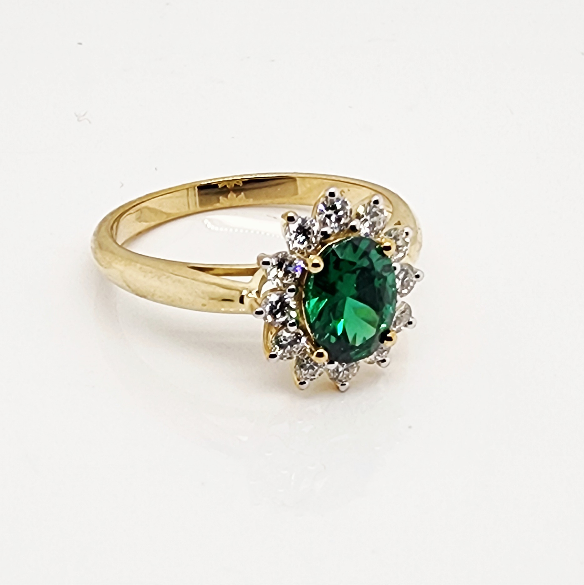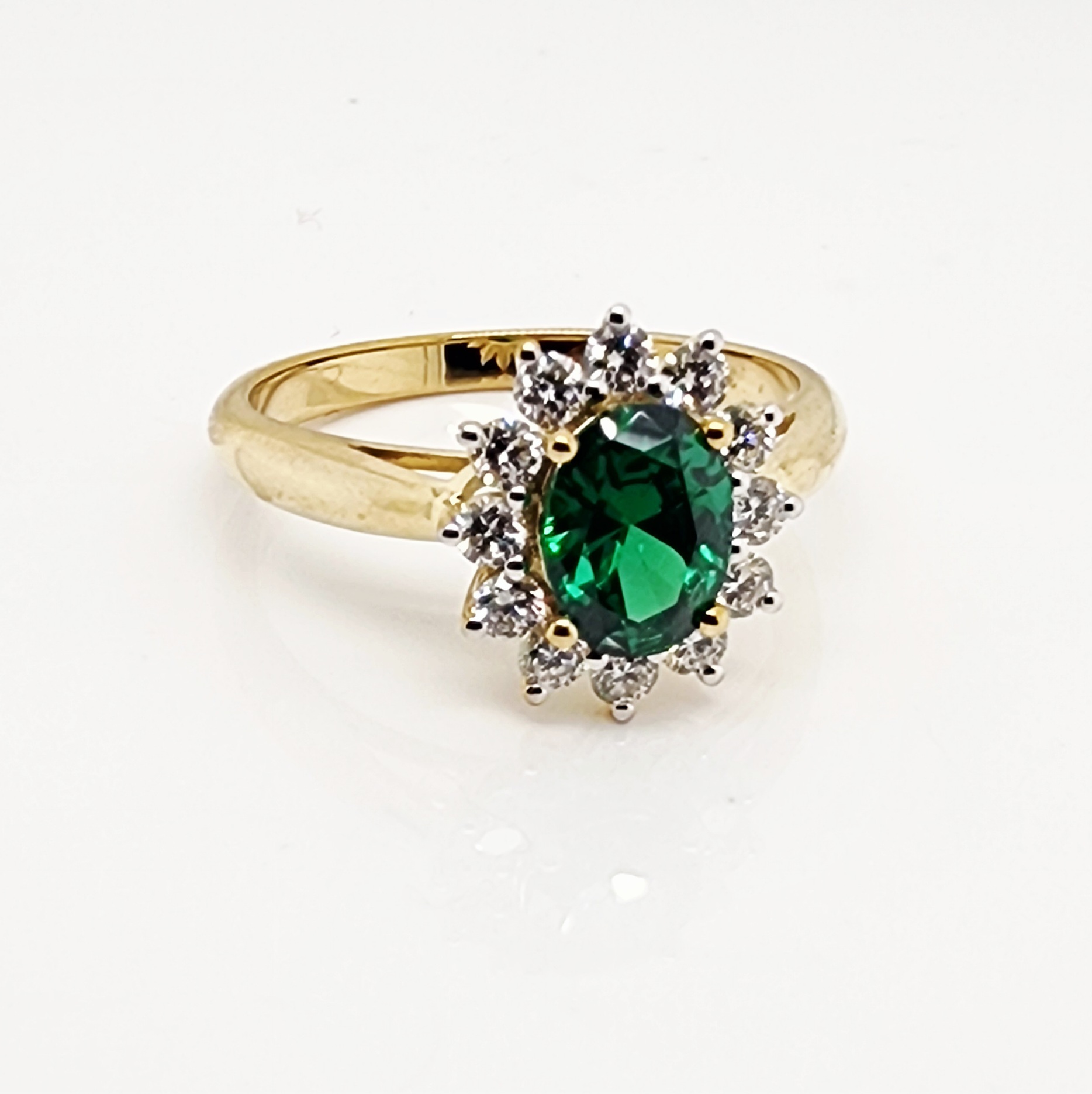9ct Yellow Gold 6 x 8 Oval Created Emerald with 0.54ct LAB Diamond Halo Setting – D/A469CELGD