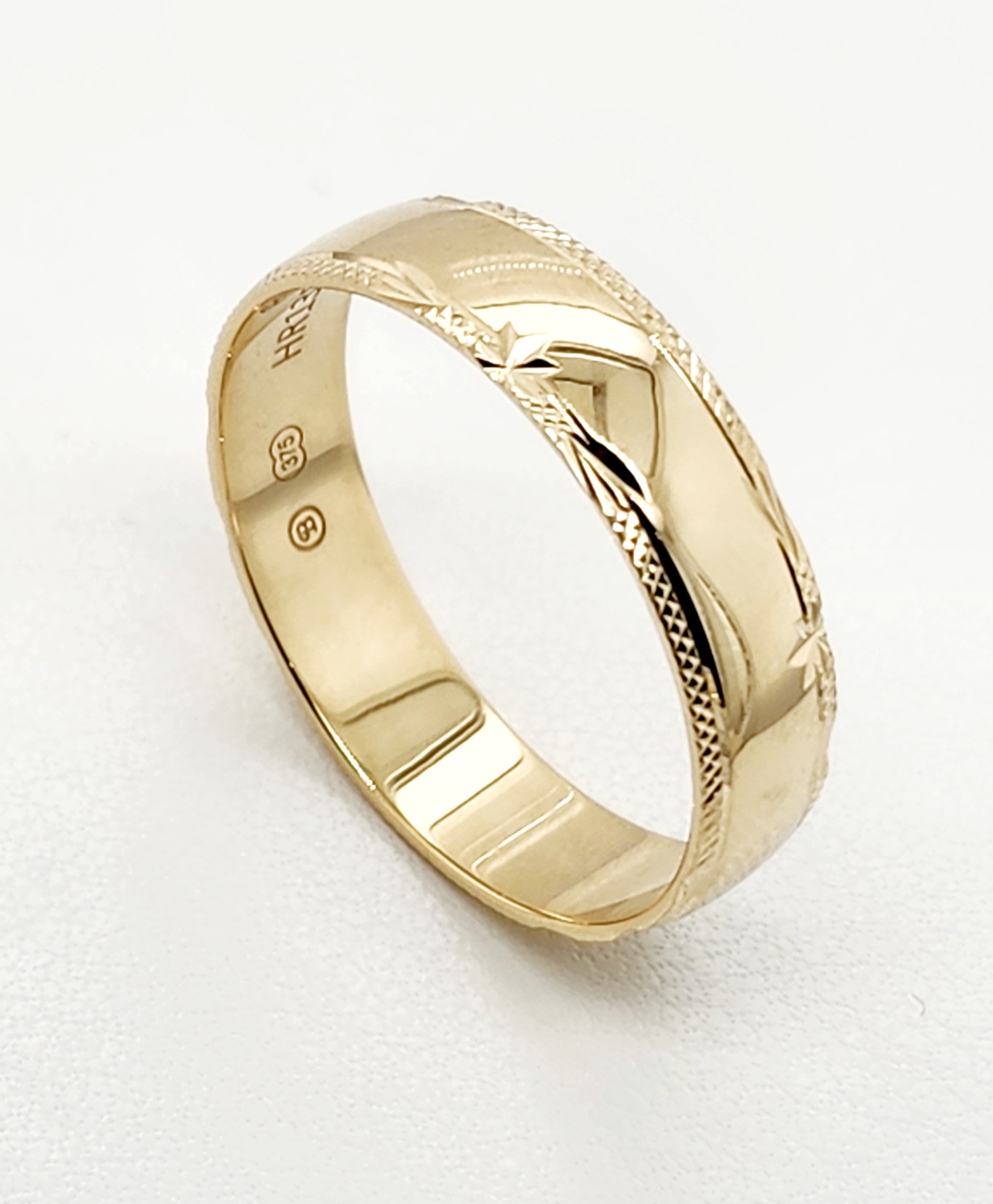 9ct Yellow Gold 6mm Wide Half Round Diamond Cut Edge High Polished Men’s Wedding Band