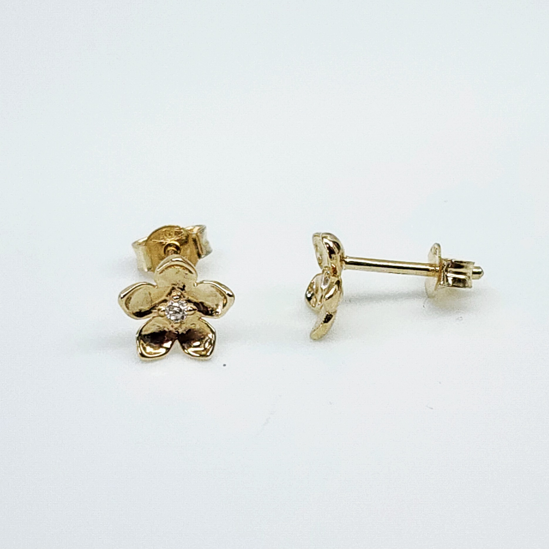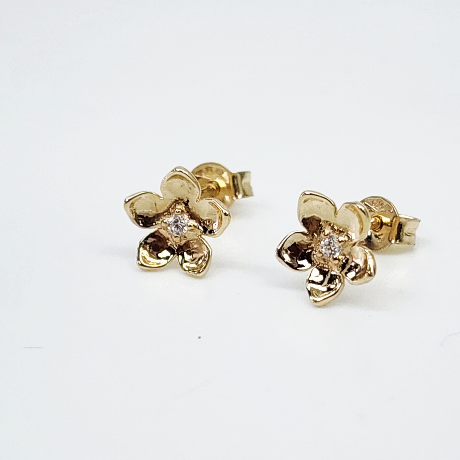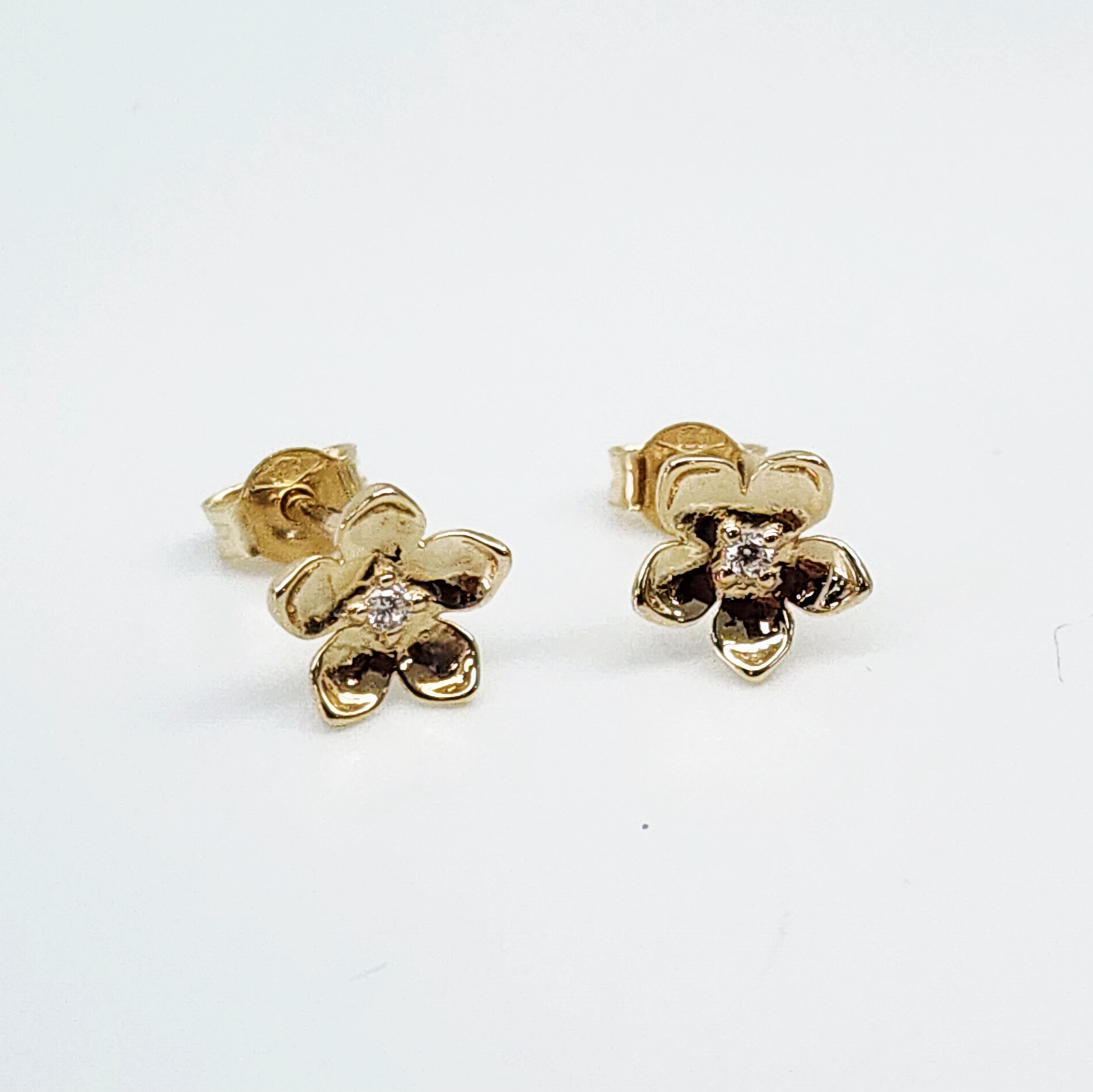 At the centre of each flower is a brilliant cubic zirconia (CZ) stone, securely set to catch the light and create a radiant shimmer. The studs are finished with 9ct gold butterfly backings, ensuring a comfortable and secure fit for everyday wear.