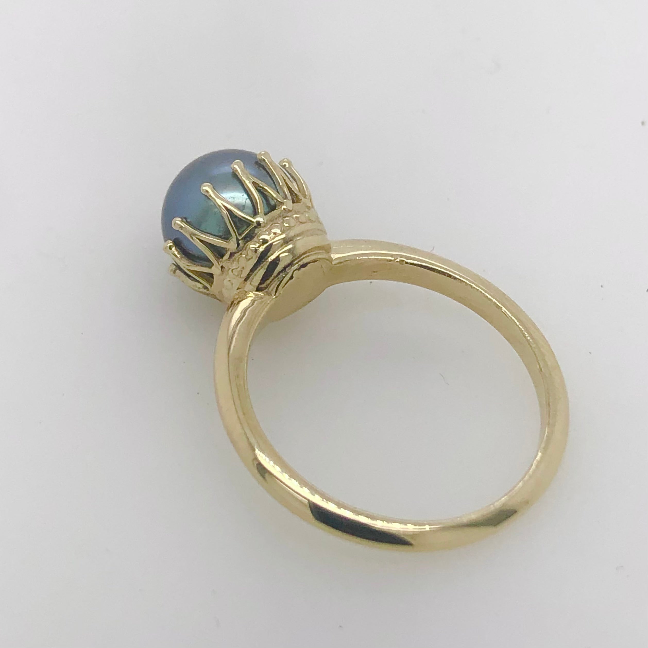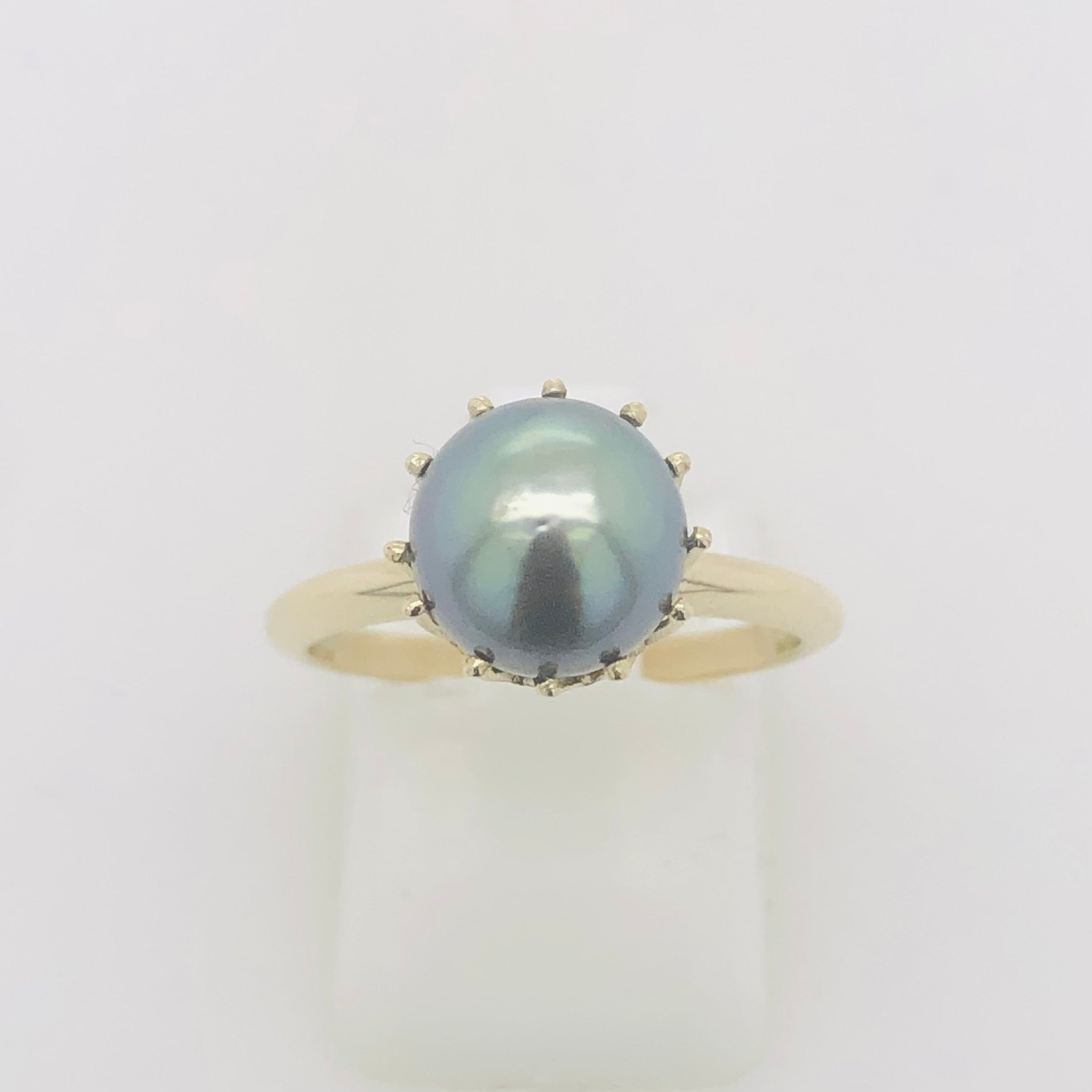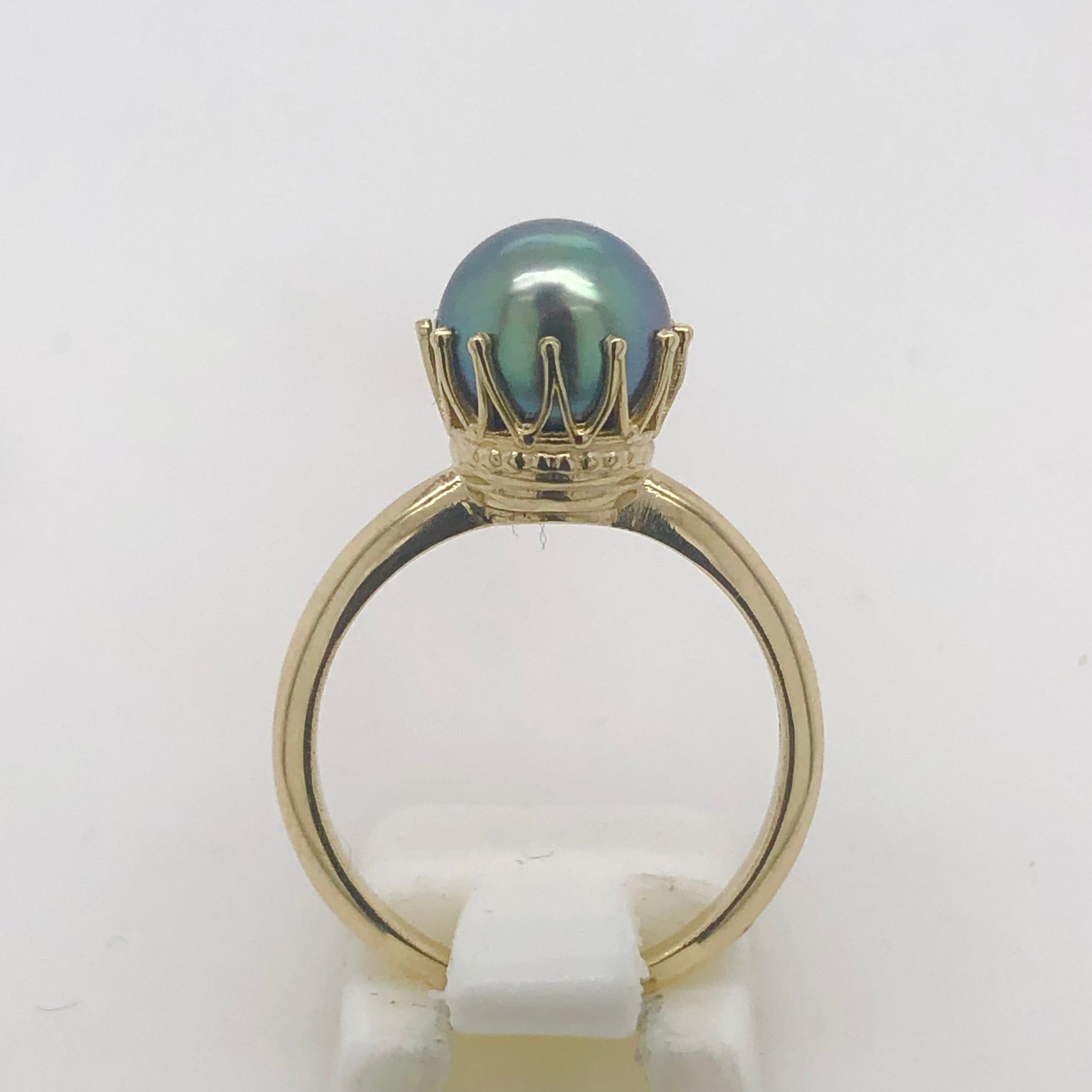 9ct Yellow Gold 8.5-9.0mm Tahitian Black Pearl Ring Crown Setting