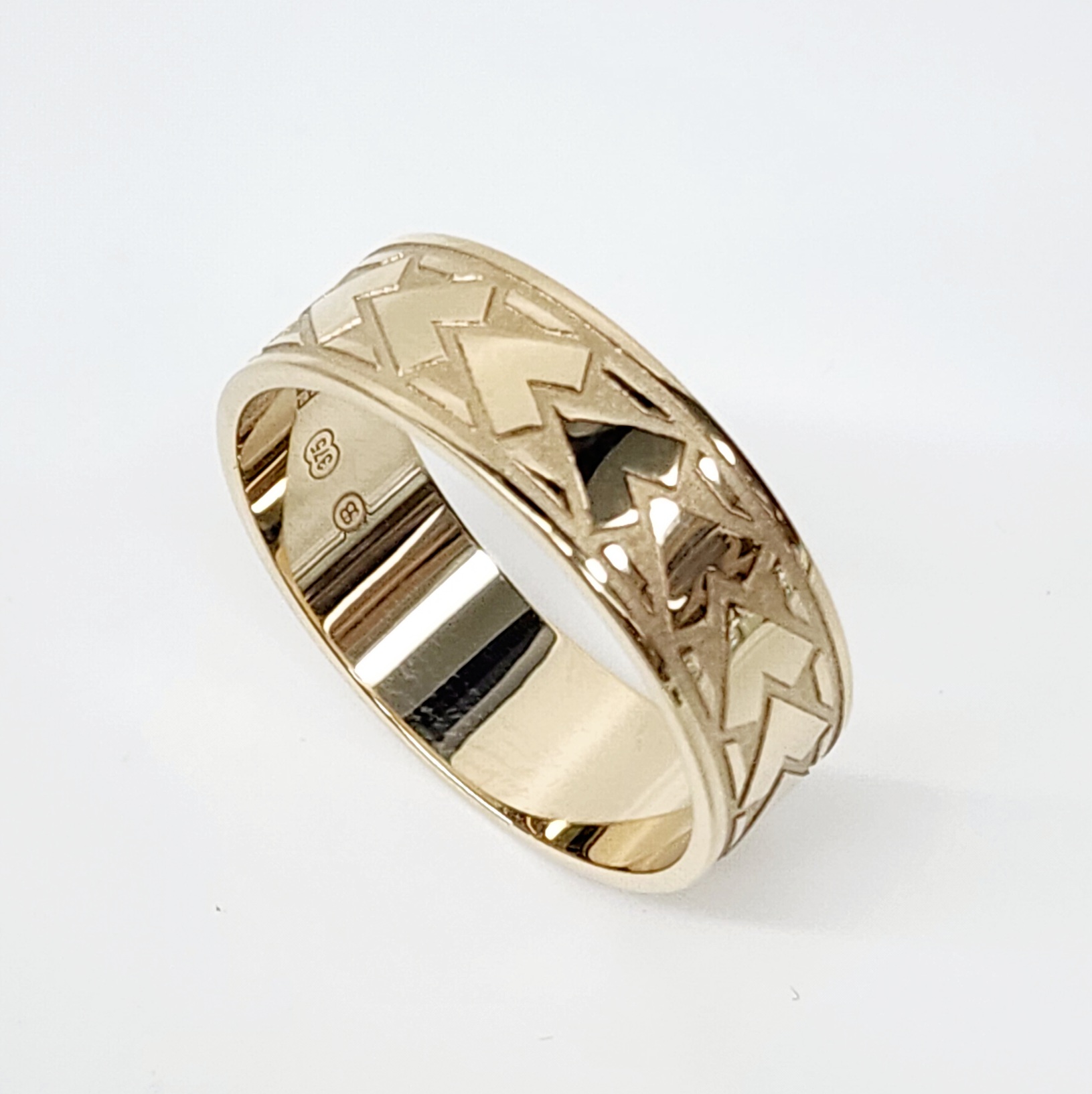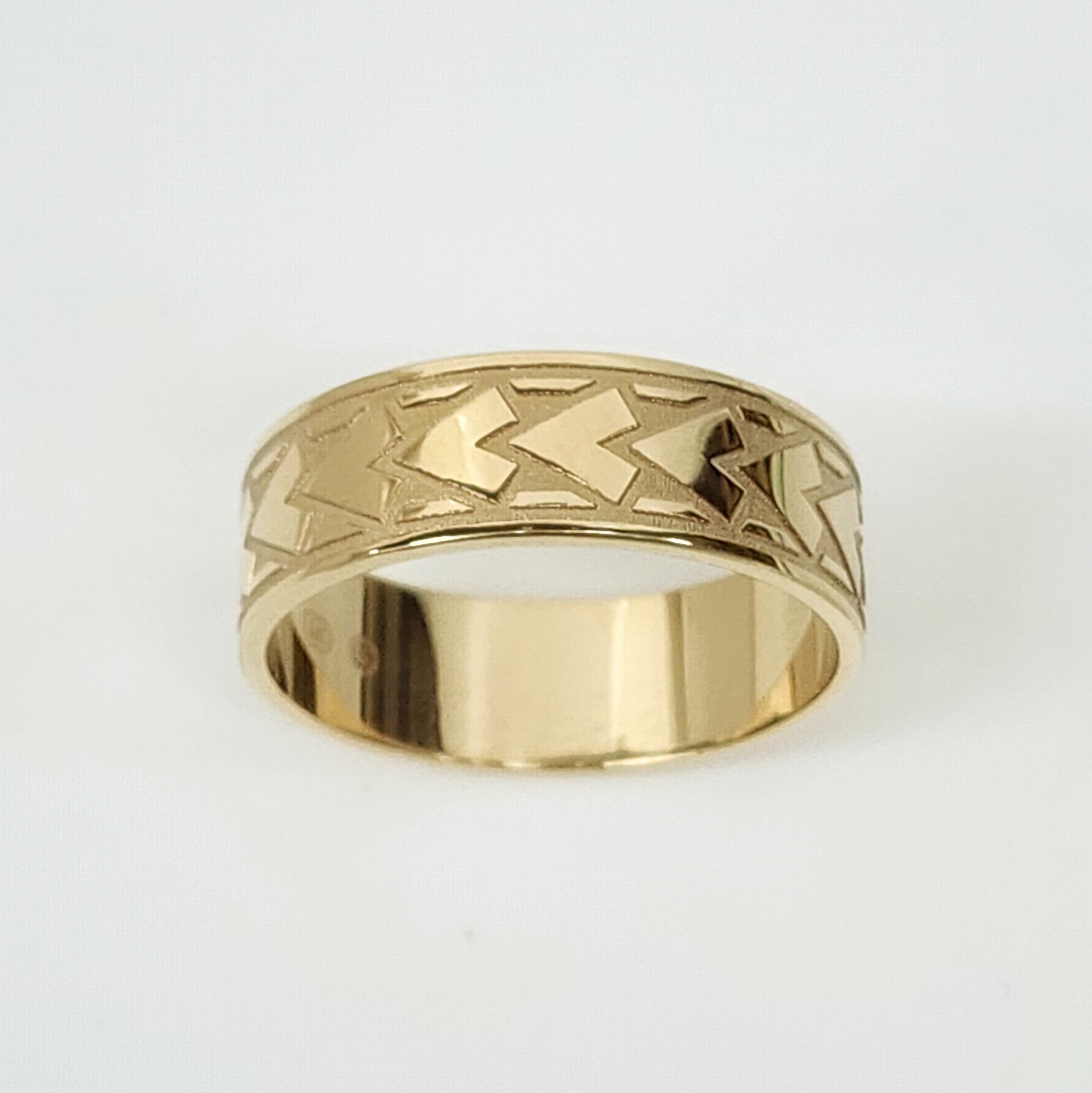 9ct Yellow Gold 8mm Wide Diamond Spear Patterned Wedding Ring