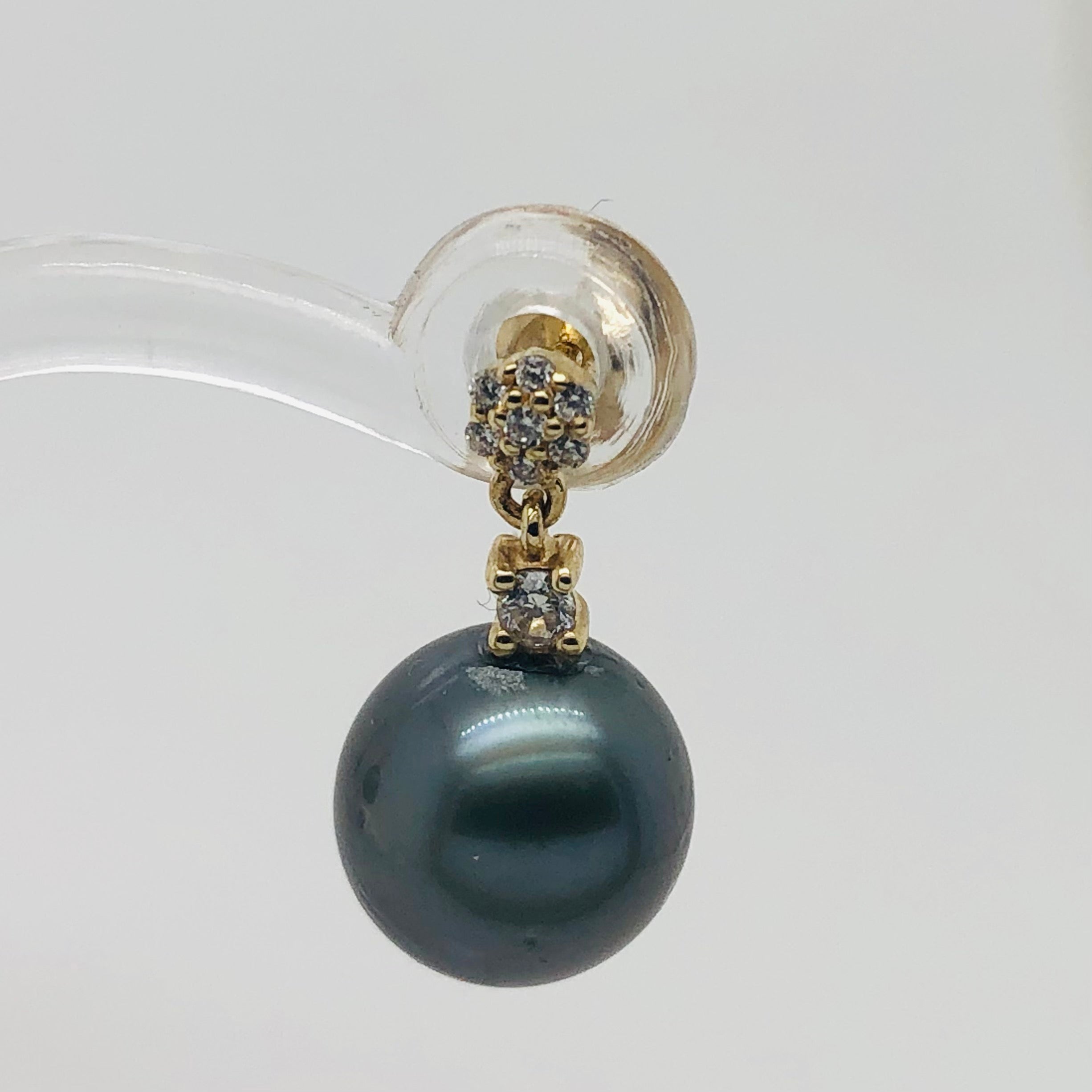 The pearl earrings are suspended from 9ct gold cubic zirconia cluster setting. The Tahitian pearls are 9.00-9.50mm perfect round with high luster. The total drop of the earrings are 17mm.
