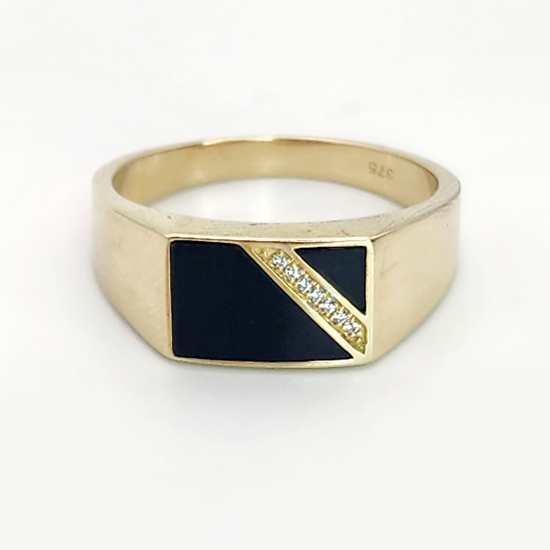 9ct Yellow Gold Black ONYX and Cubic Zirconia Ring