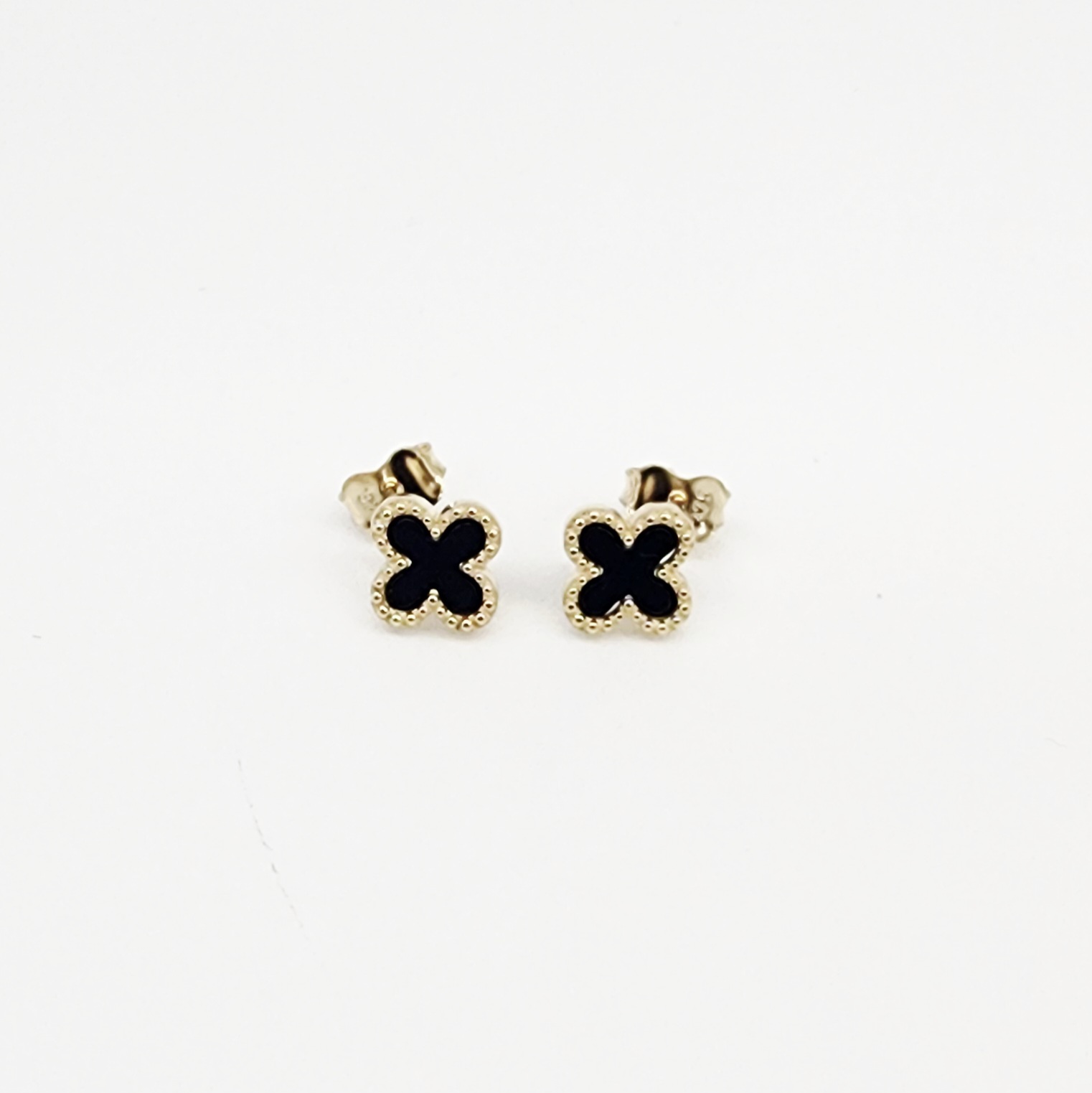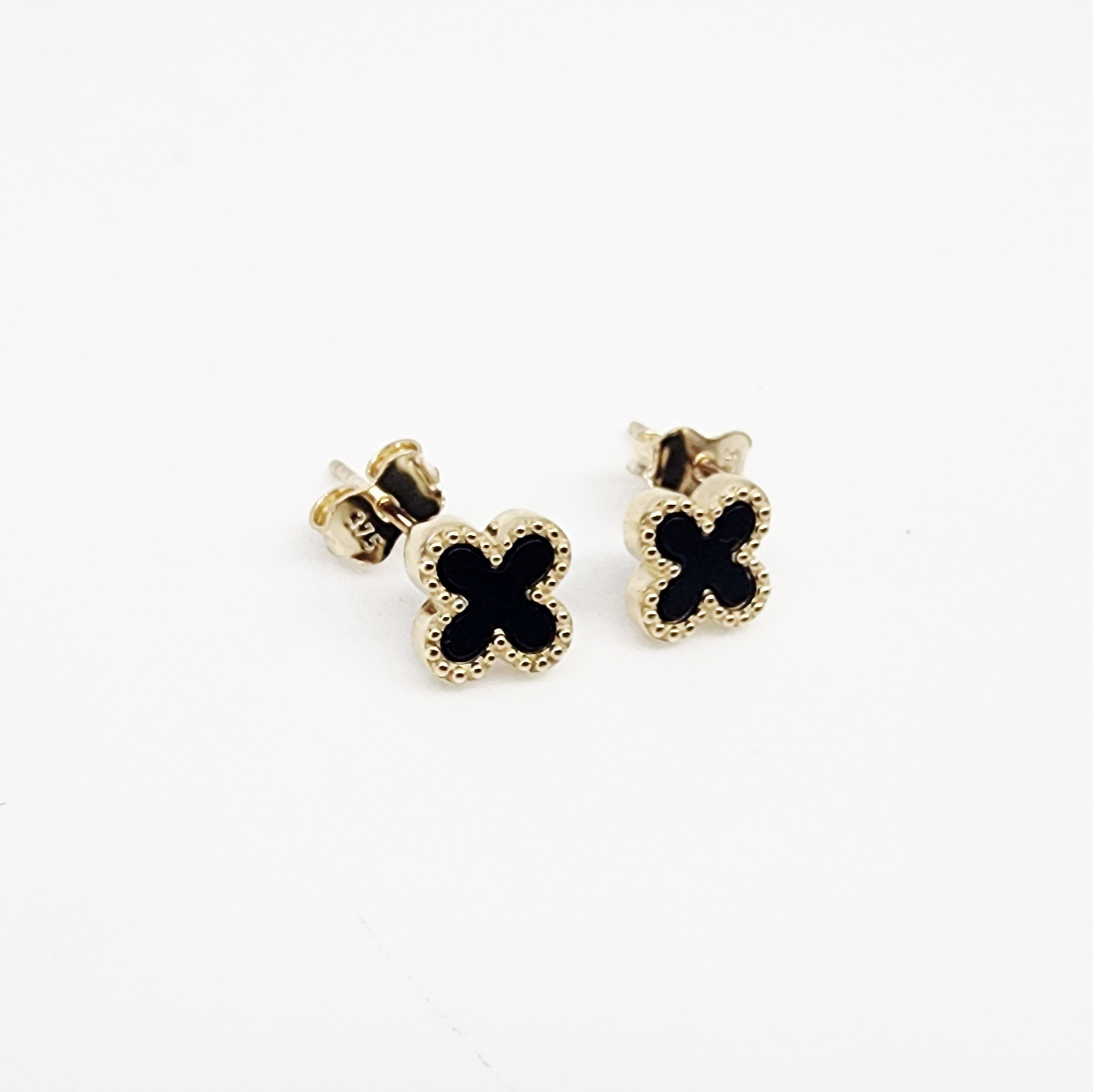 9ct Yellow Gold Black Onyx Clover Stud Earrings – 9YE0755OX