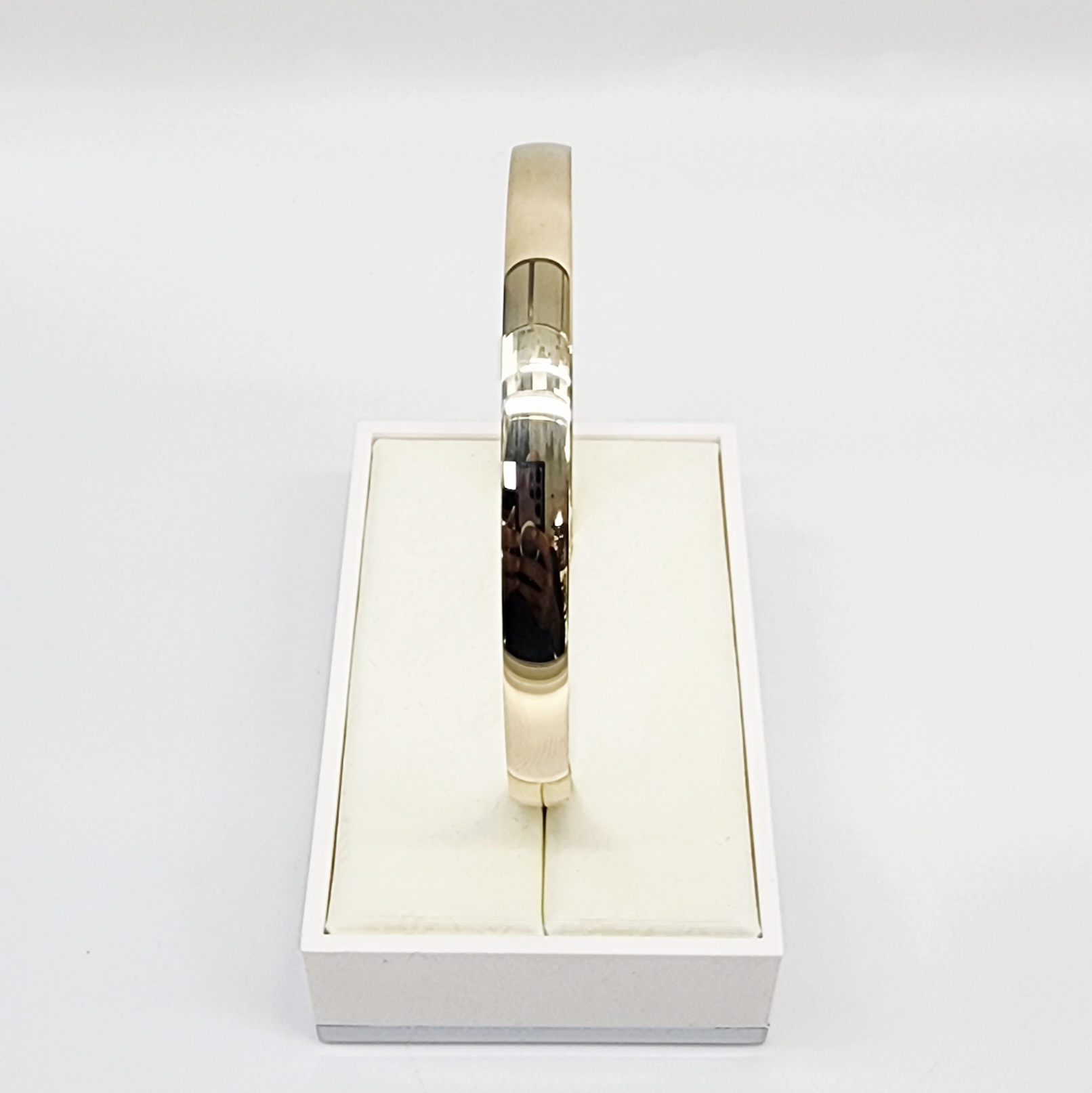 Designed with a wide 6mm profile, this bangle delivers strong visual impact while maintaining exceptional comfort. The carefully engineered comfort curve design features softly contoured edges and a smooth interior, allowing the bangle to sit comfortably on the wrist despite its substantial width.