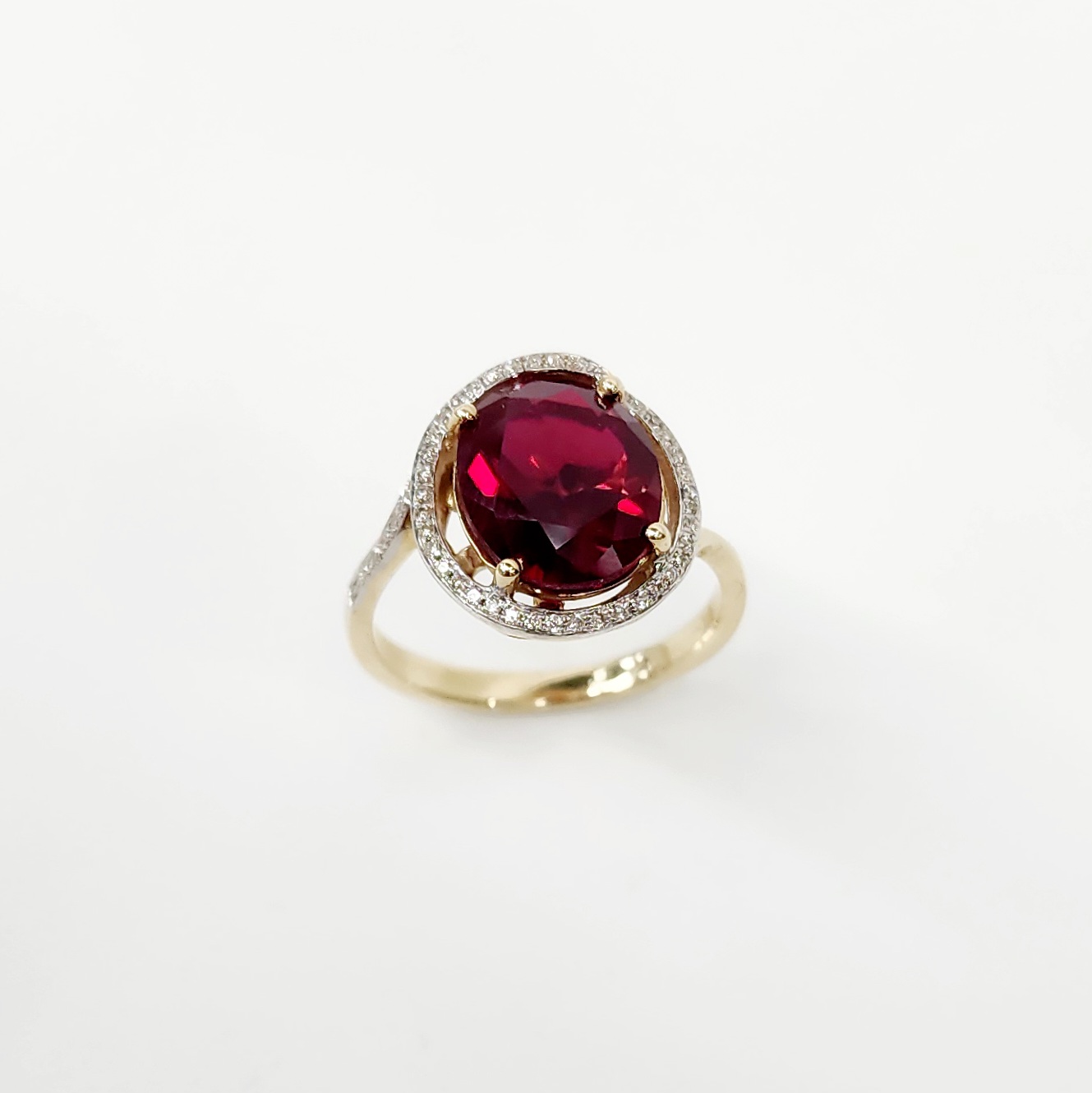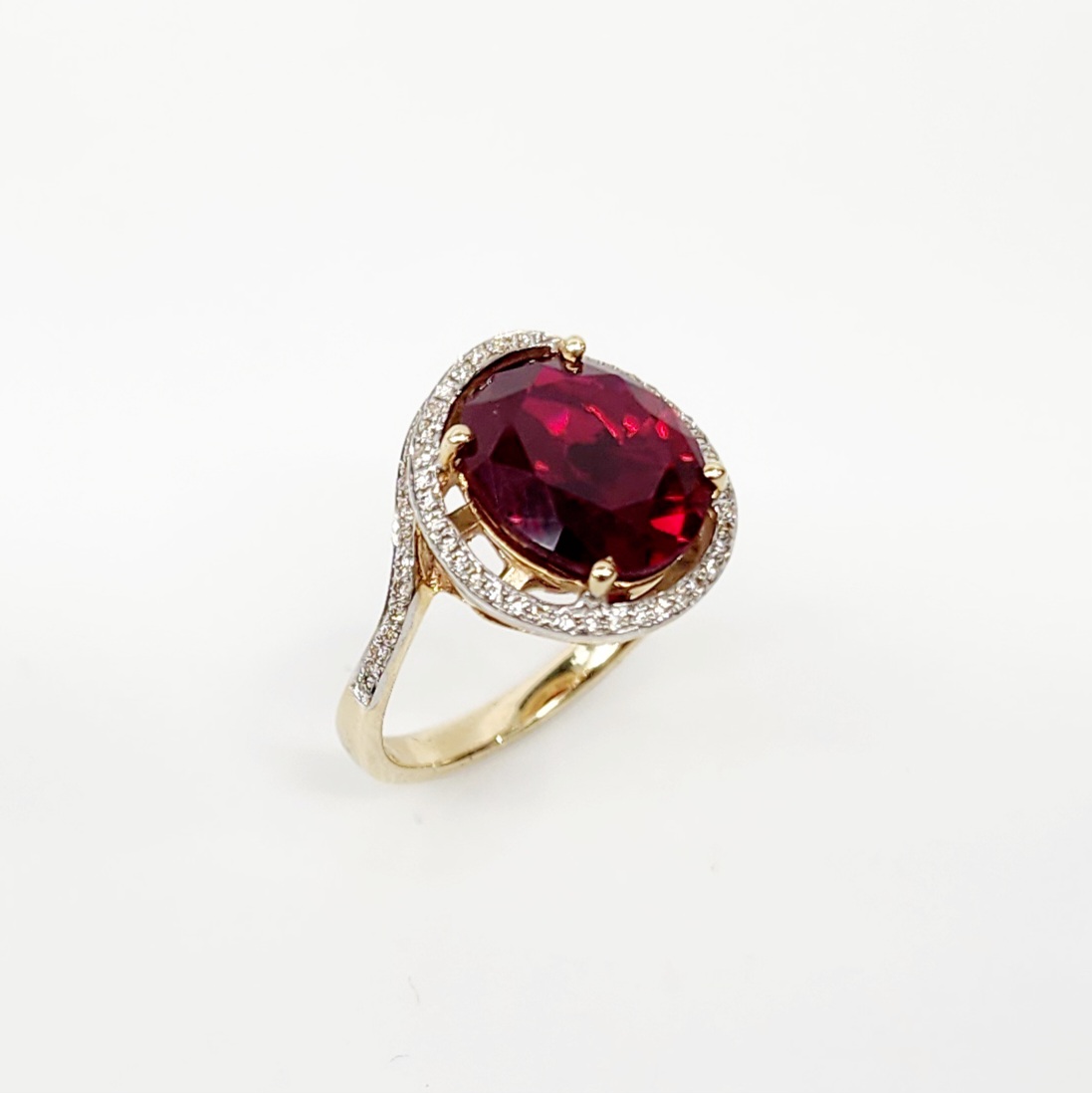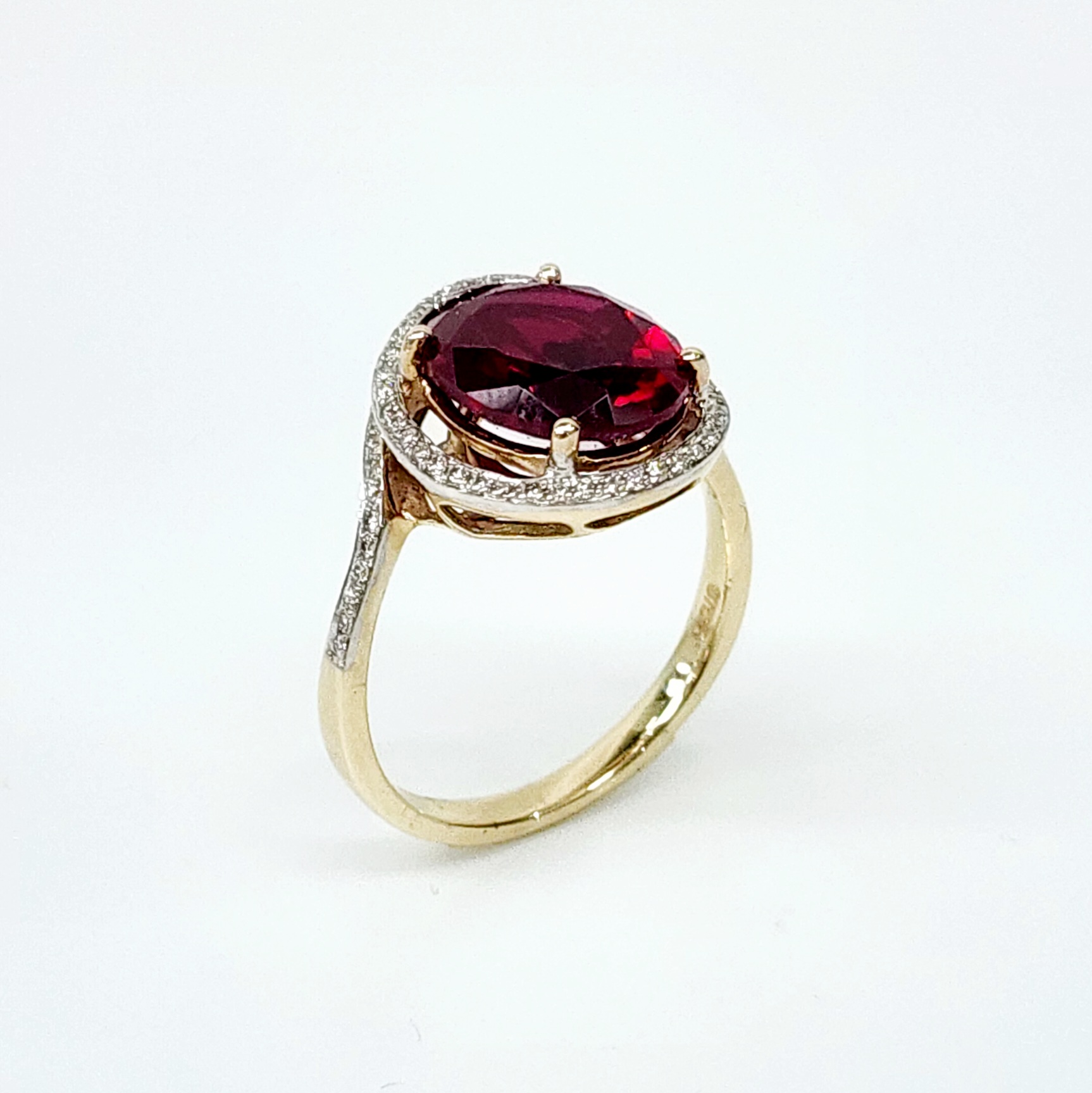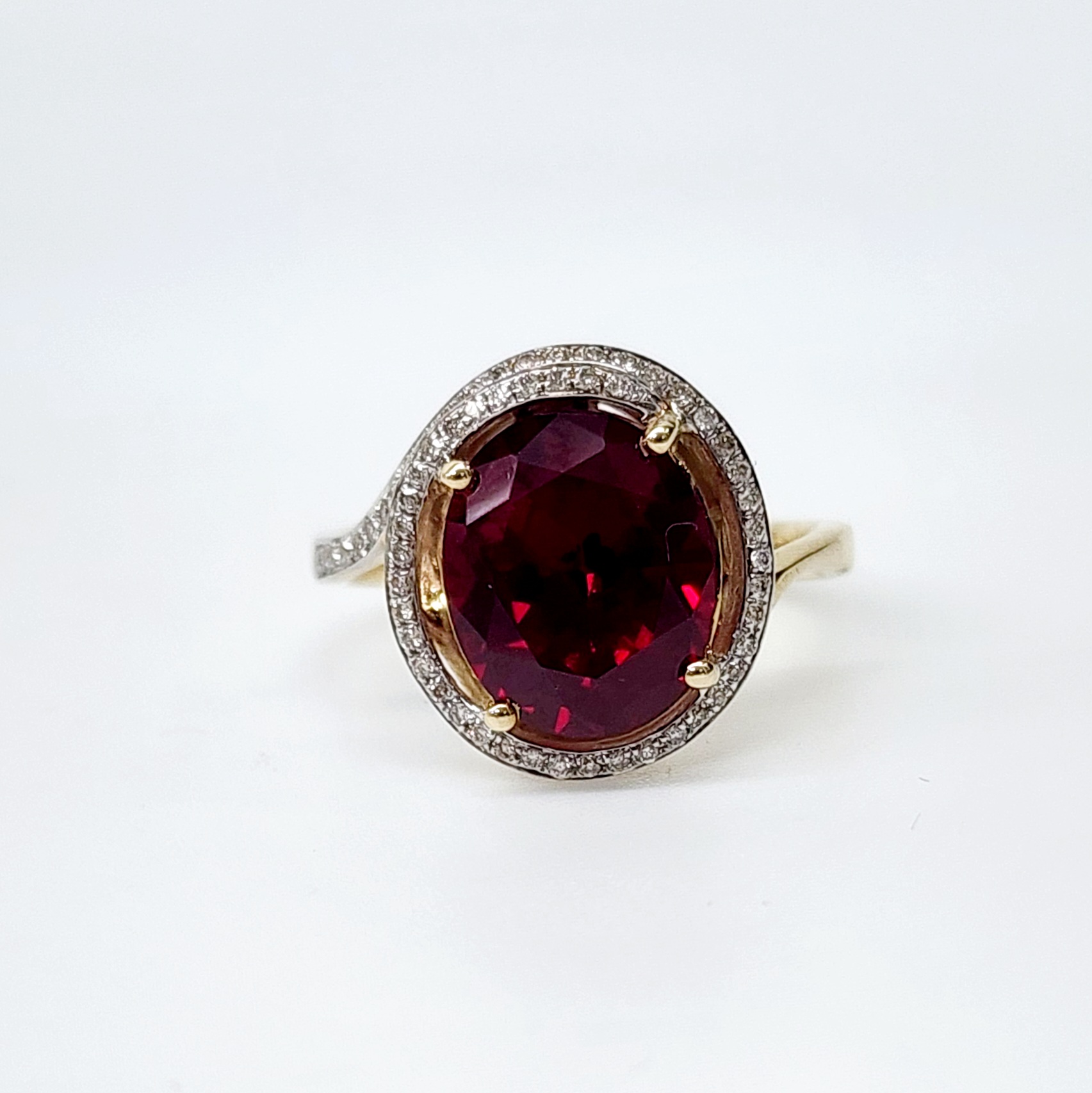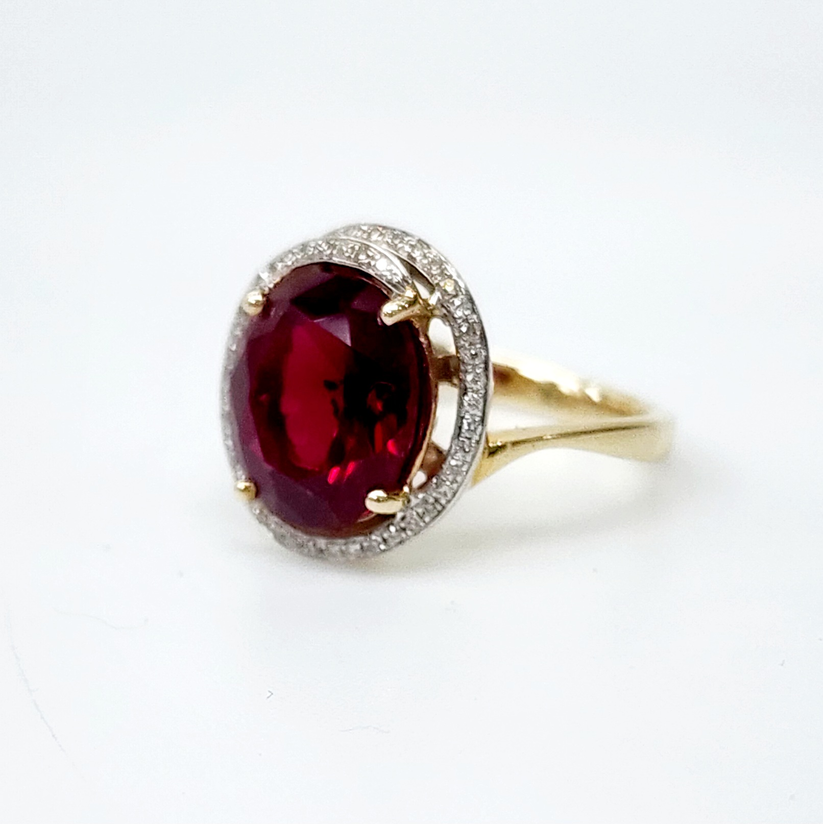 9ct Yellow Gold Created Oval Ruby with Natural Diamonds Ring