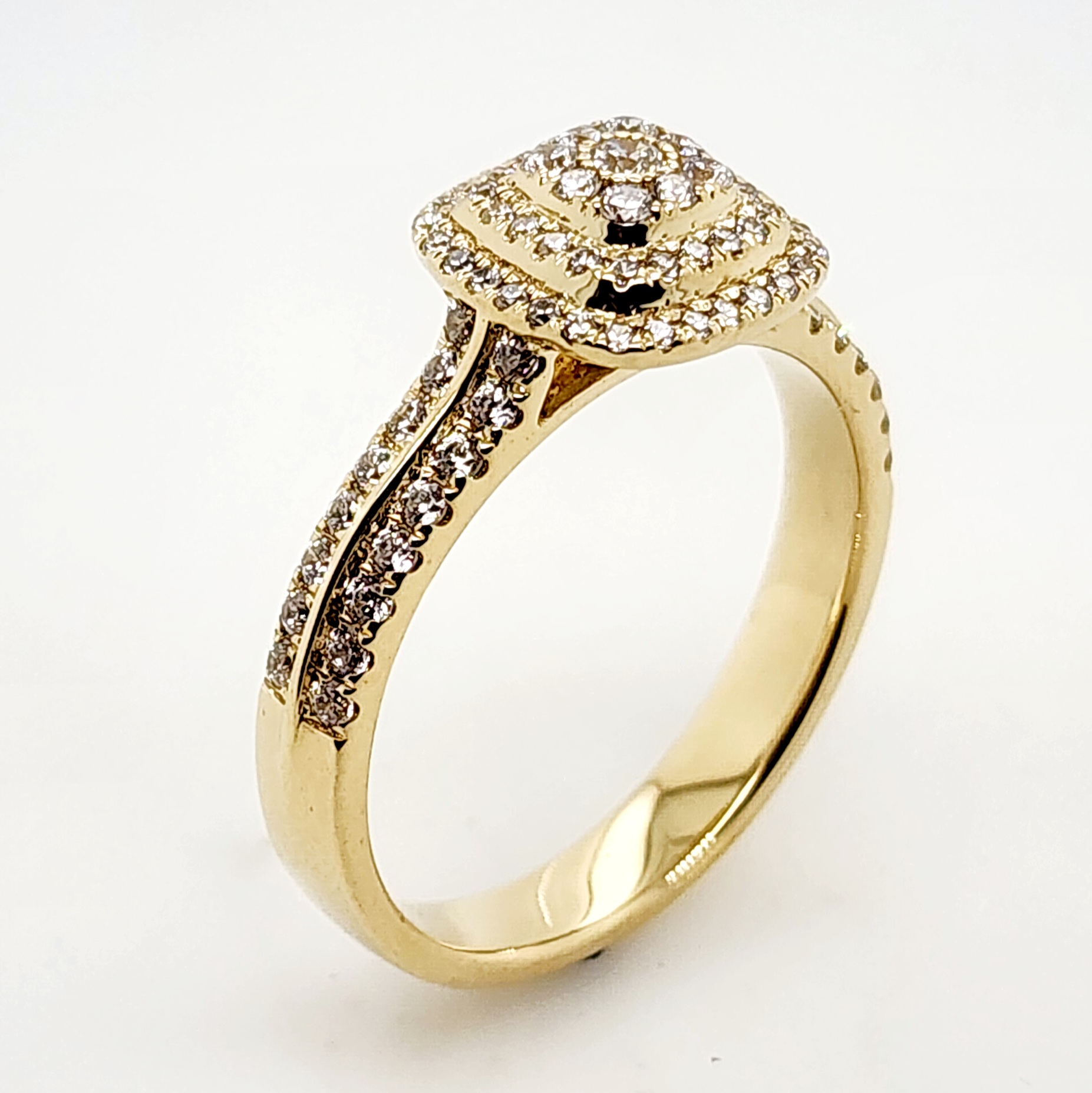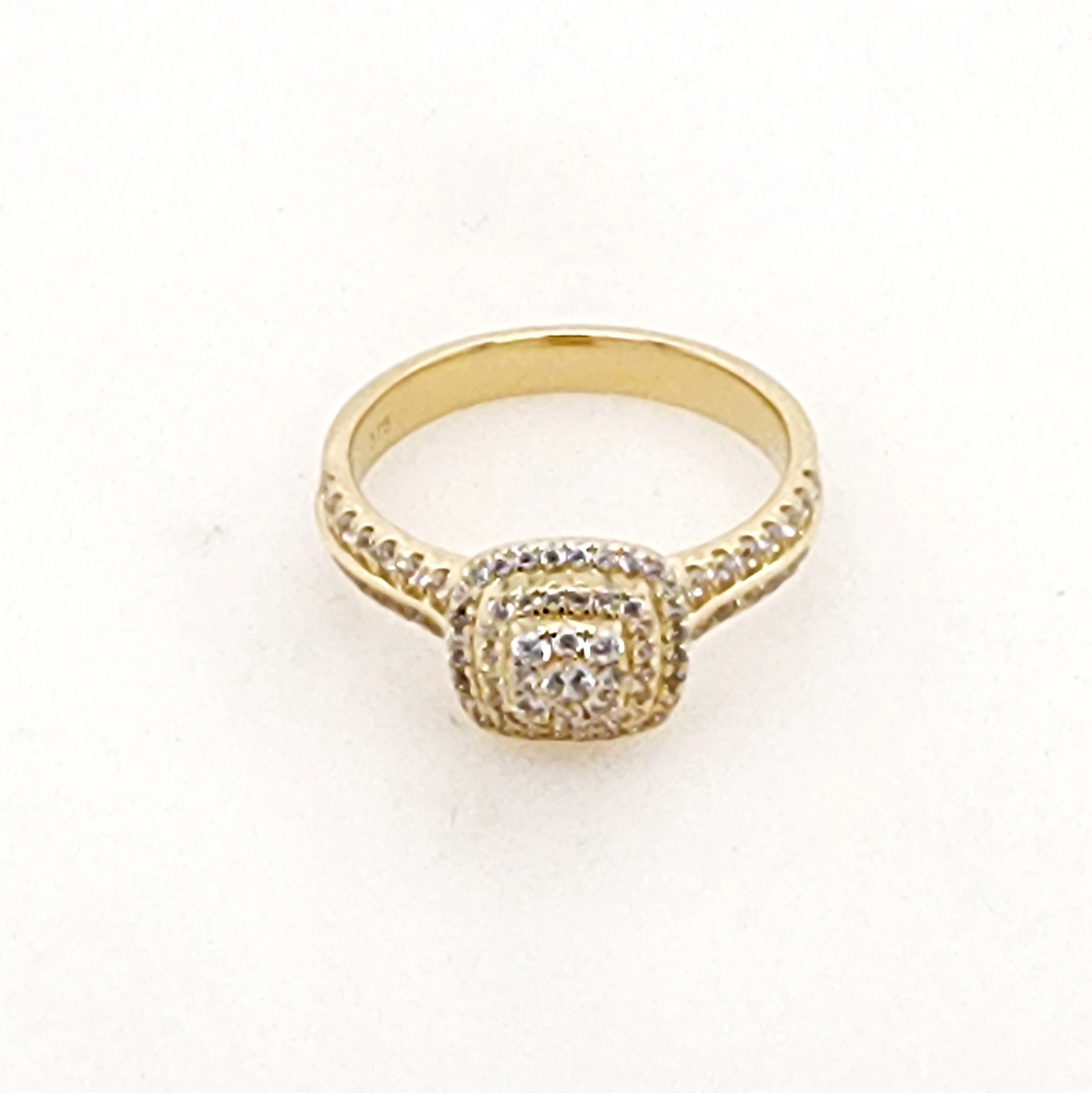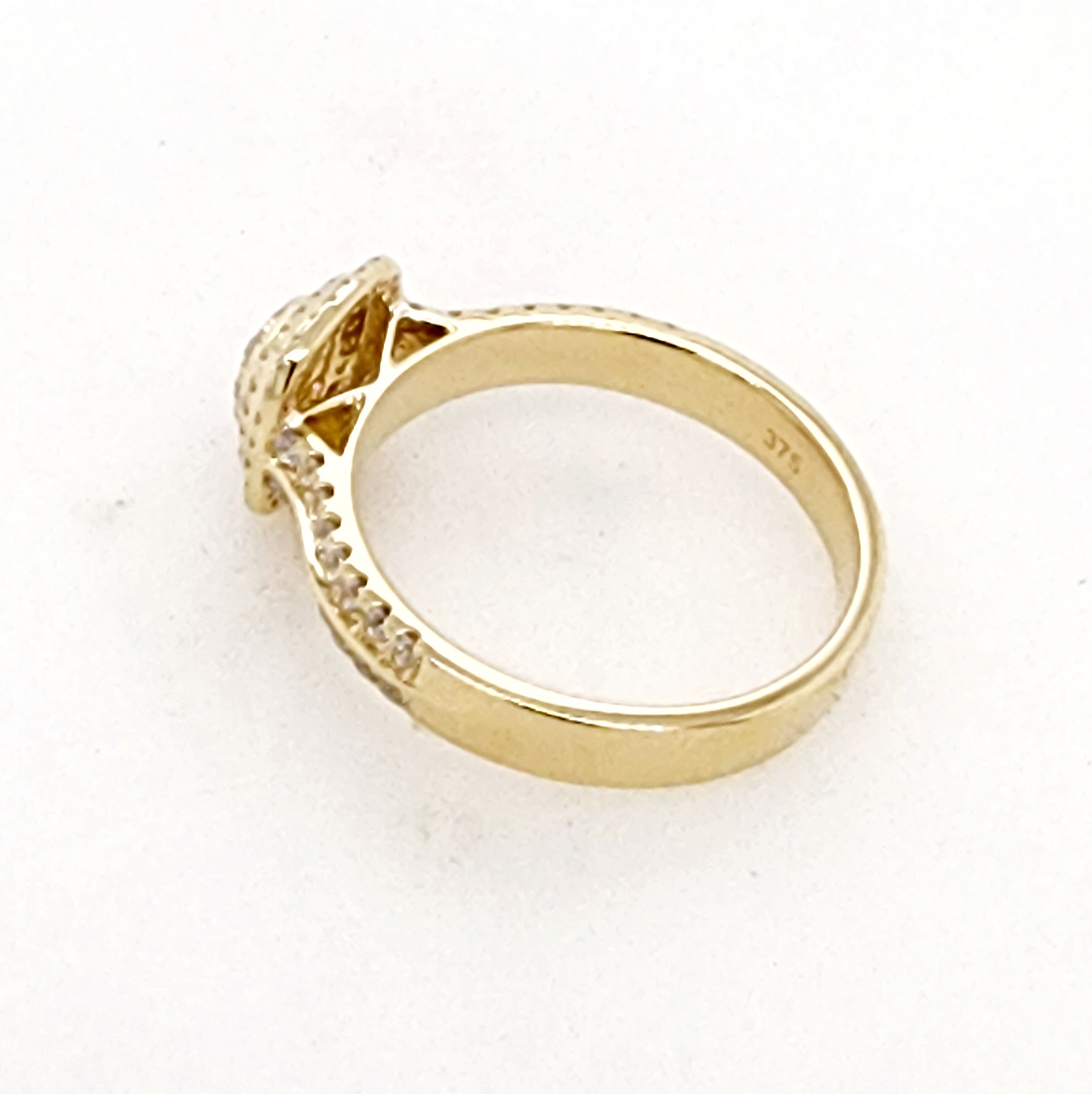 9ct Yellow Gold Cubic Zirconia Cluster Double Halo Ring