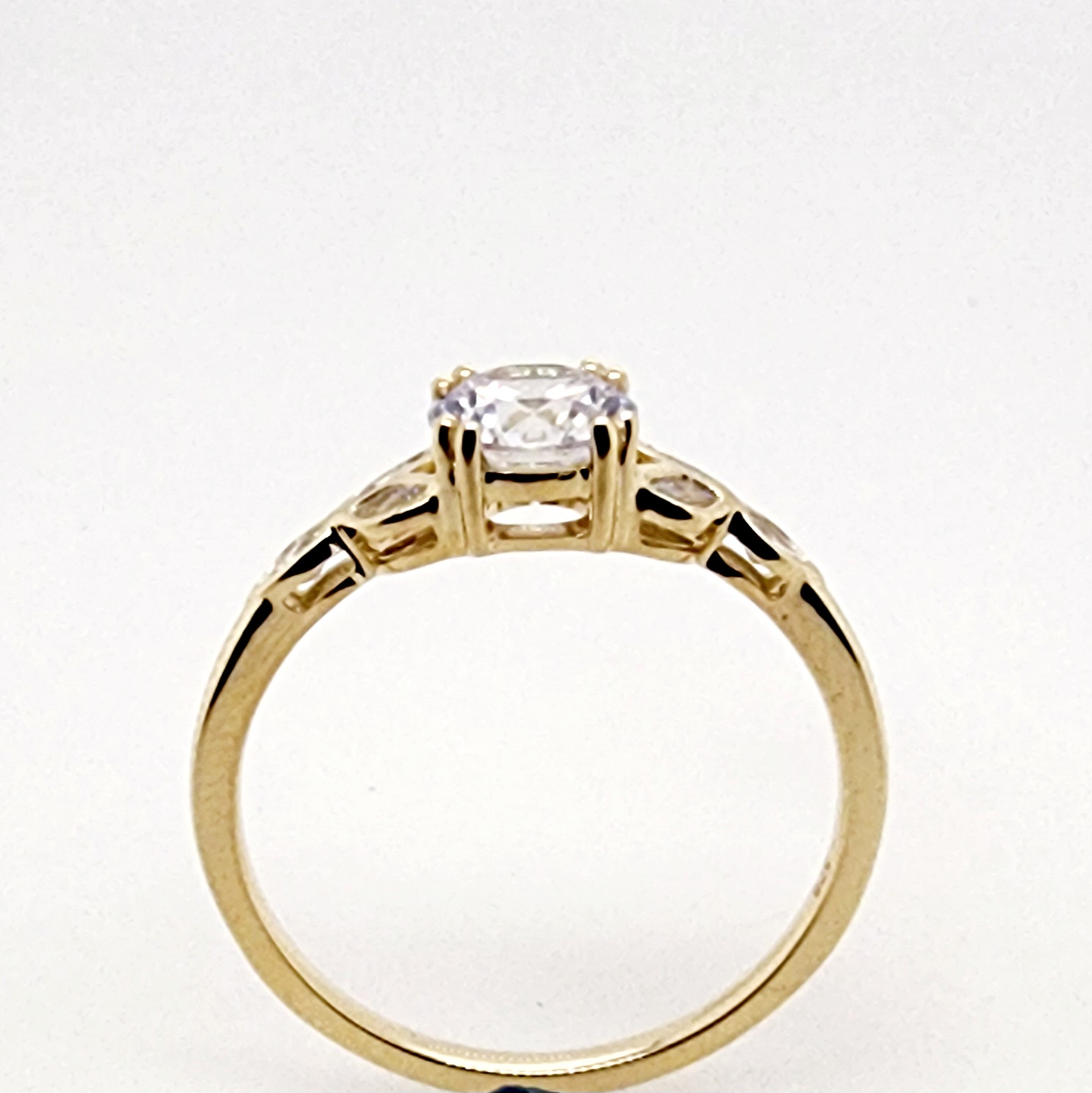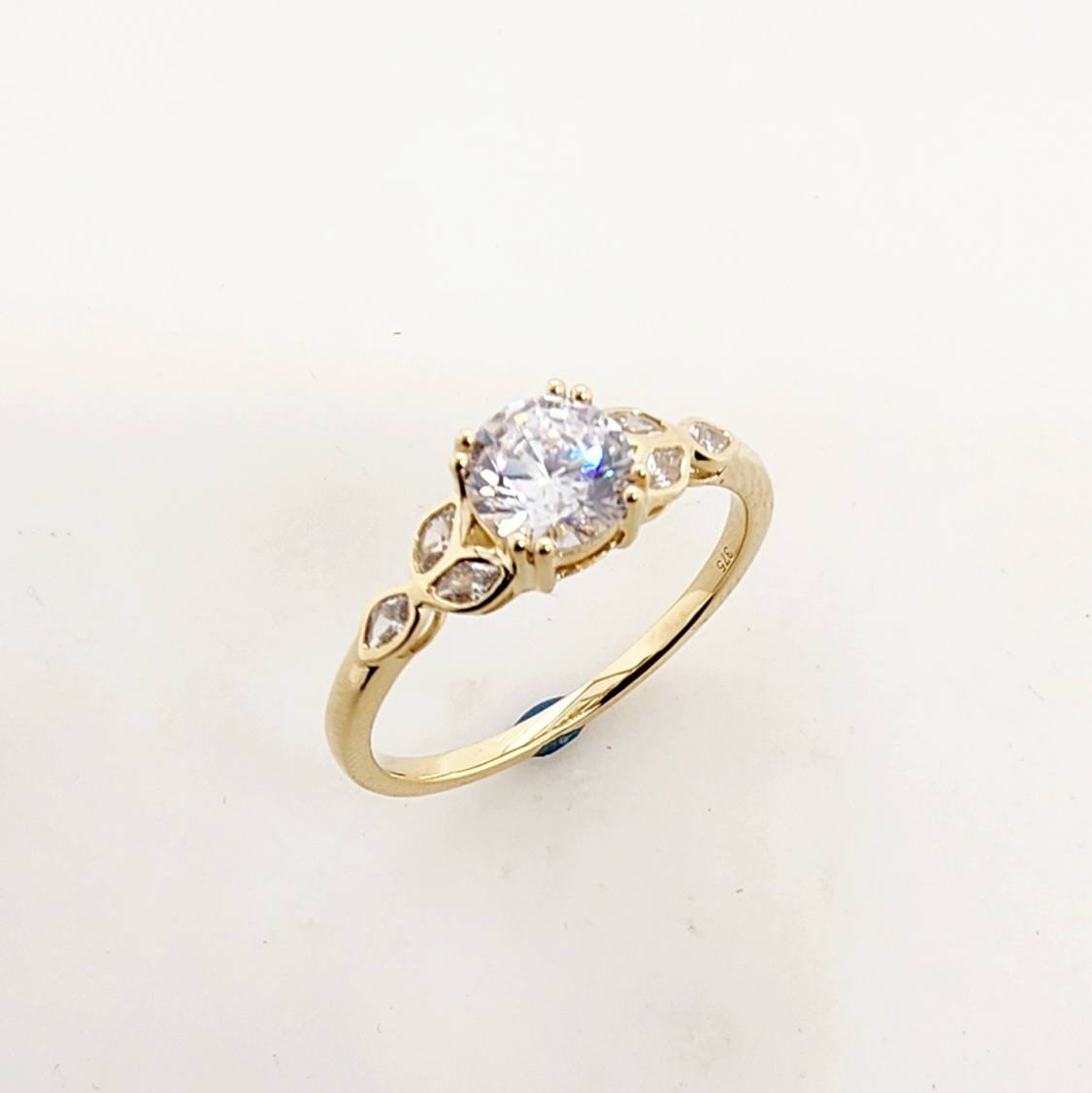 9ct Yellow Gold Cubic Zirconiac Engagement Ring Vintage Petal Vine Leaf Band