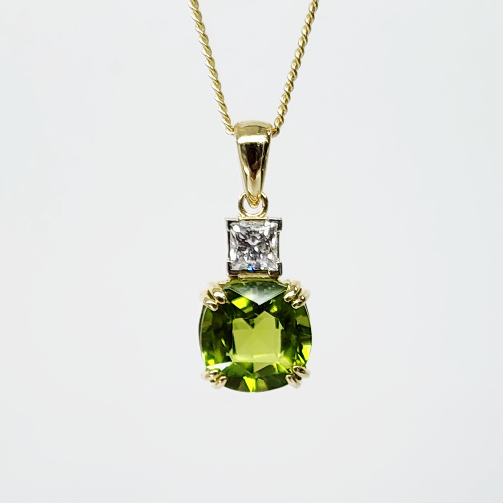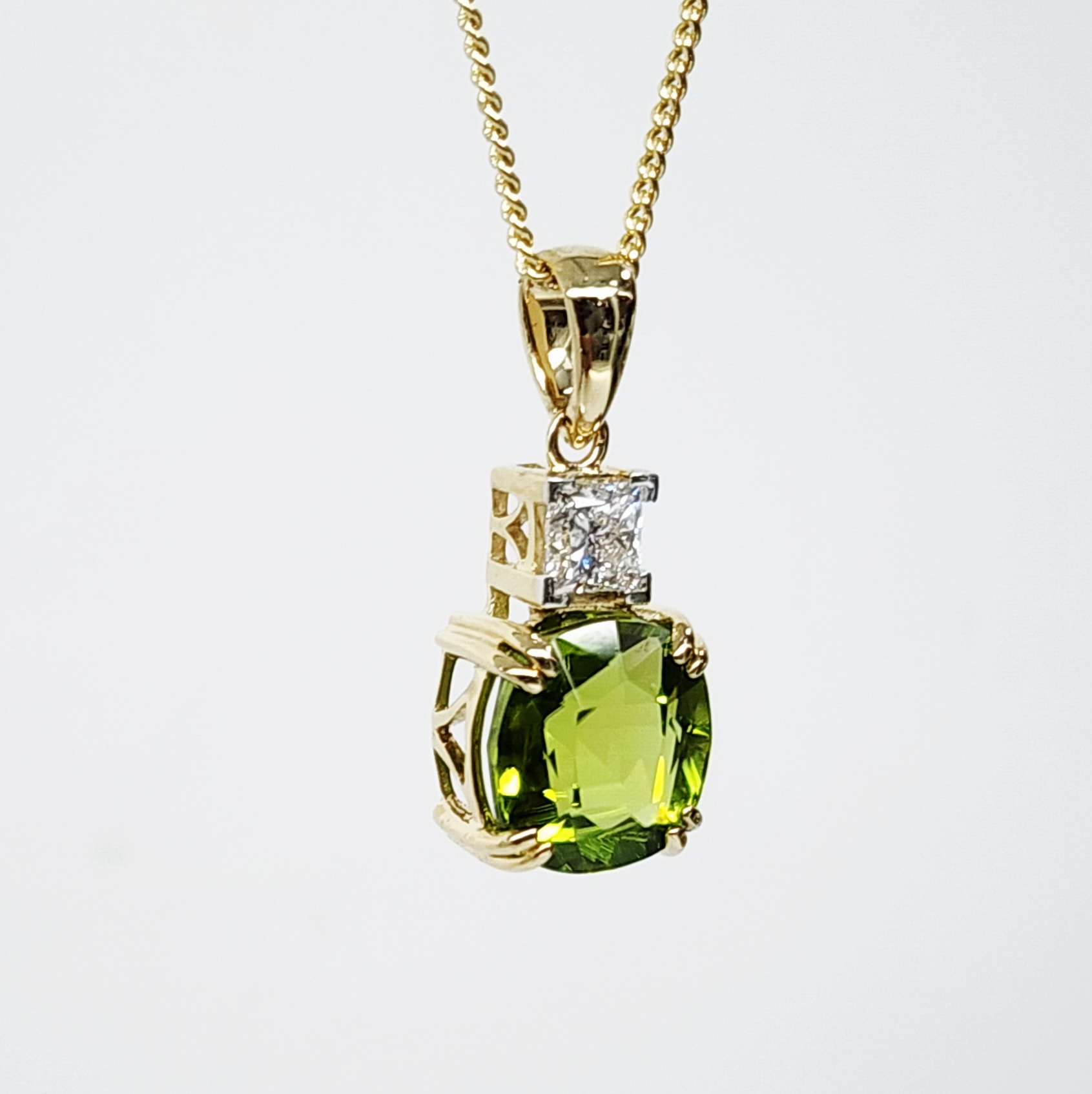9ct Yellow Gold Cushion Cut Peridot and 0.34ct Princess Cut Lab Grown Diamond Pendant – D/A472PD-PERLGD