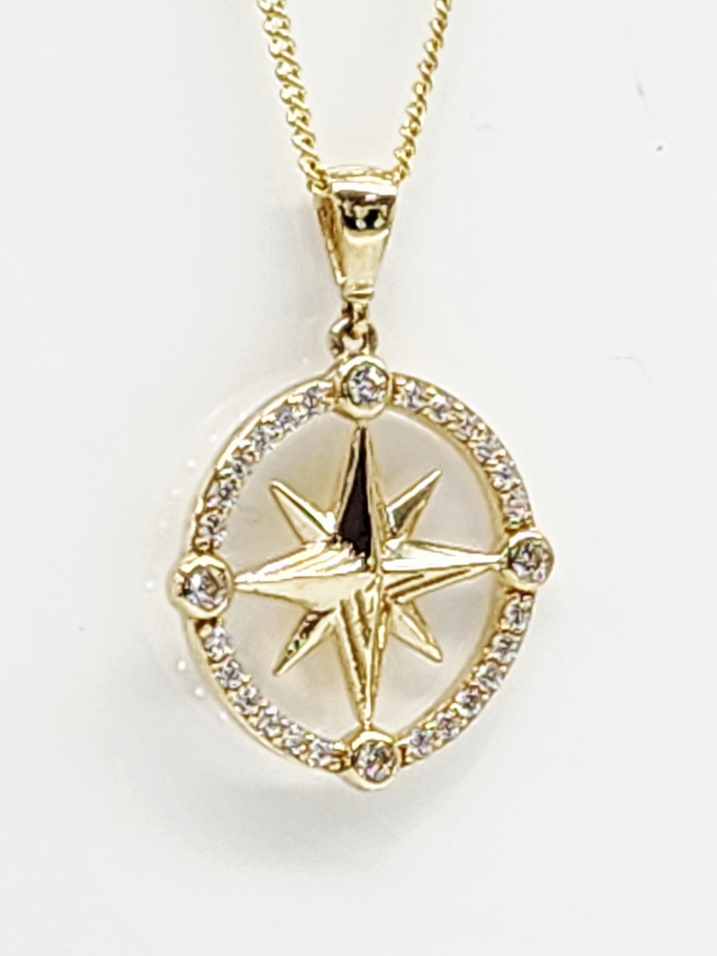 9ct Yellow Gold CZ Compass Star Pendant 18mm Round with Complimentary Display Chain – 5P0286