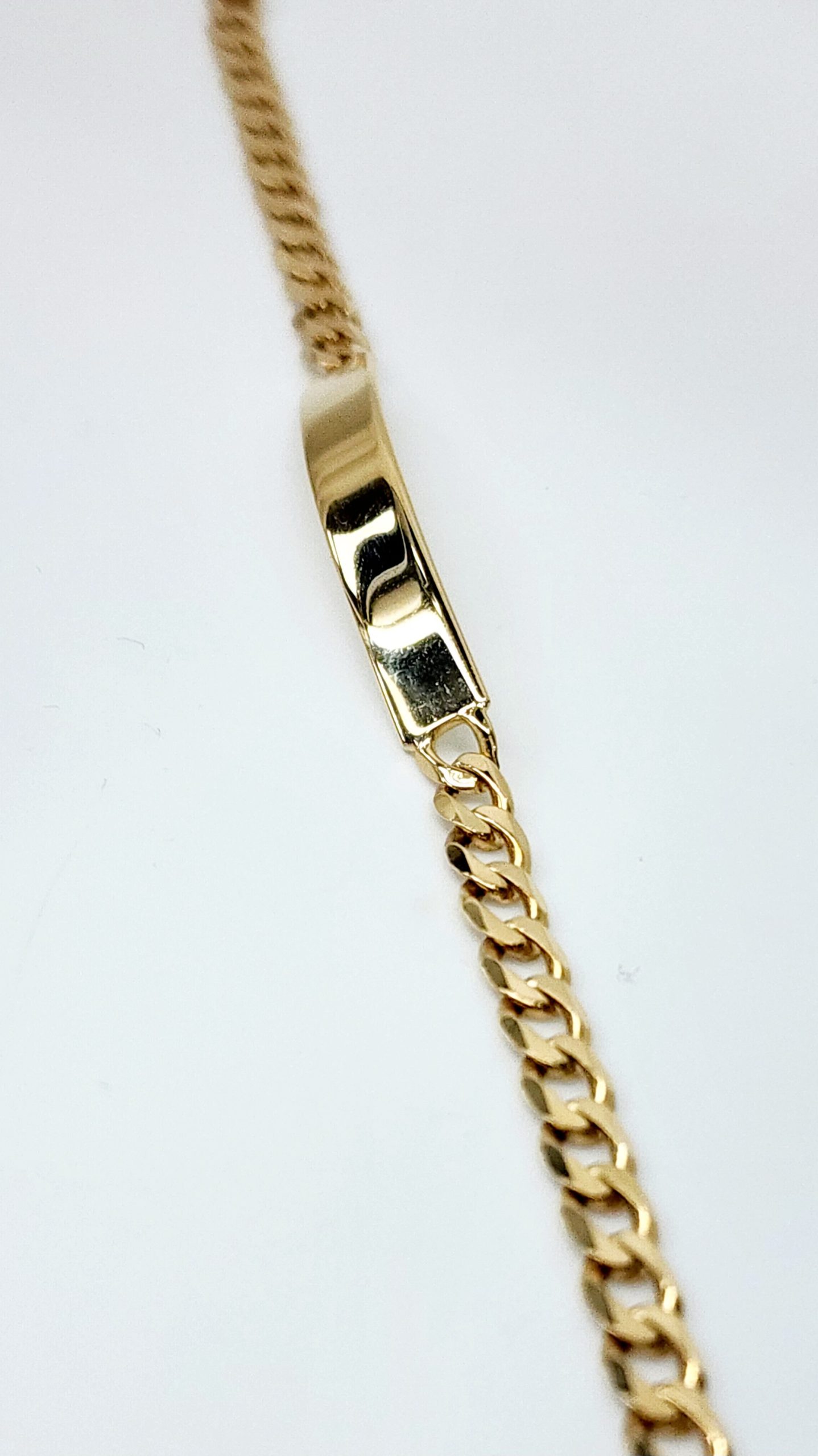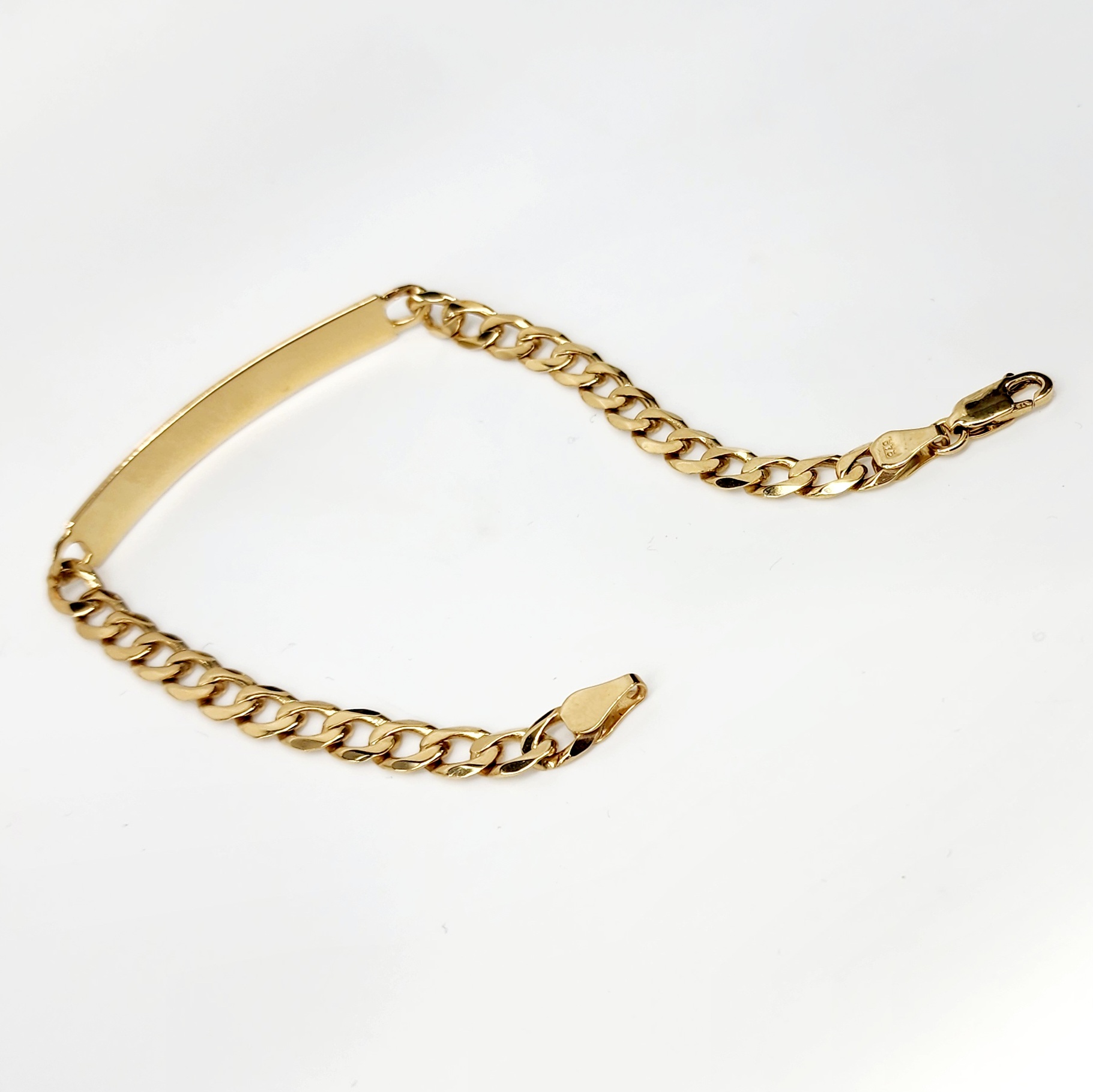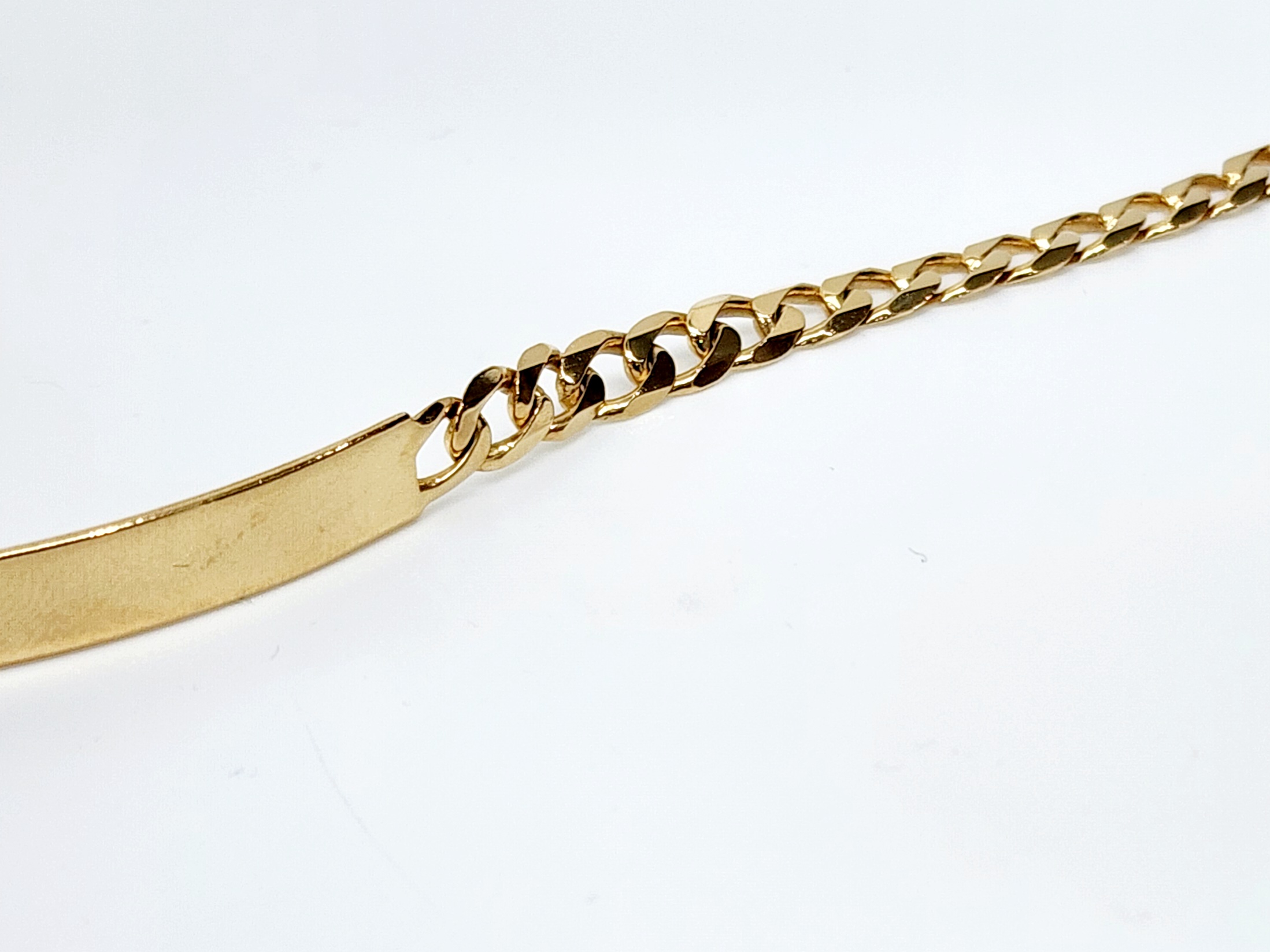 A wonderful gift to engrave your special message, this 9ct yellow gold curbnlink bracelet features a plain ID plate in the centre.