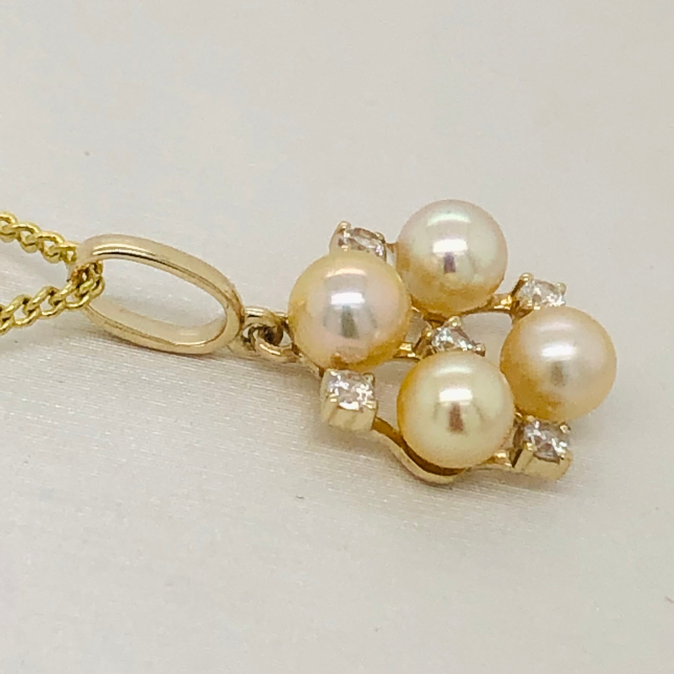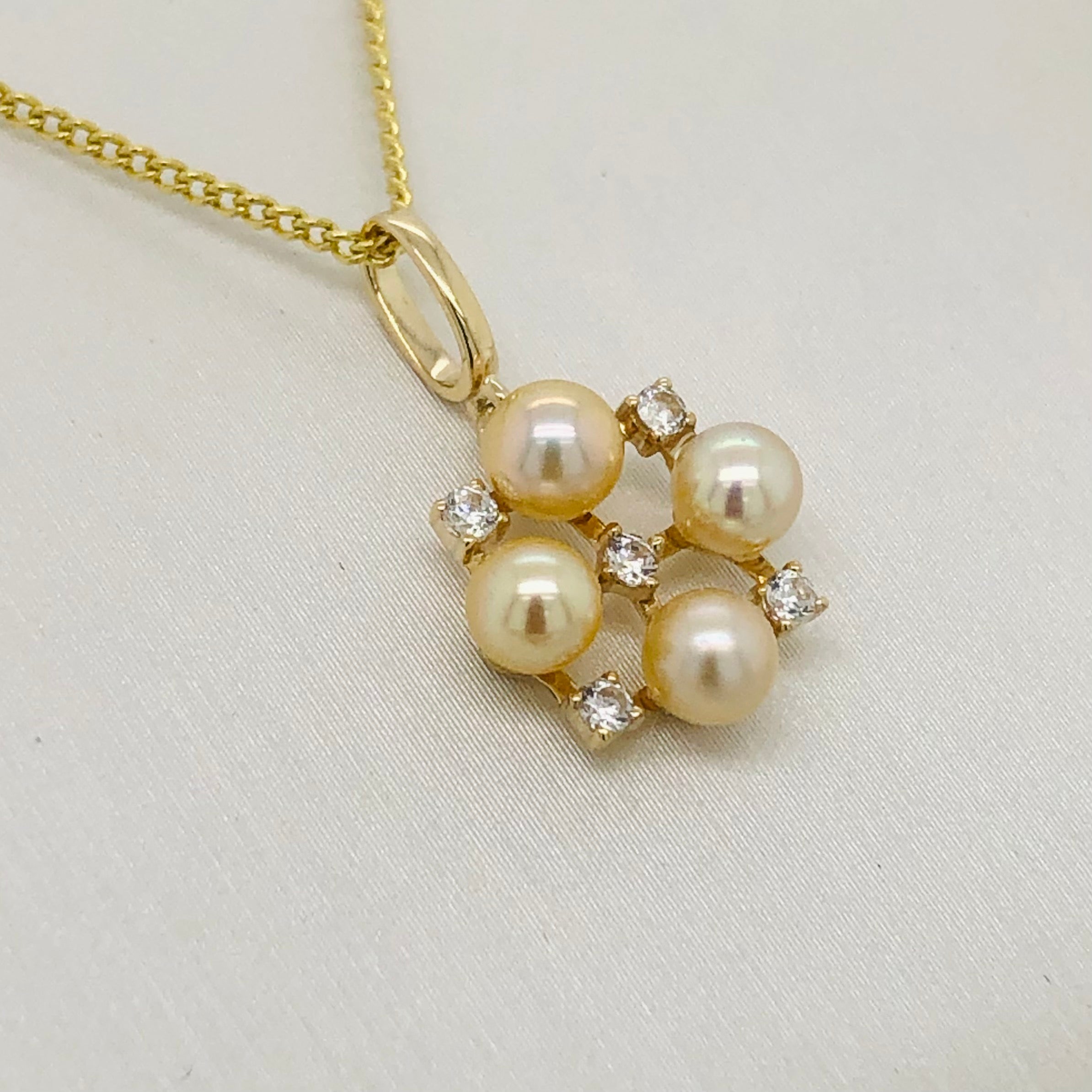 9ct Yellow Gold Diamond Pendant With Four 4.00-4.50mm Round PEPE Pearls