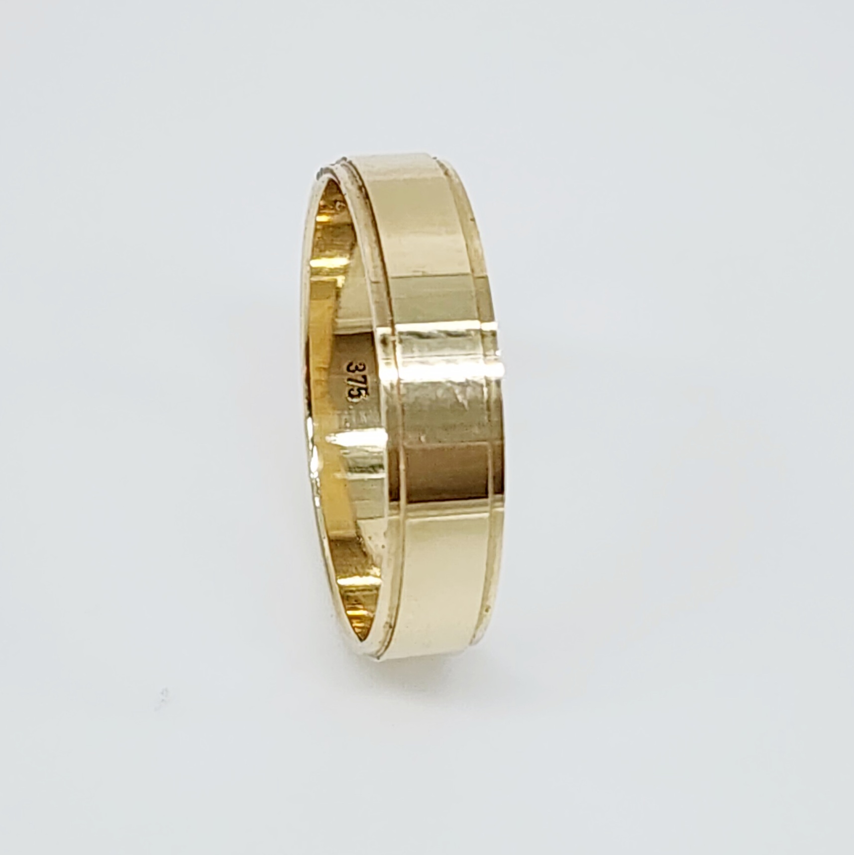 9ct Yellow Gold Gents Flat Stepped 5mm Wide Plain Wedding Band