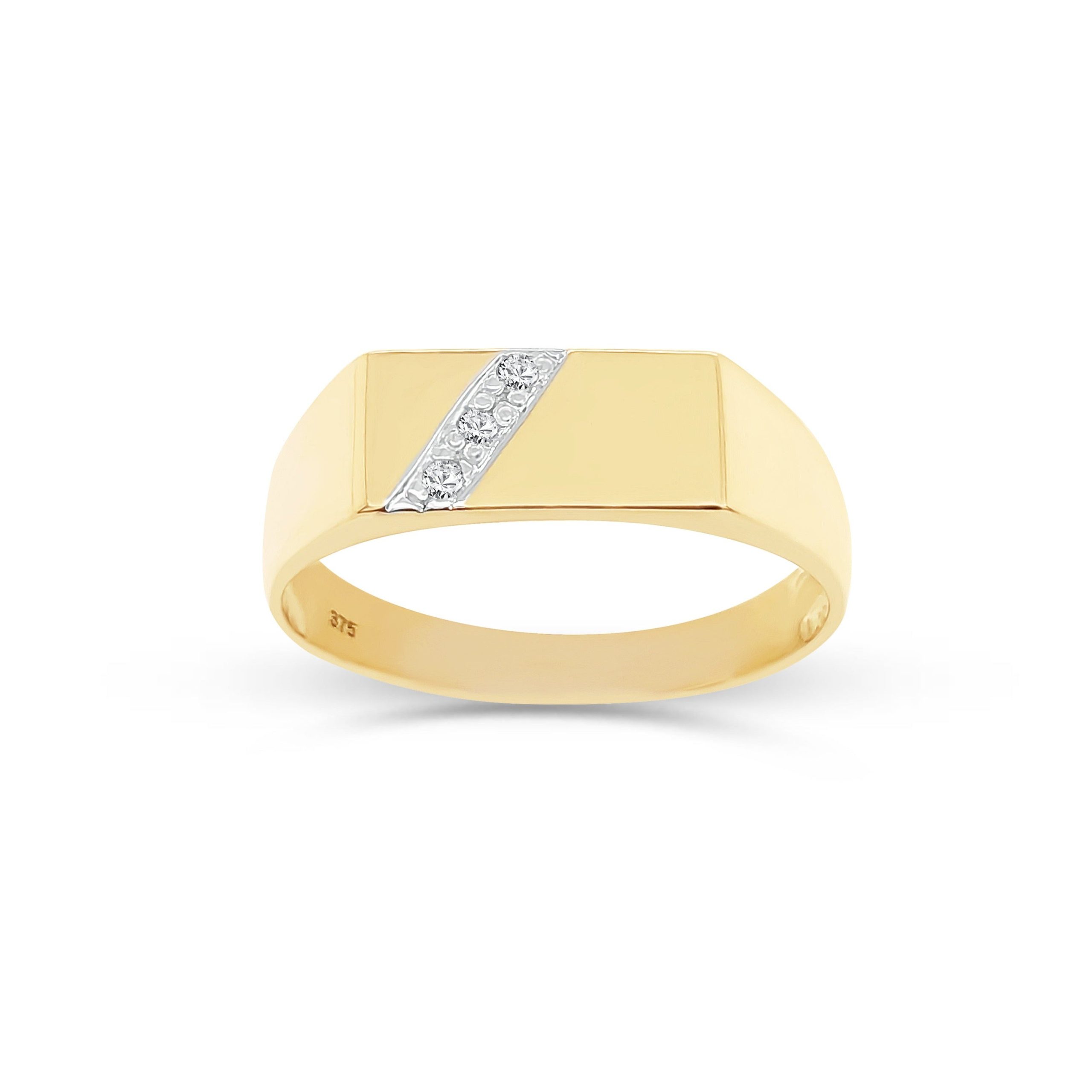 9ct Yellow Gold Gents Signet Ring with Diamond Setting – D6413