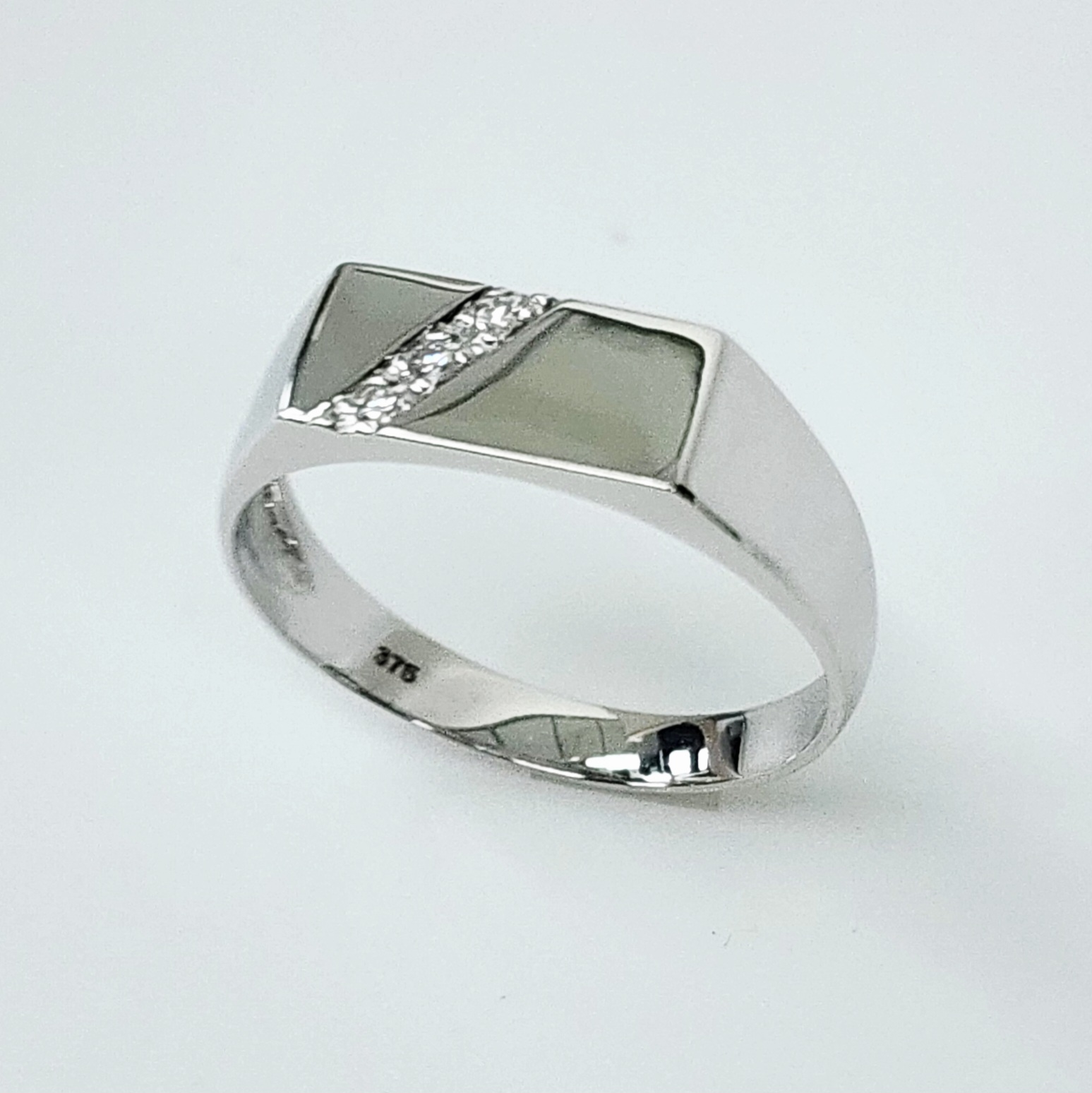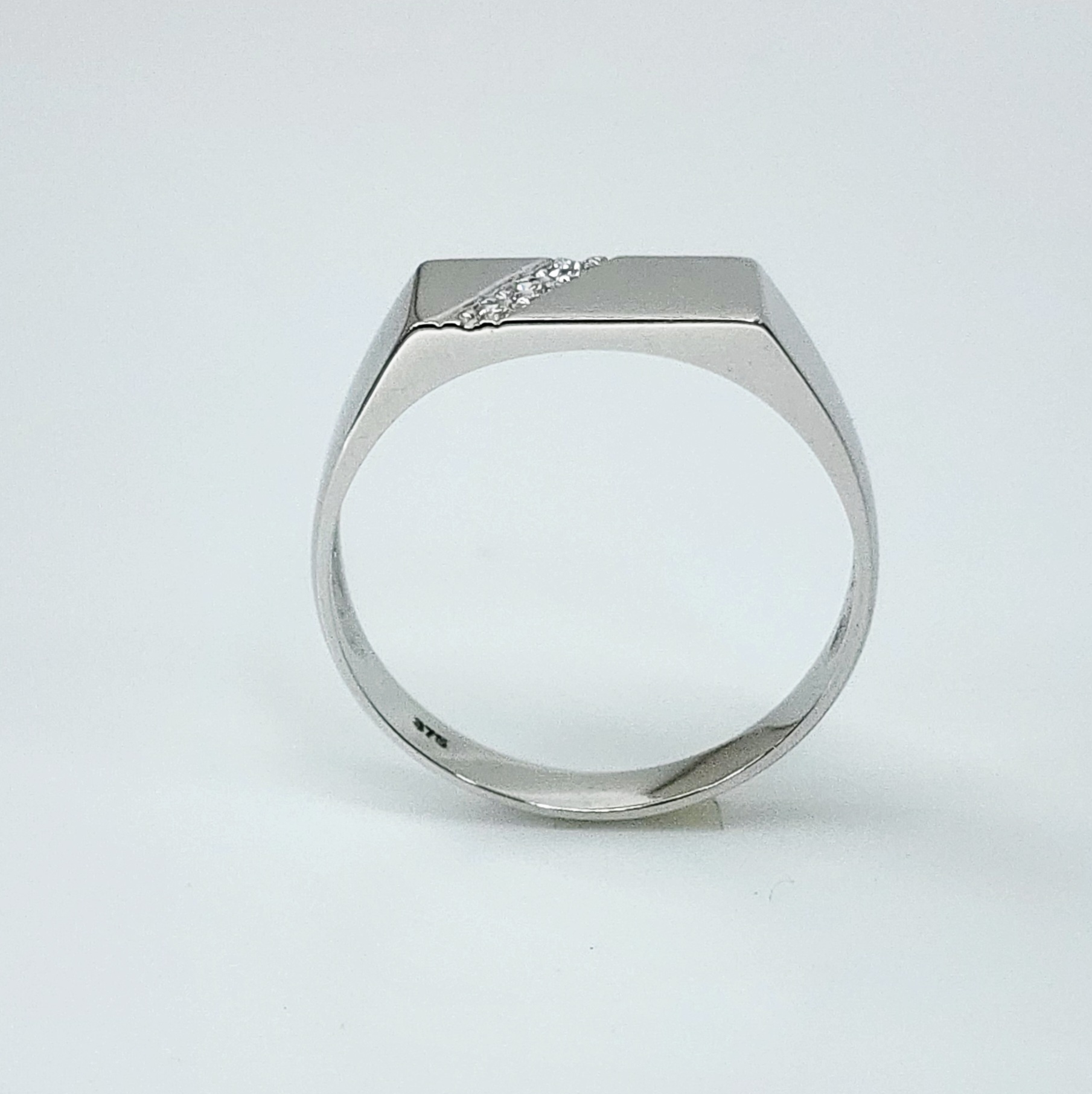 9ct White Gold Gents Signet Ring with Diamond Setting – D6413/9W
