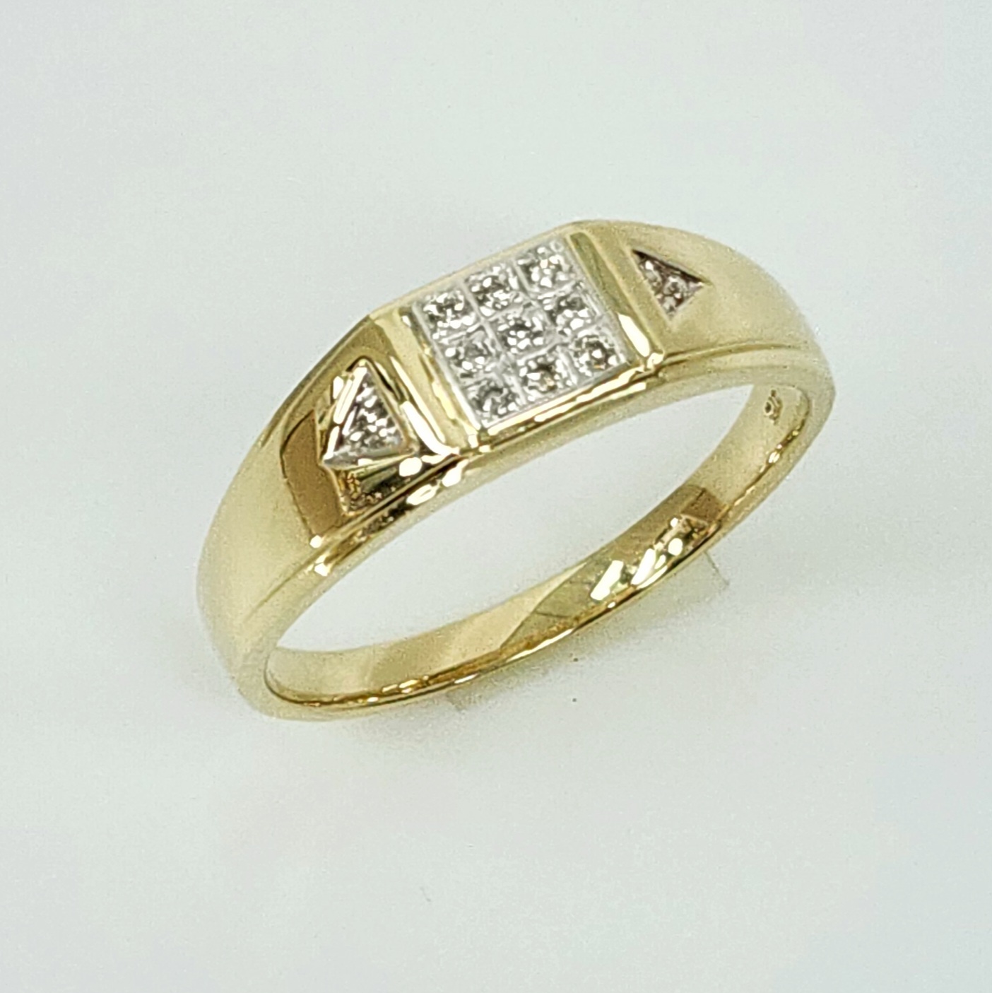 9ct Yellow Gold Gents Wedding / Dress Ring with 0.11ct Diamond